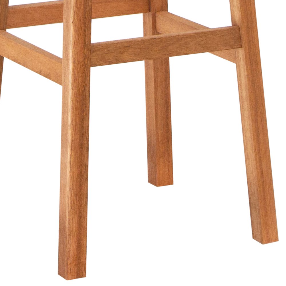 A estrutura em madeira de eucalipto confere ao banco alta durabilidade e aspecto natural, valorizando a textura e o calor da madeira maciça em sua tonalidade natural. O assento de fita trançada oferece um visual único e ventilação na área de apoio, resultando em maior conforto térmico e estética artesanal. O design clean e atual se adapta facilmente a salas de jantar, cozinhas, varandas gourmet e até escritórios com decoração despojada.