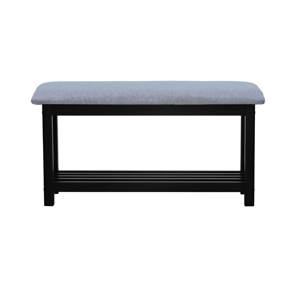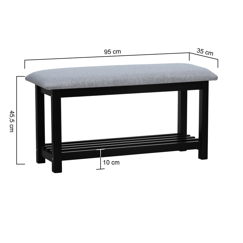 Banco Sapateira Viena Madeira Maciça - Preto Assento Estof. Linho Cinza Mescla Impermeável
