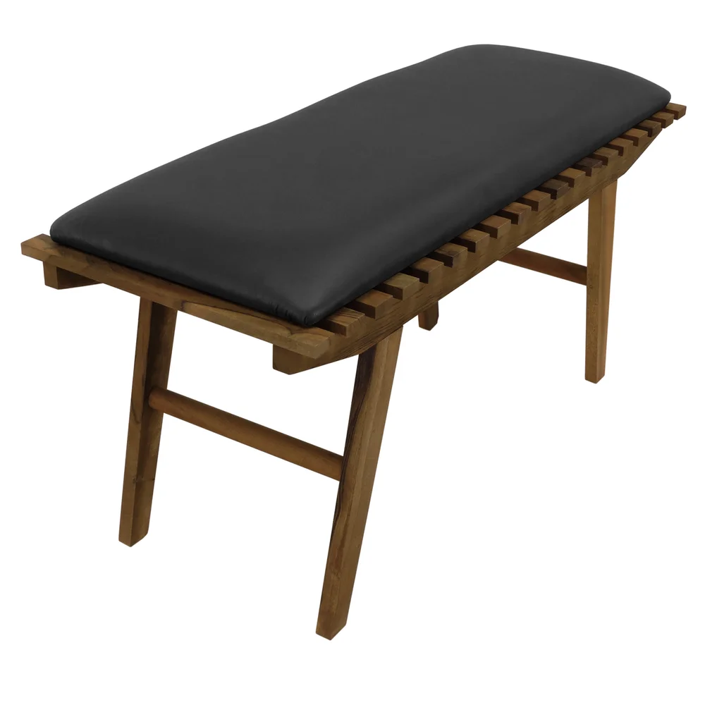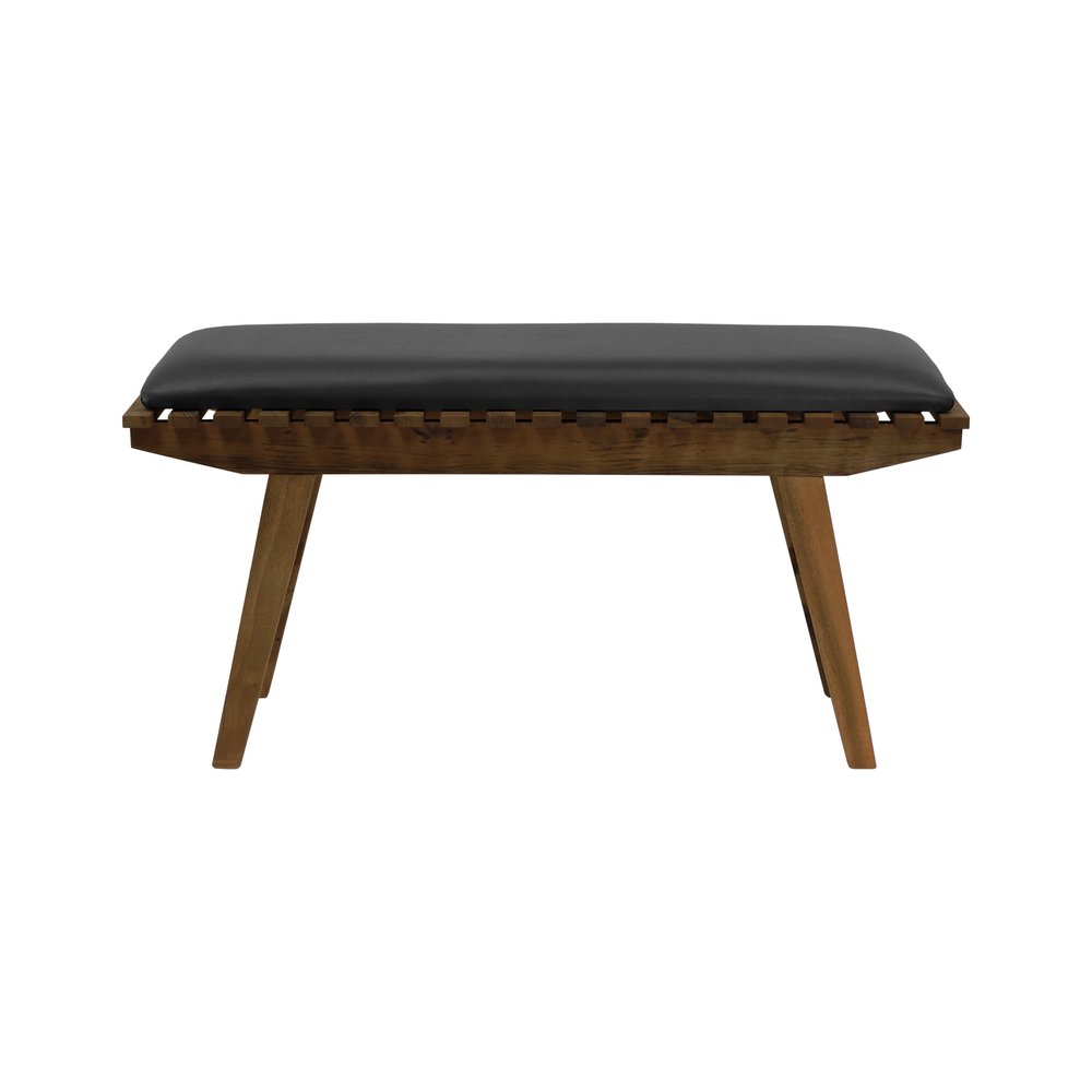 Banco Summer 100cm Madeira Maciça Imbuia Stain Imbuia / Estofado Corano Preto