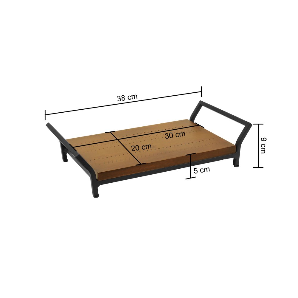 Bandeja Jahari 380x200x90mm – Preto/Amêndoa Rústico