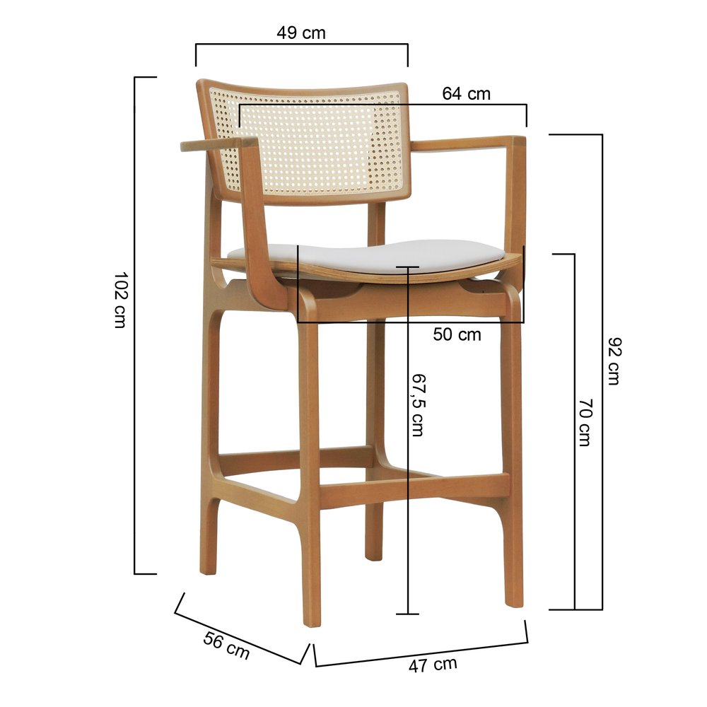 Banqueta Alta Bistrô Apollo com Braços Encosto Telinha Natural e Assento Estofado