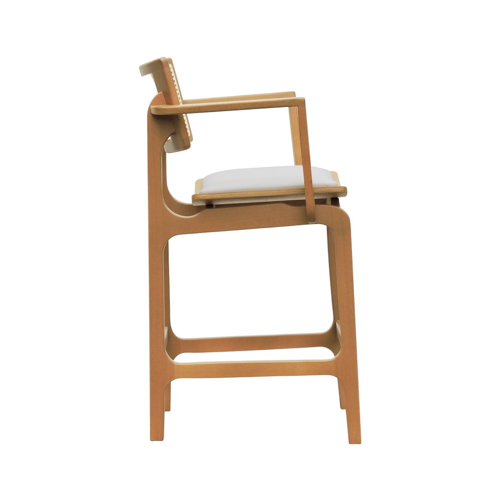 Banqueta Alta Bistrô Apollo com Braços Encosto Telinha Natural e Assento Anatômico - Natural Estofado Corano Bege