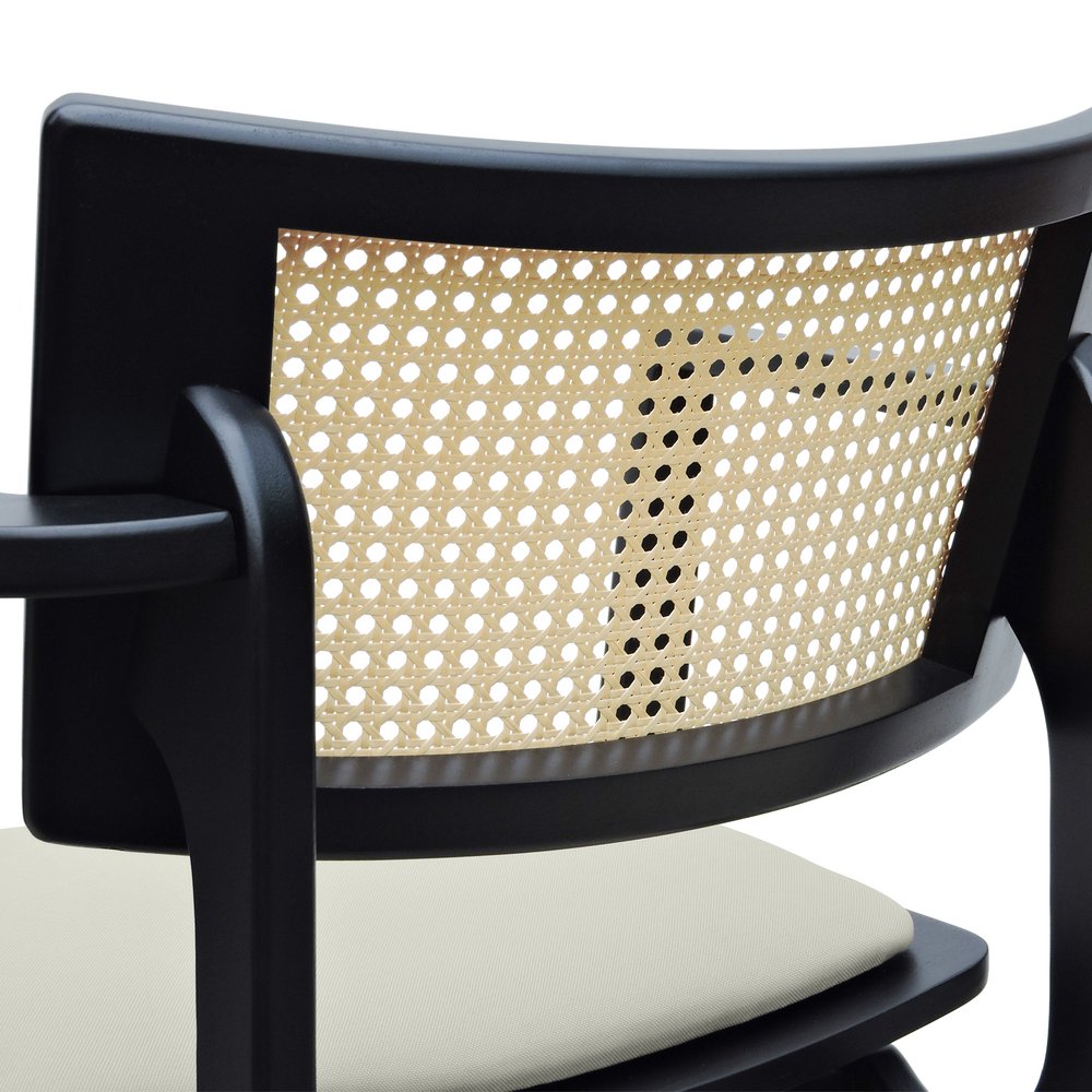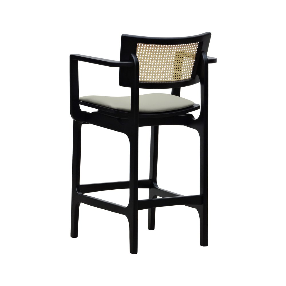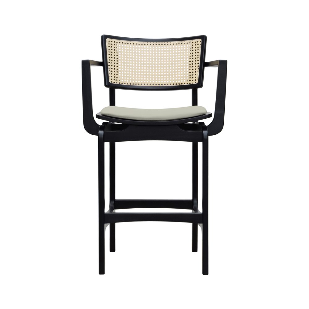 Banqueta Alta Bistrô Apollo com Braços Encosto Telinha Natural e Assento Estofado