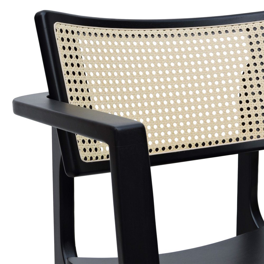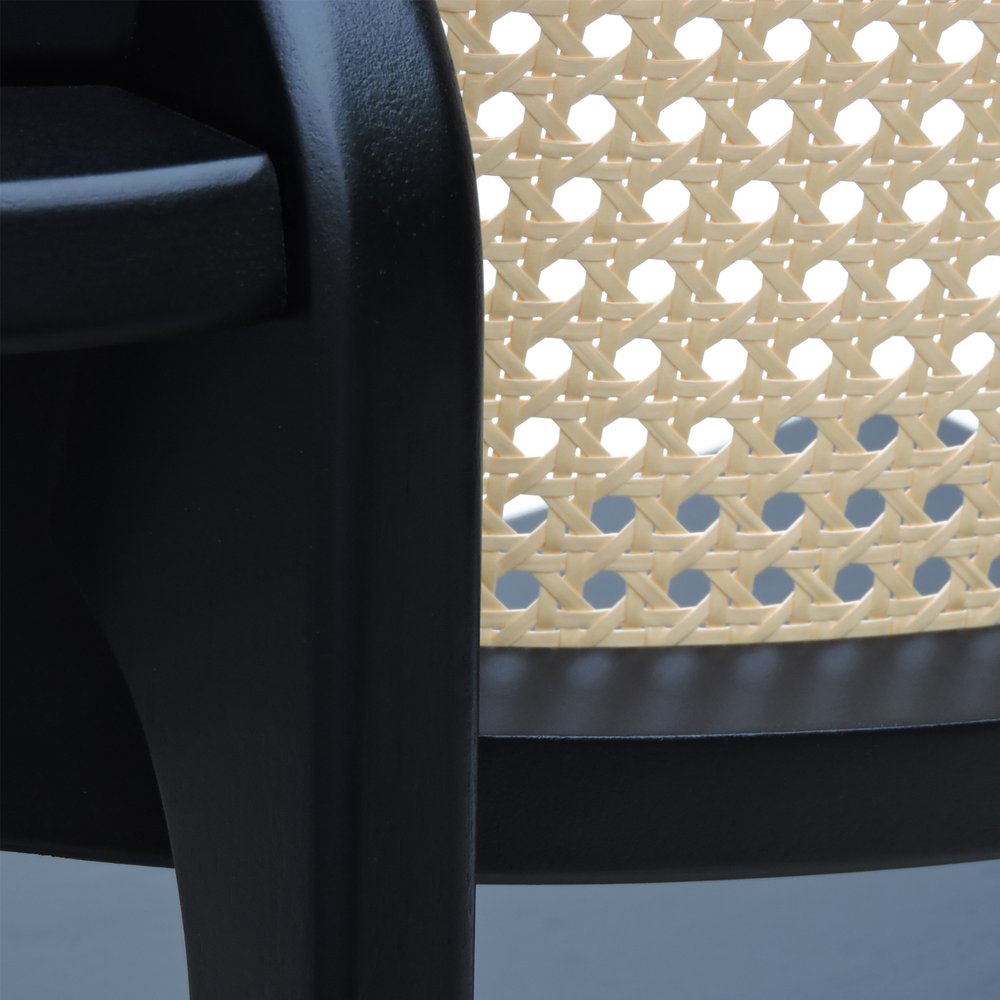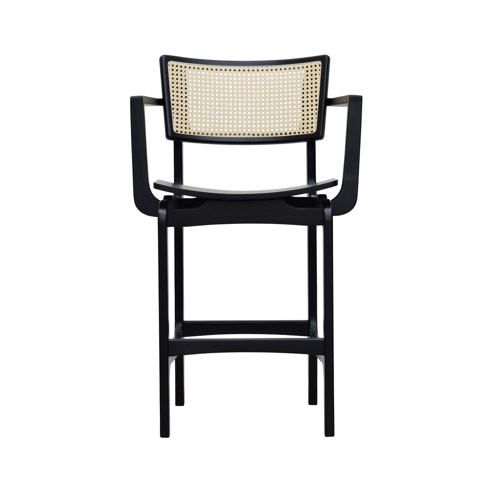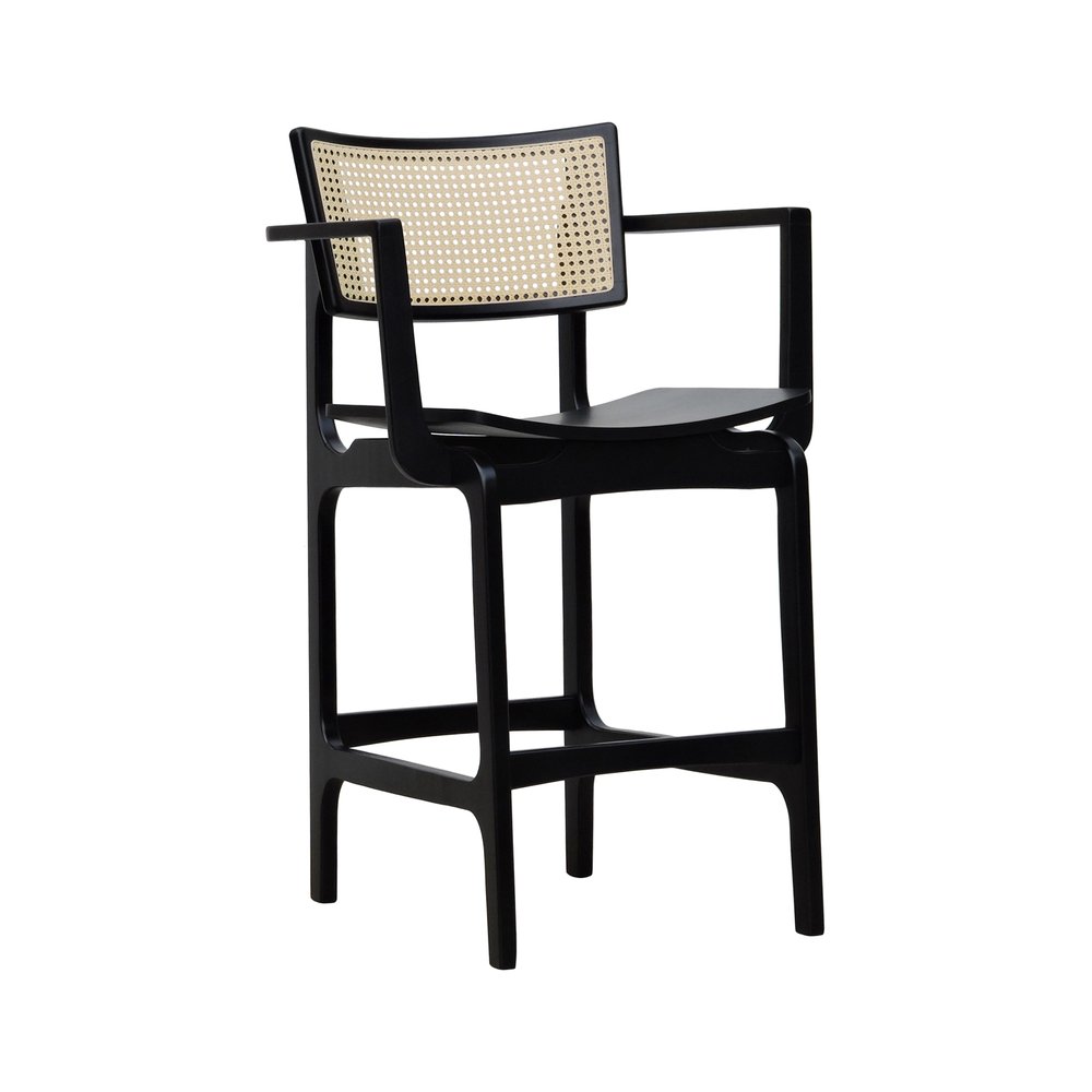 Banqueta Alta Bistrô Apollo com Braços Encosto Telinha Natural e Assento Estofado
