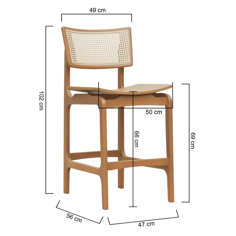 As Banquetas Altas Bistrô Apollo são produzidas em madeira de eucalipto, com assento anatômico e encosto em telinha sextavada natural. São recomendadas para bancadas com no mínimo 90cm, altura livre do chão até o início da bancada. Pode ser usada em áreas gourmet, cozinhas, churrasqueiras.