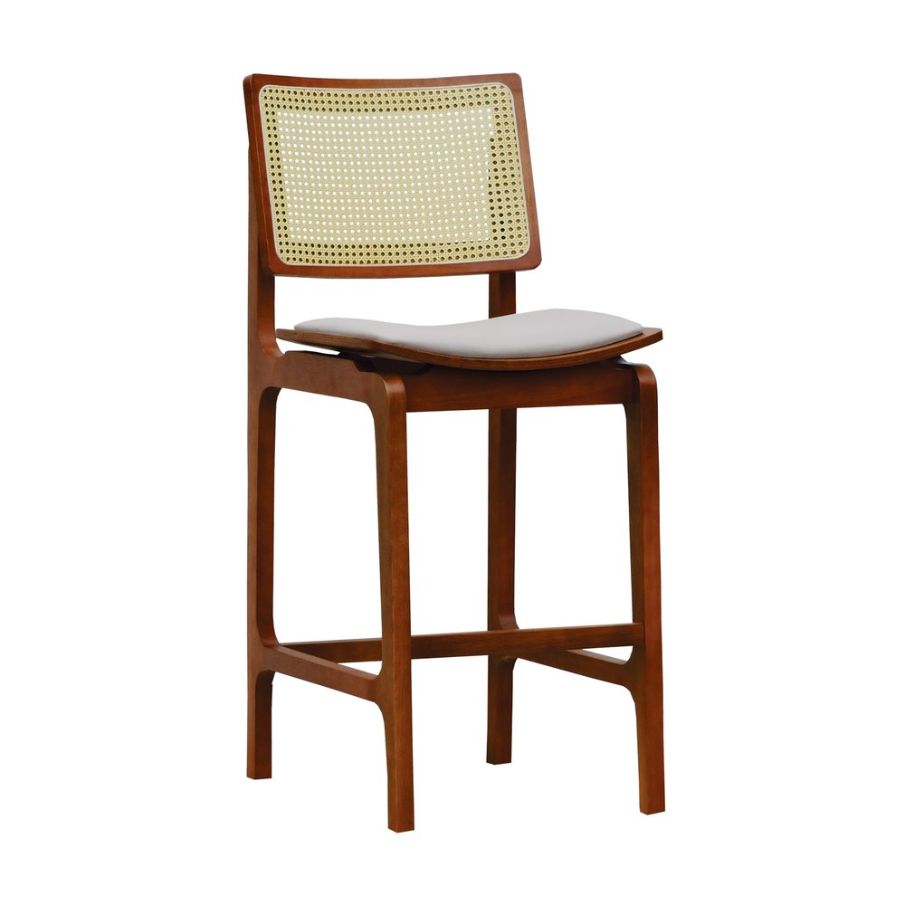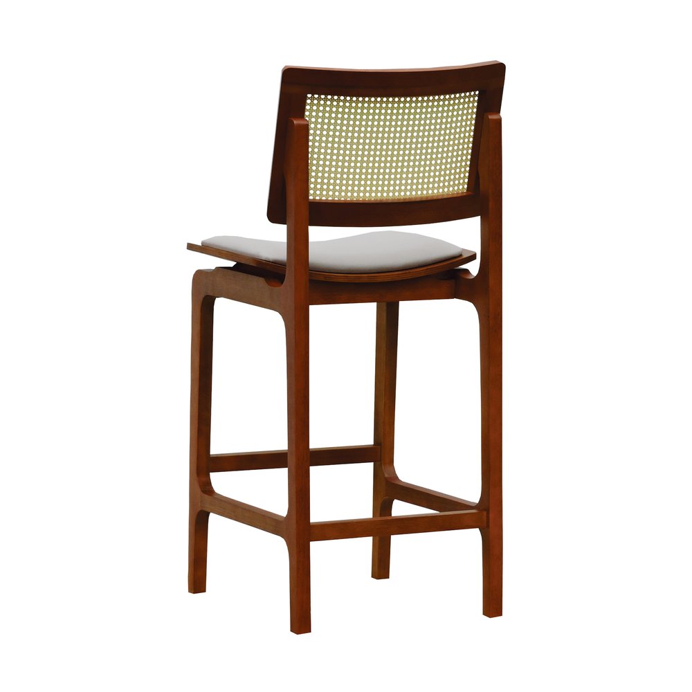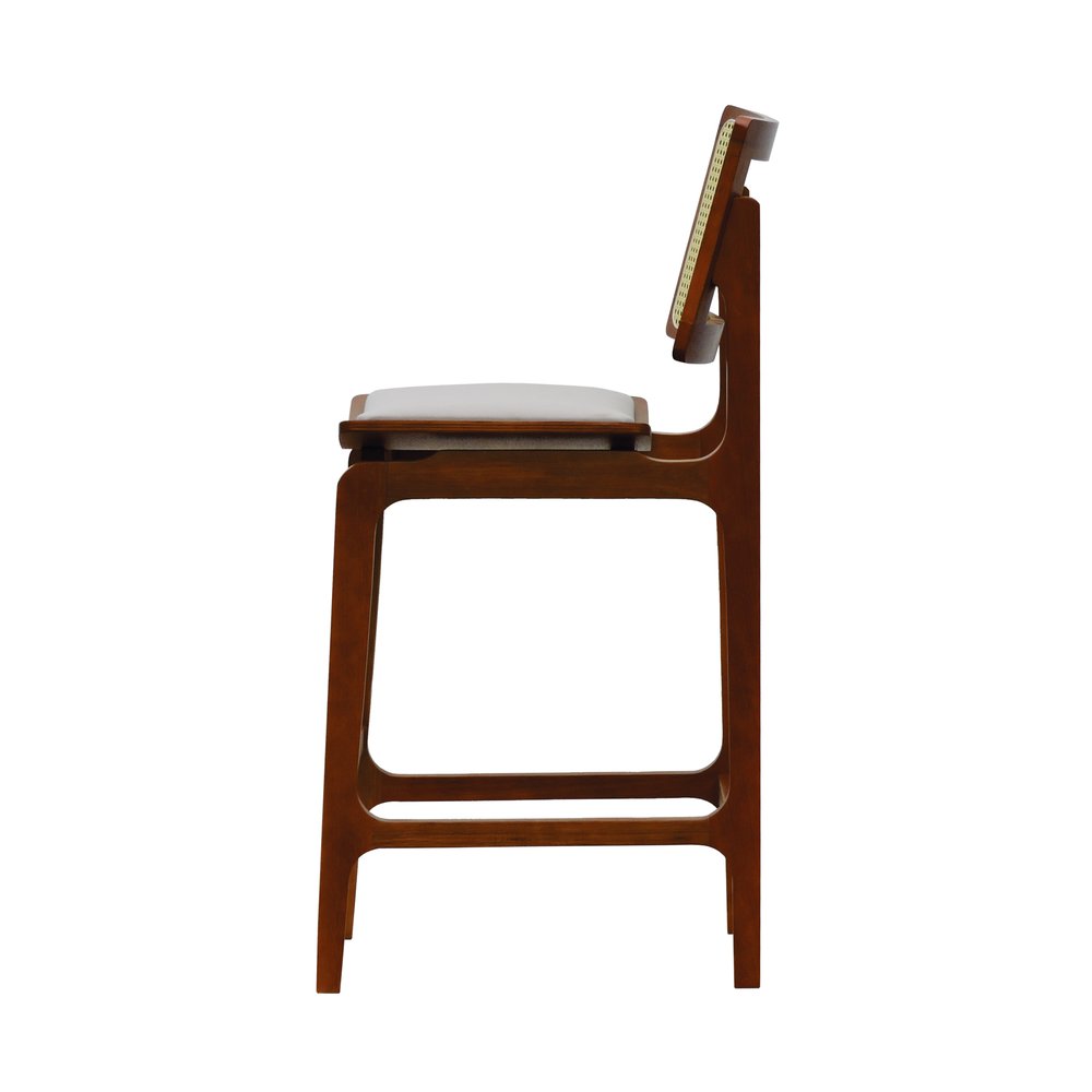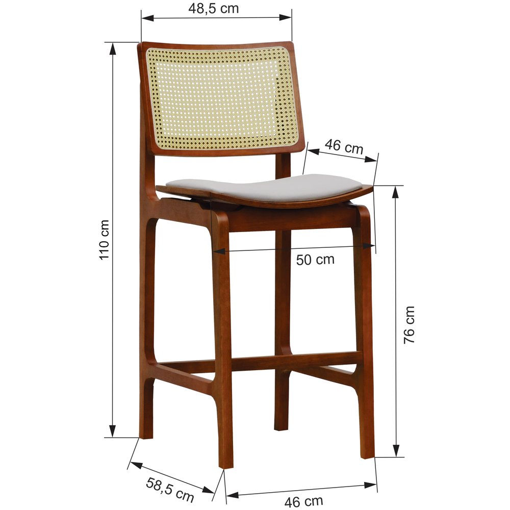 O grande diferencial dessa banqueta está no encosto em telinha, que além de agregar leveza visual, valoriza a ventilação e o charme artesanal. Já o assento anatômico com estofamento em linho traz conforto no uso prolongado, permitindo uma experiência ergonômica sem abrir mão da elegância.