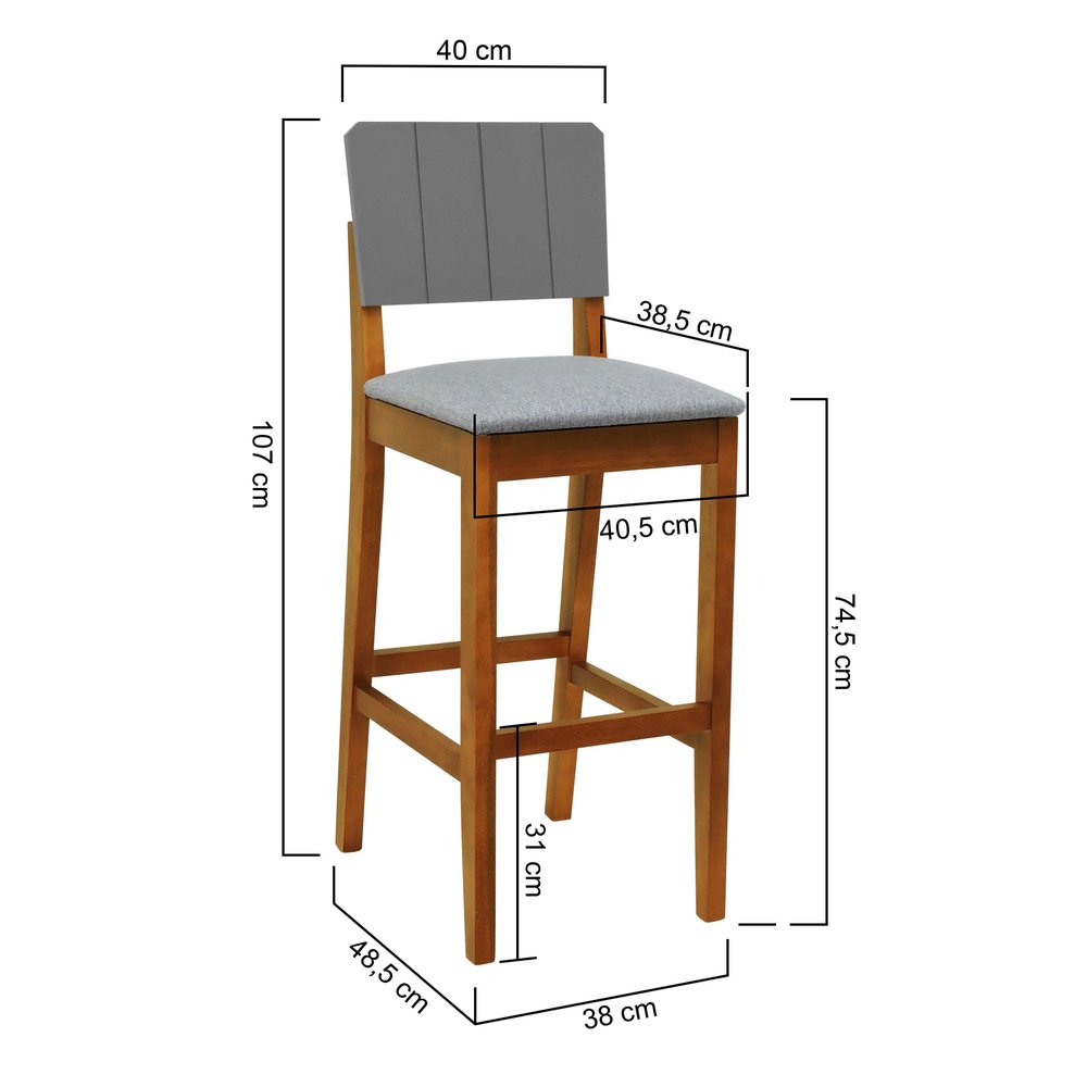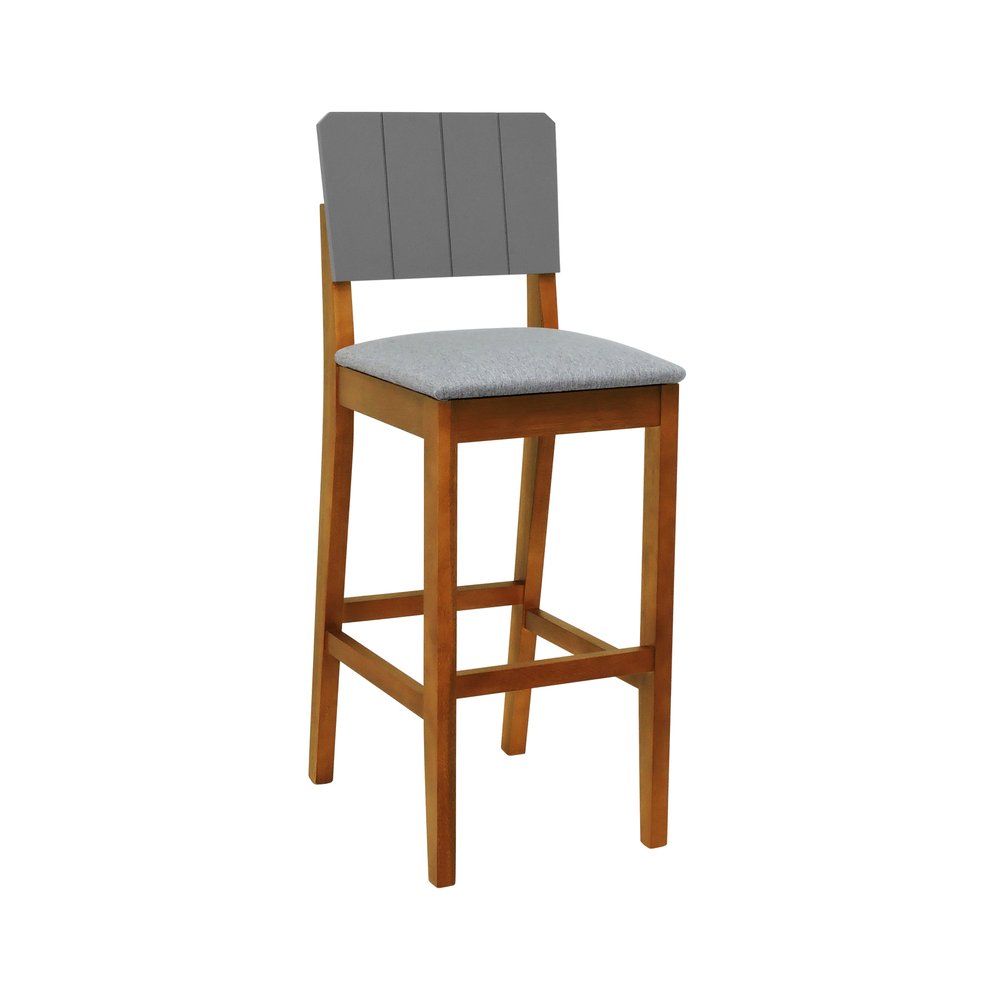 Banqueta Alta Bistrô Linhas Madeira Maciça Encosto MDF Laqueado Cinza - Amêndoa