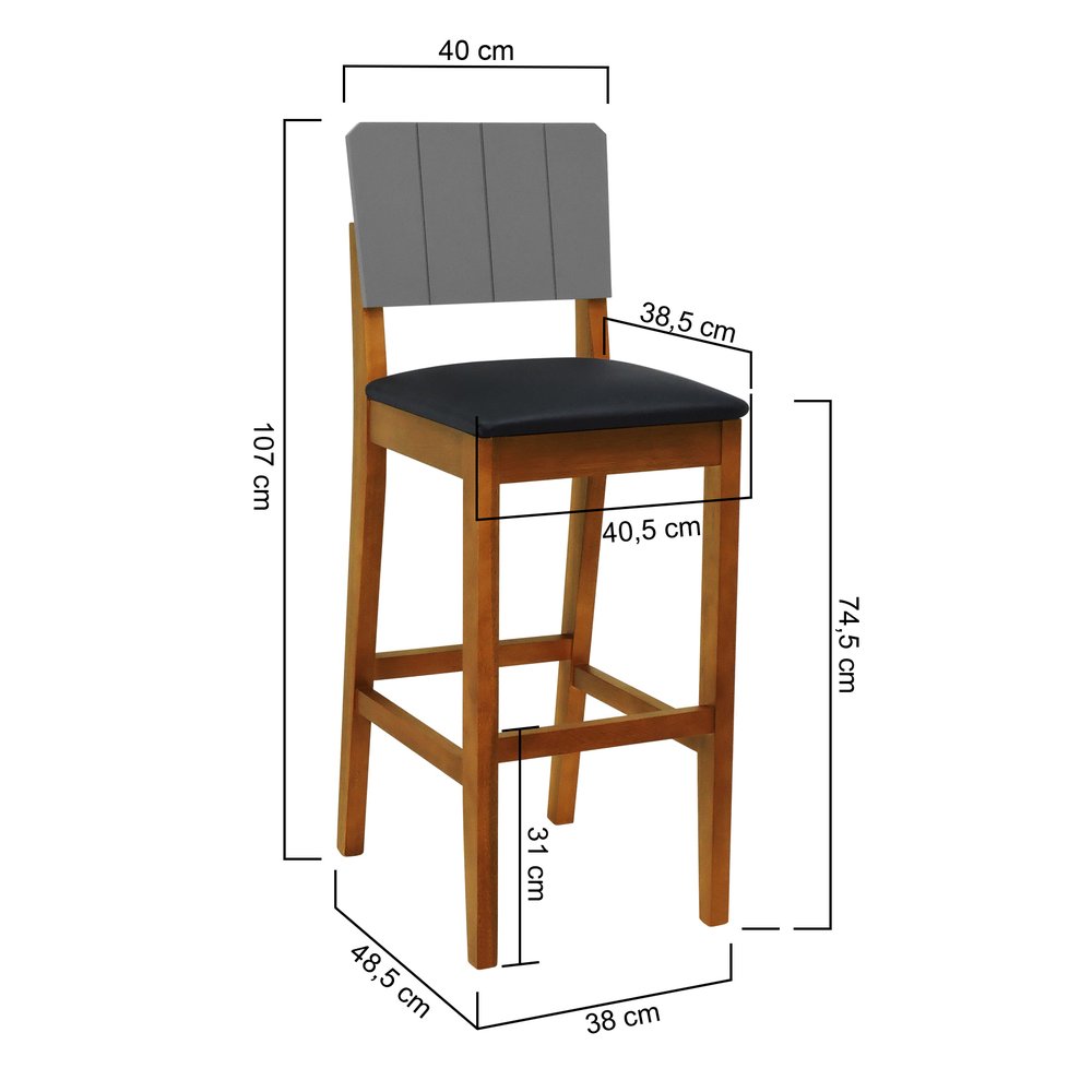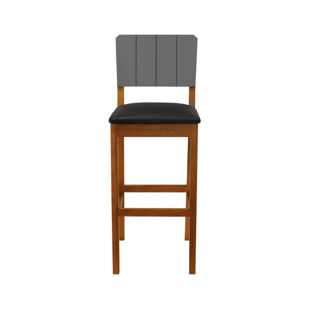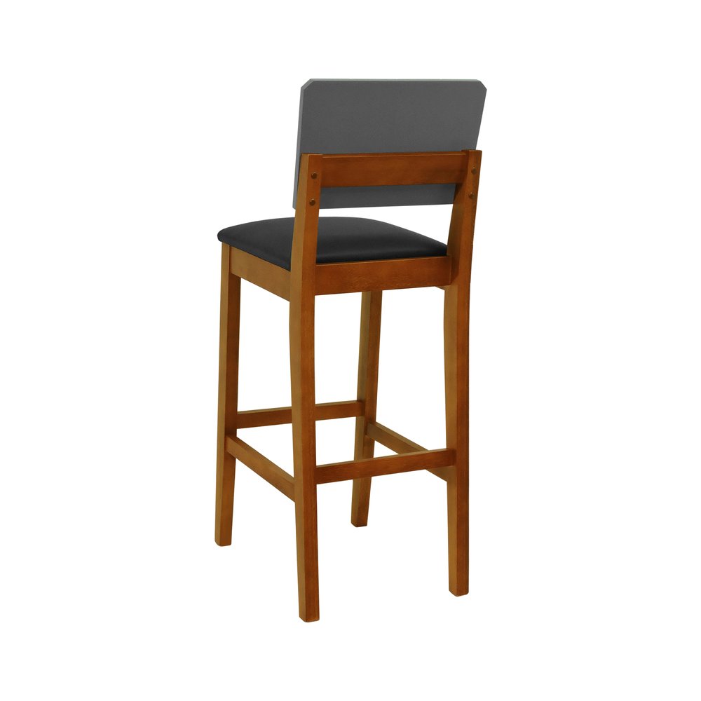 Banqueta Alta Bistrô Linhas Madeira Maciça Encosto MDF Laqueado Cinza - Amêndoa