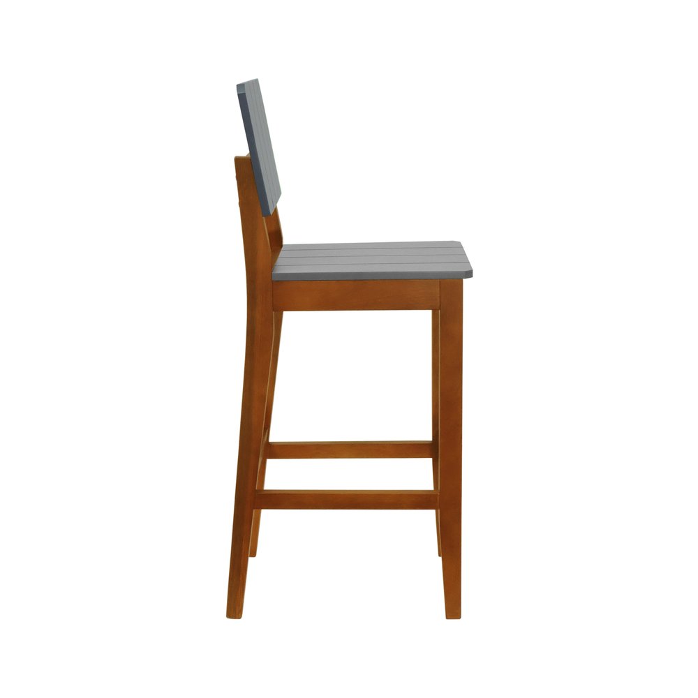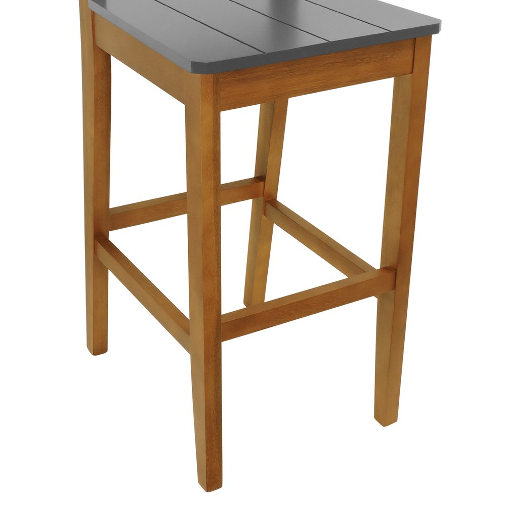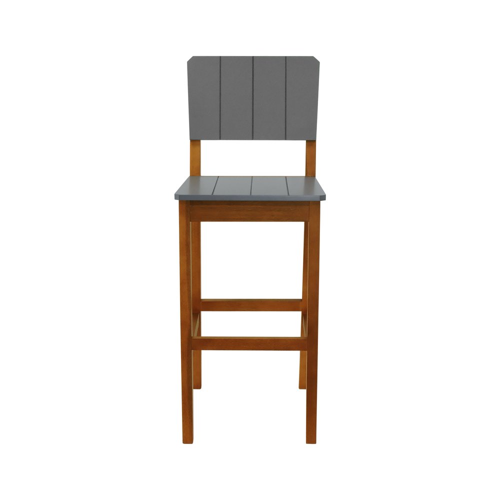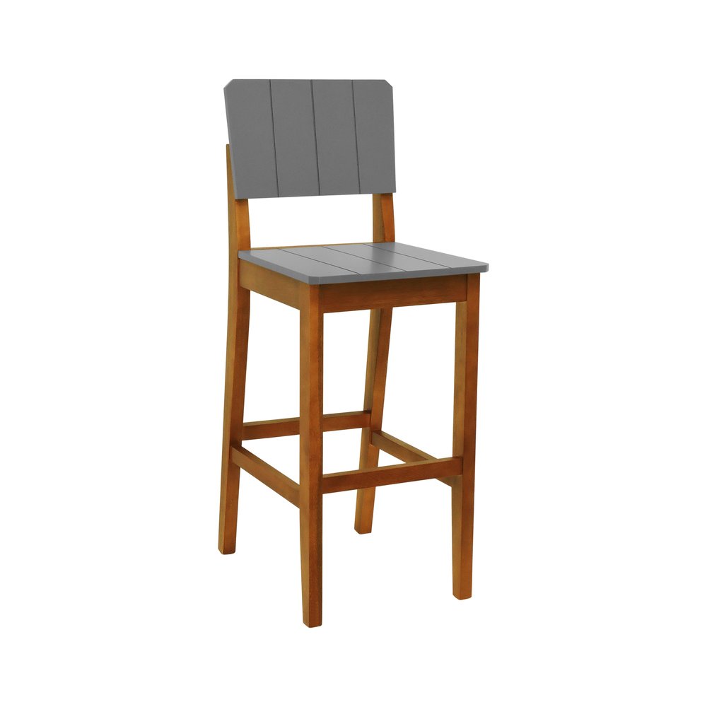 Banqueta Alta Bistrô Linhas Madeira Maciça Encosto MDF Laqueado Cinza - Amêndoa
