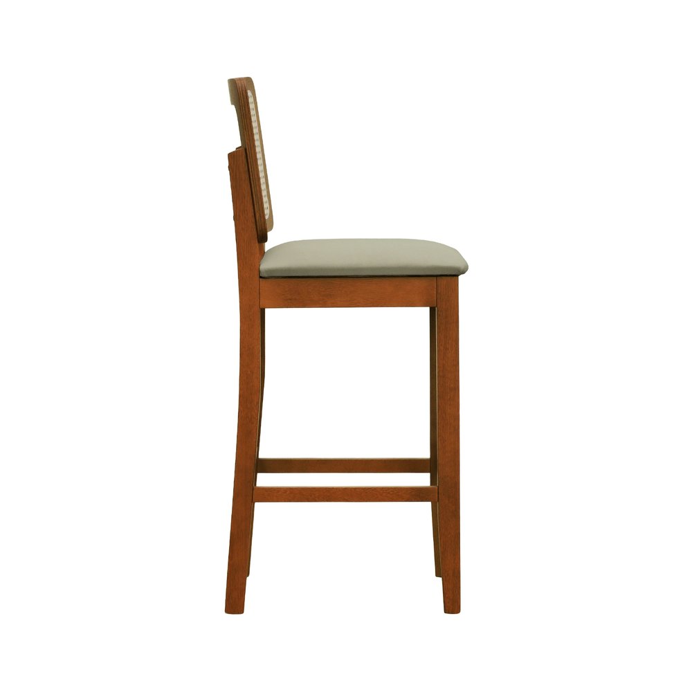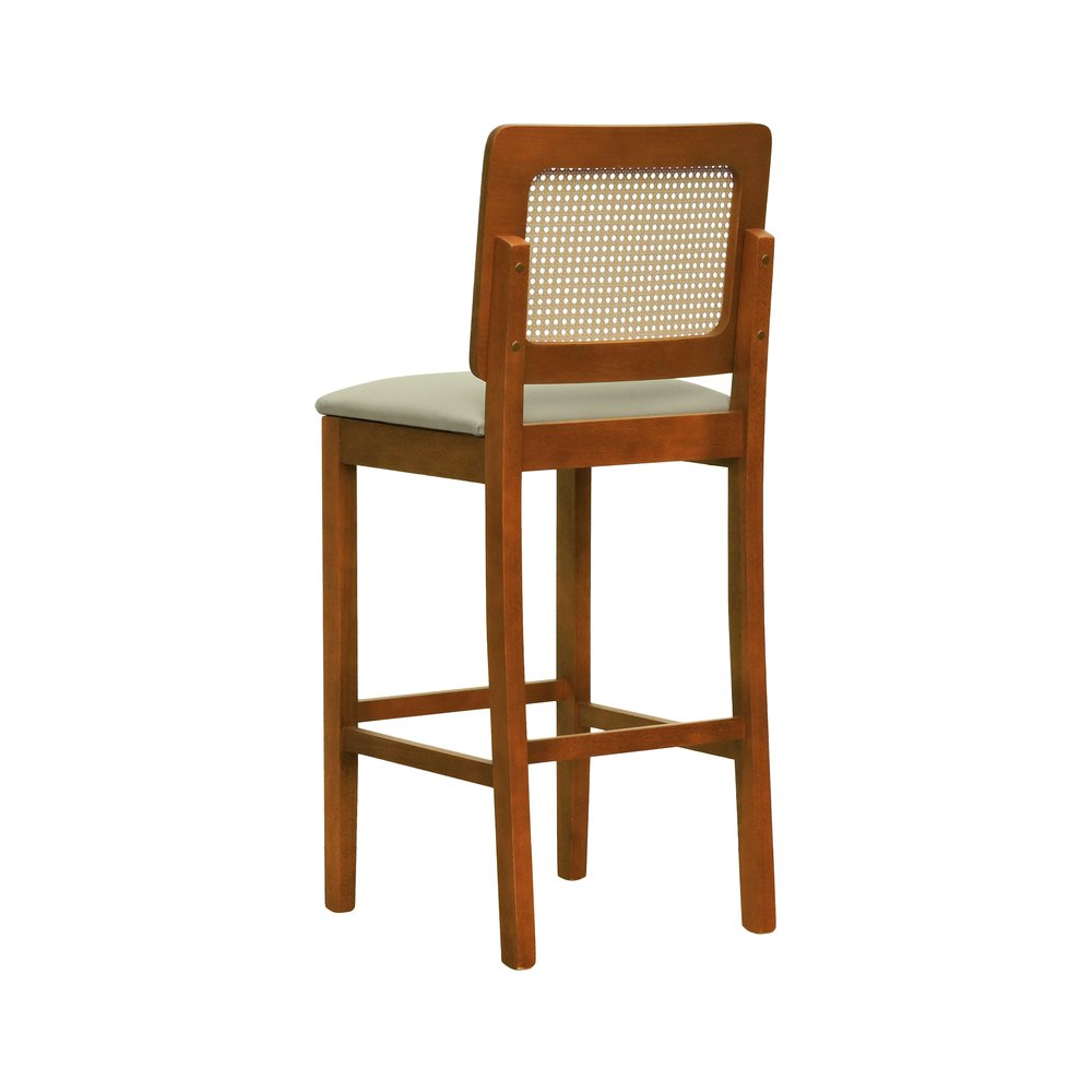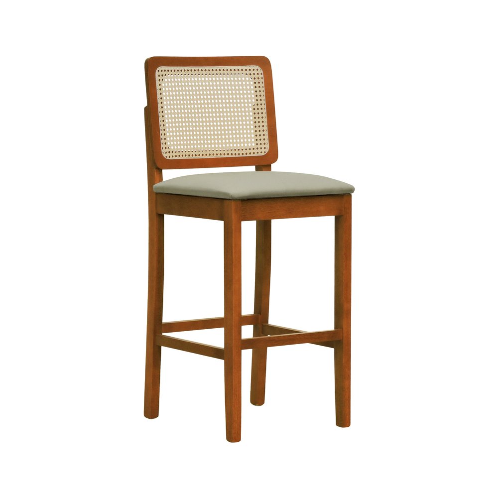 Banqueta Alta Bistrô Lyon Madeira Maciça Assento Estofado e Encosto em Telinha Natural
