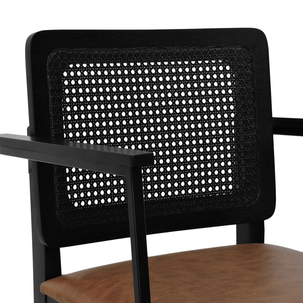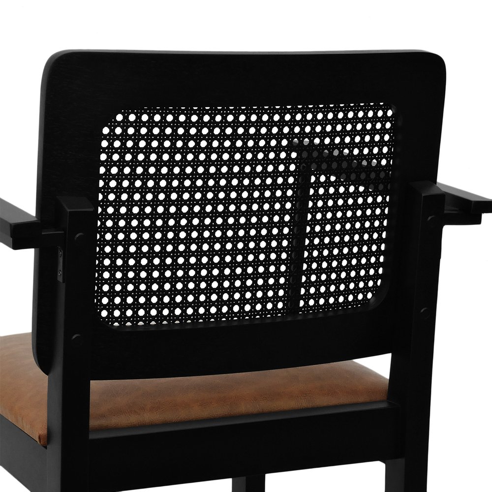 Banqueta Alta Bistrô Lyon Madeira Maciça Assento Estofado e Encosto em Telinha c/ Braços
