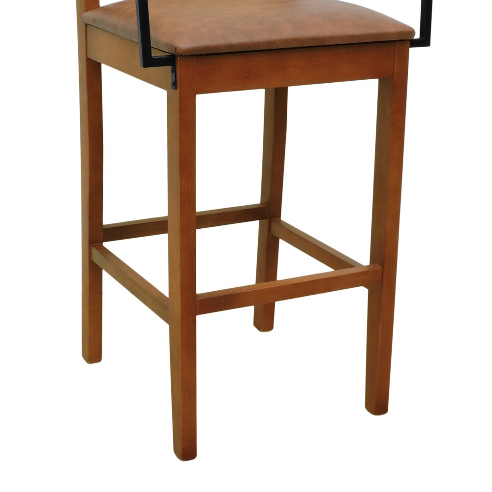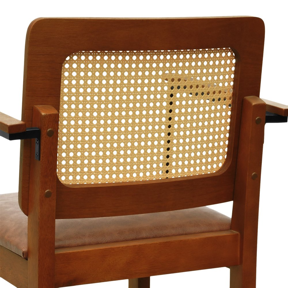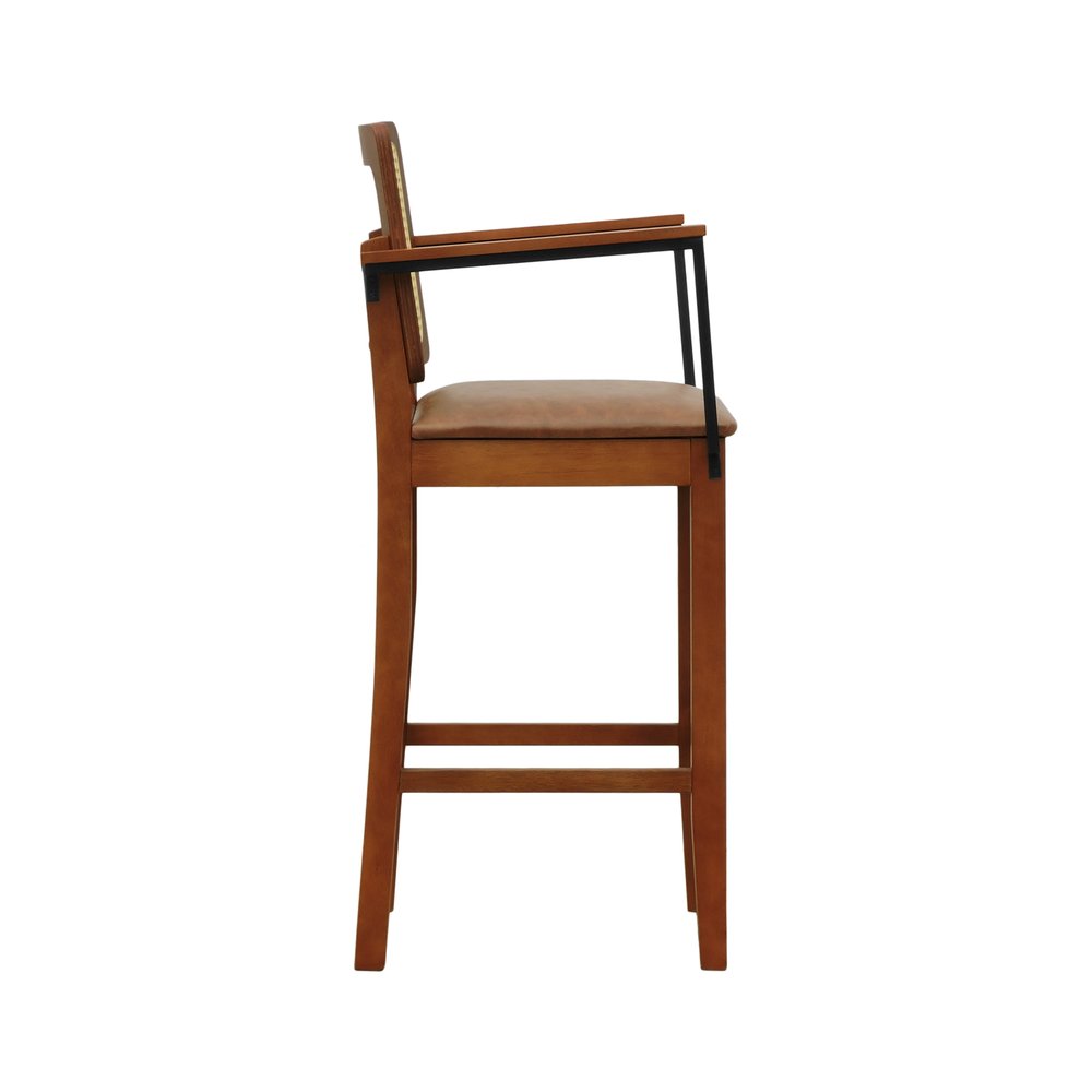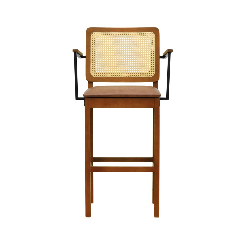 Banqueta Alta Bistrô Lyon Madeira Maciça Assento Estofado e Encosto em Telinha Natural c/ Braços