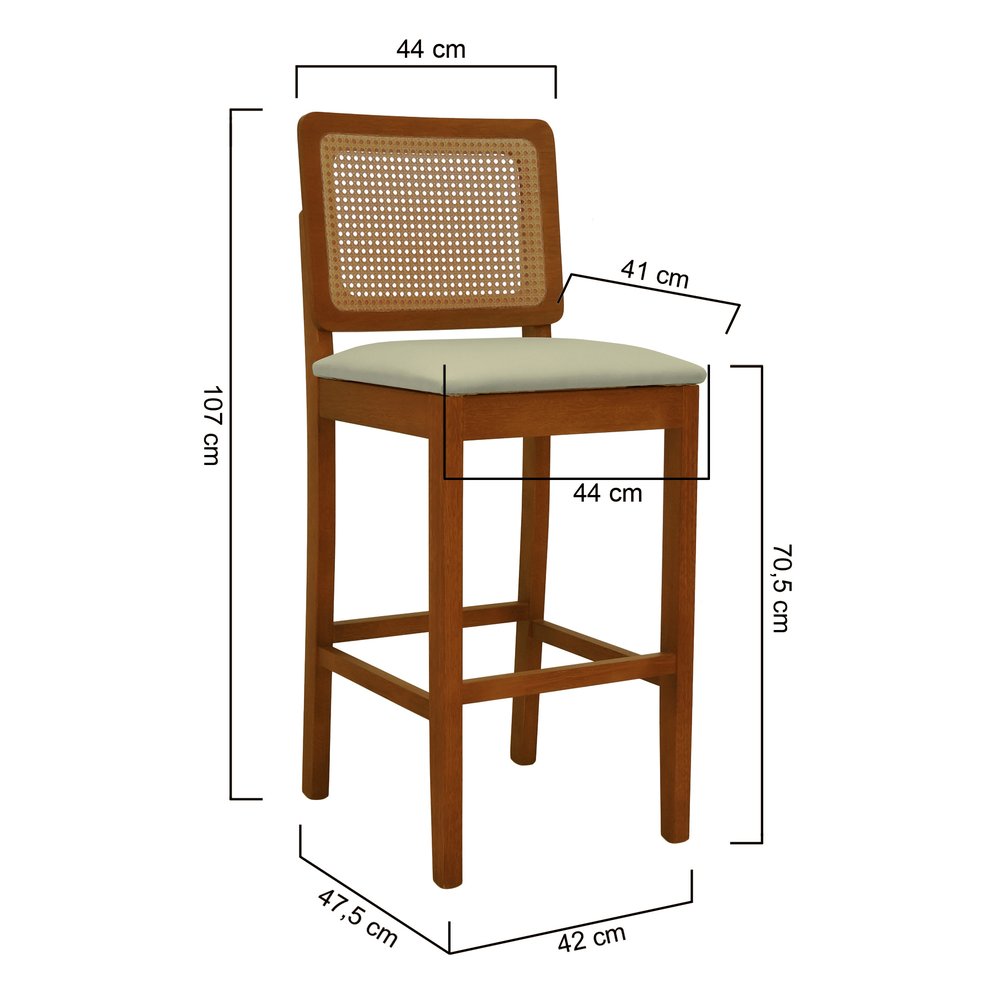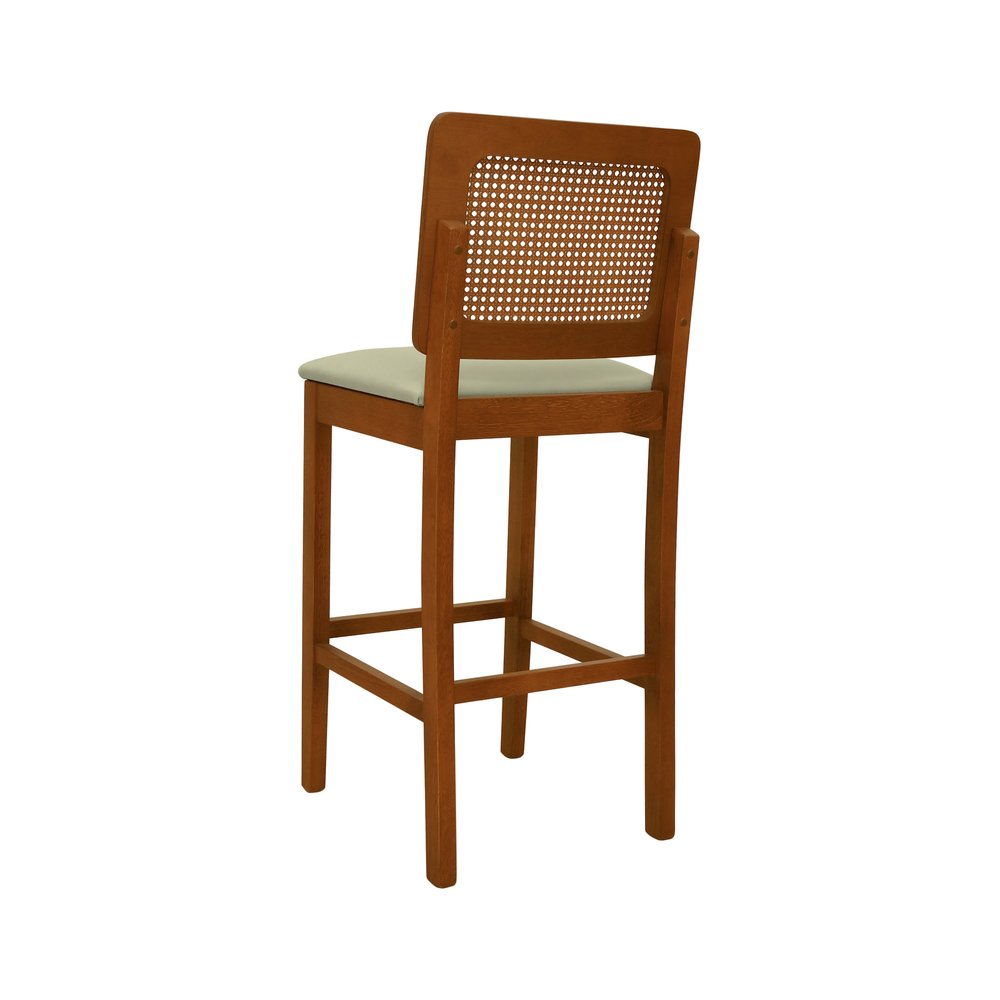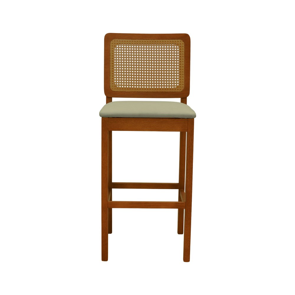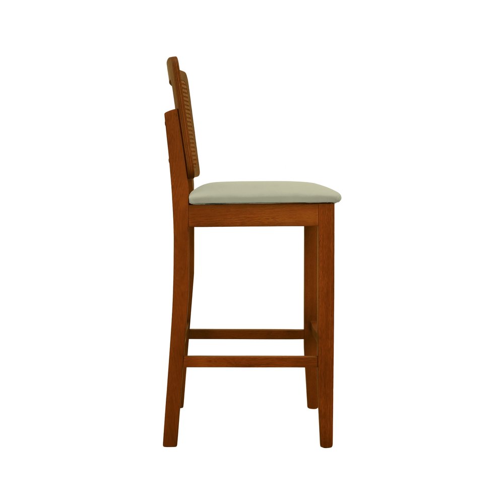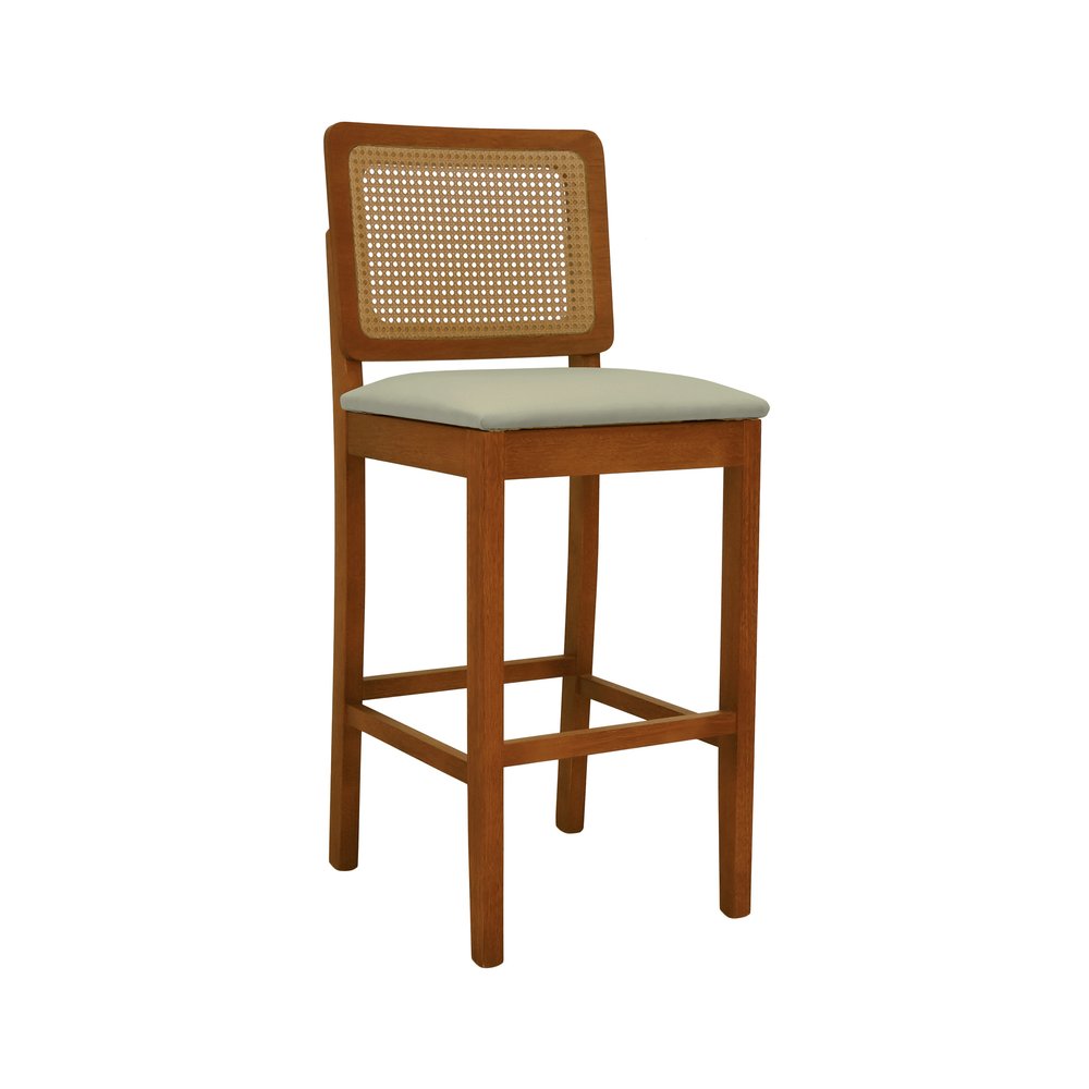 Banqueta Alta Bistrô Lyon Madeira Maciça Assento Estofado e Encosto em Telinha Amêndoa