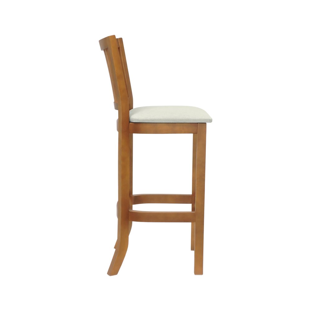 Banqueta Alta Bistrô Madri Encosto Ripado e Assento Estofado - Amêndoa