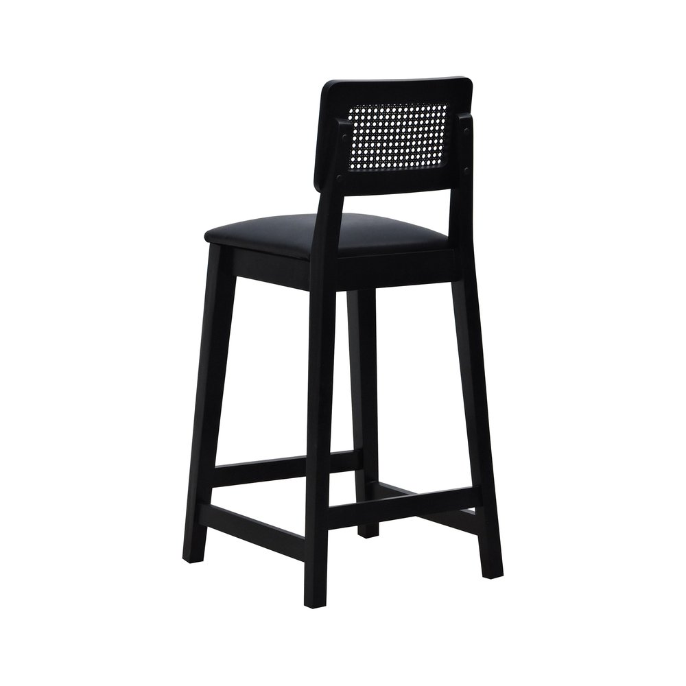 Banqueta Gabi Madeira Maciça Encosto c/ Telinha c/ 68cm Altura - Preto Assento Estofado Corano Preto