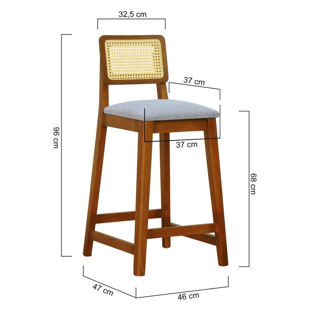 As Banquetas Gabi são produzidas em madeira maciça, com encosto anatômico com aplicação de telinha sextavada e assento estofado. São recomendadas para bancadas com no mínimo 85cm, altura livre do chão até o início da bancada. Deixando sua cozinha, área gourmet, mais aconchegante e bela!