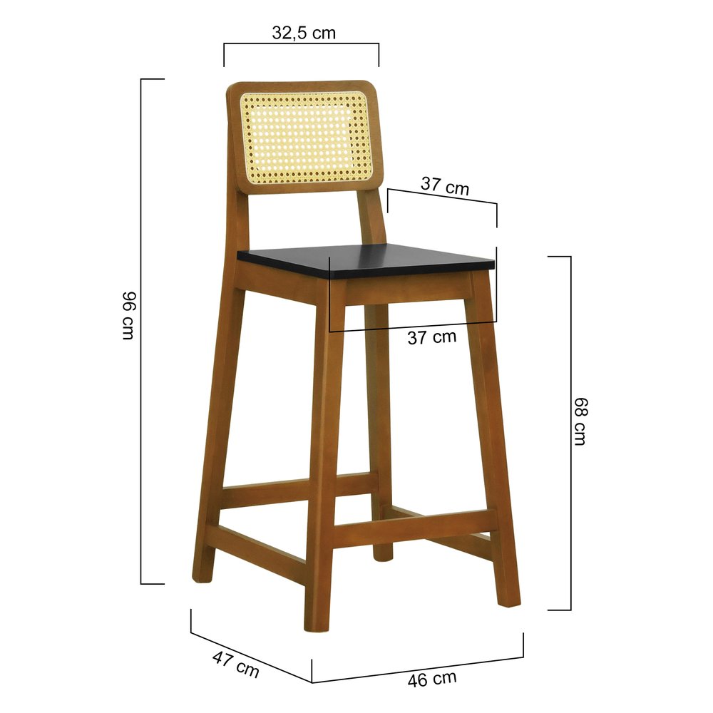 Banqueta Gabi Madeira Maciça Encosto Anatômico c/ Telinha e Assento Estofado c/ 68cm Altura