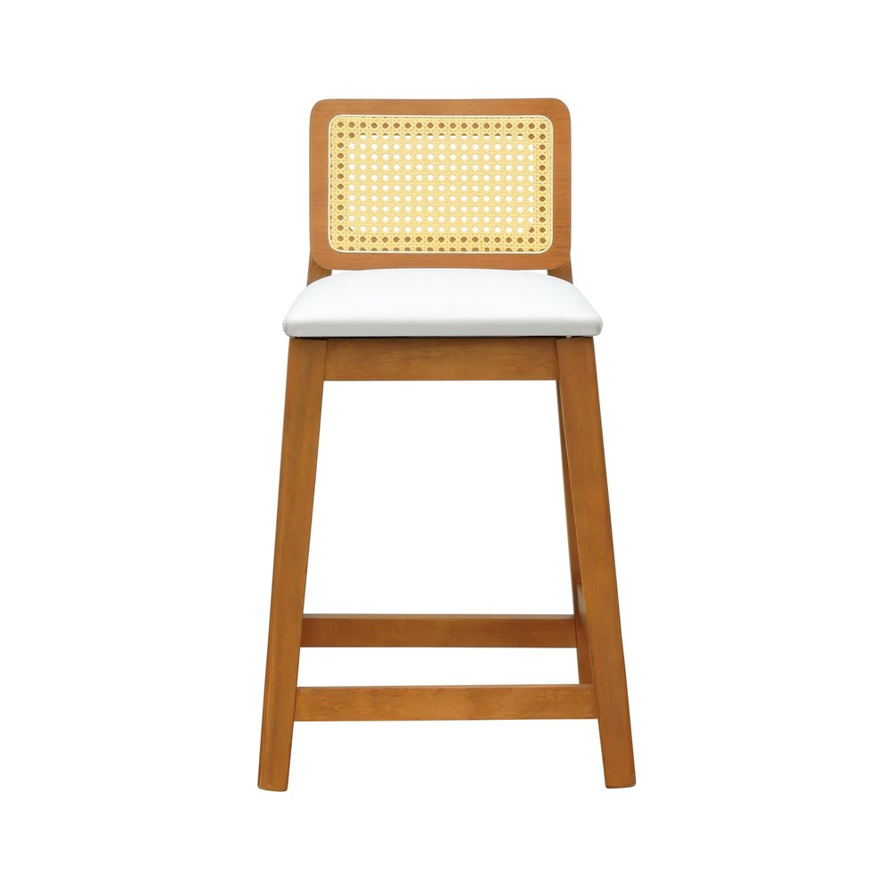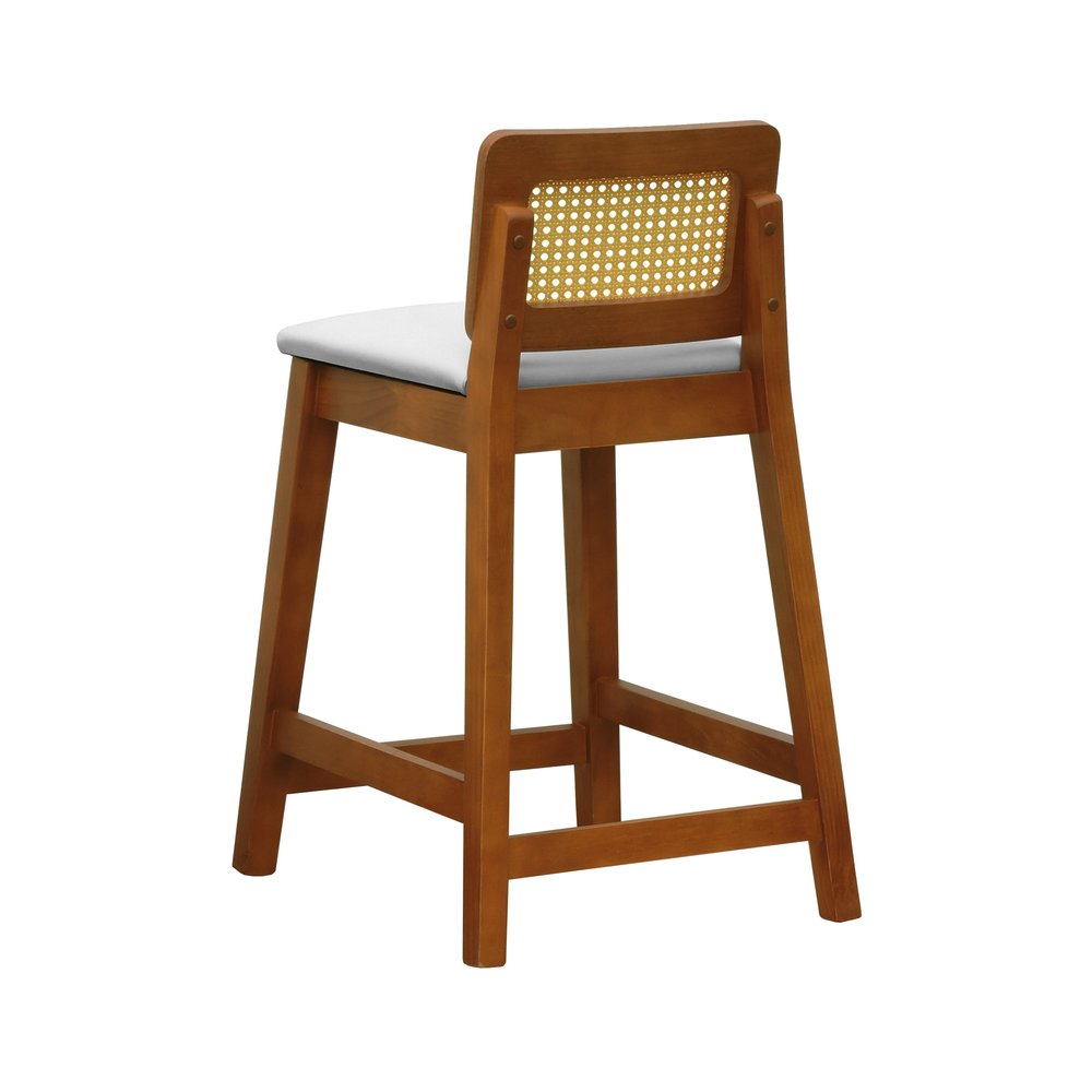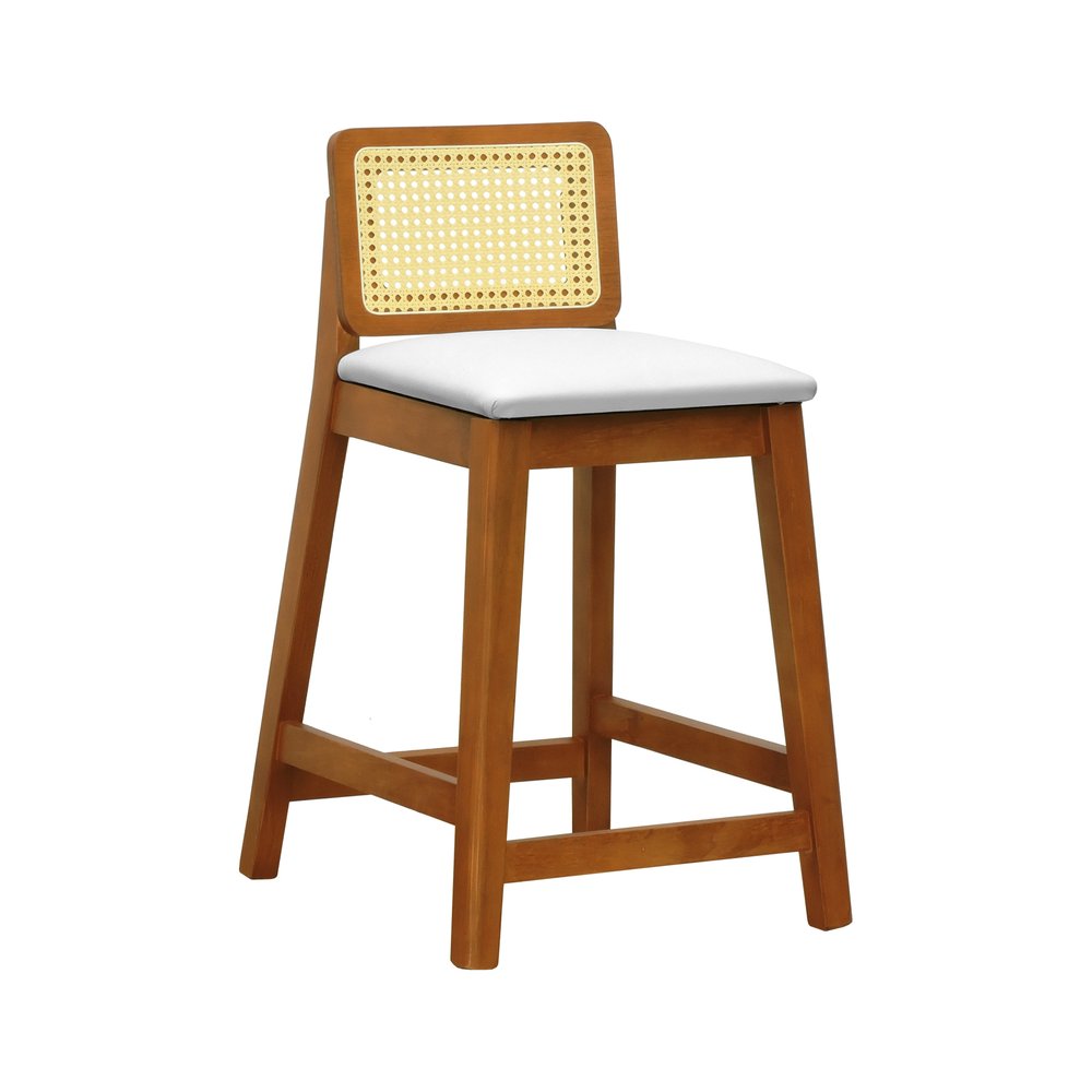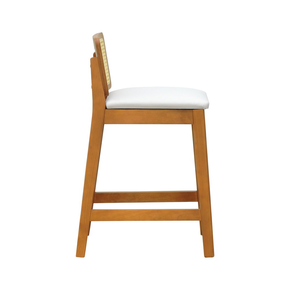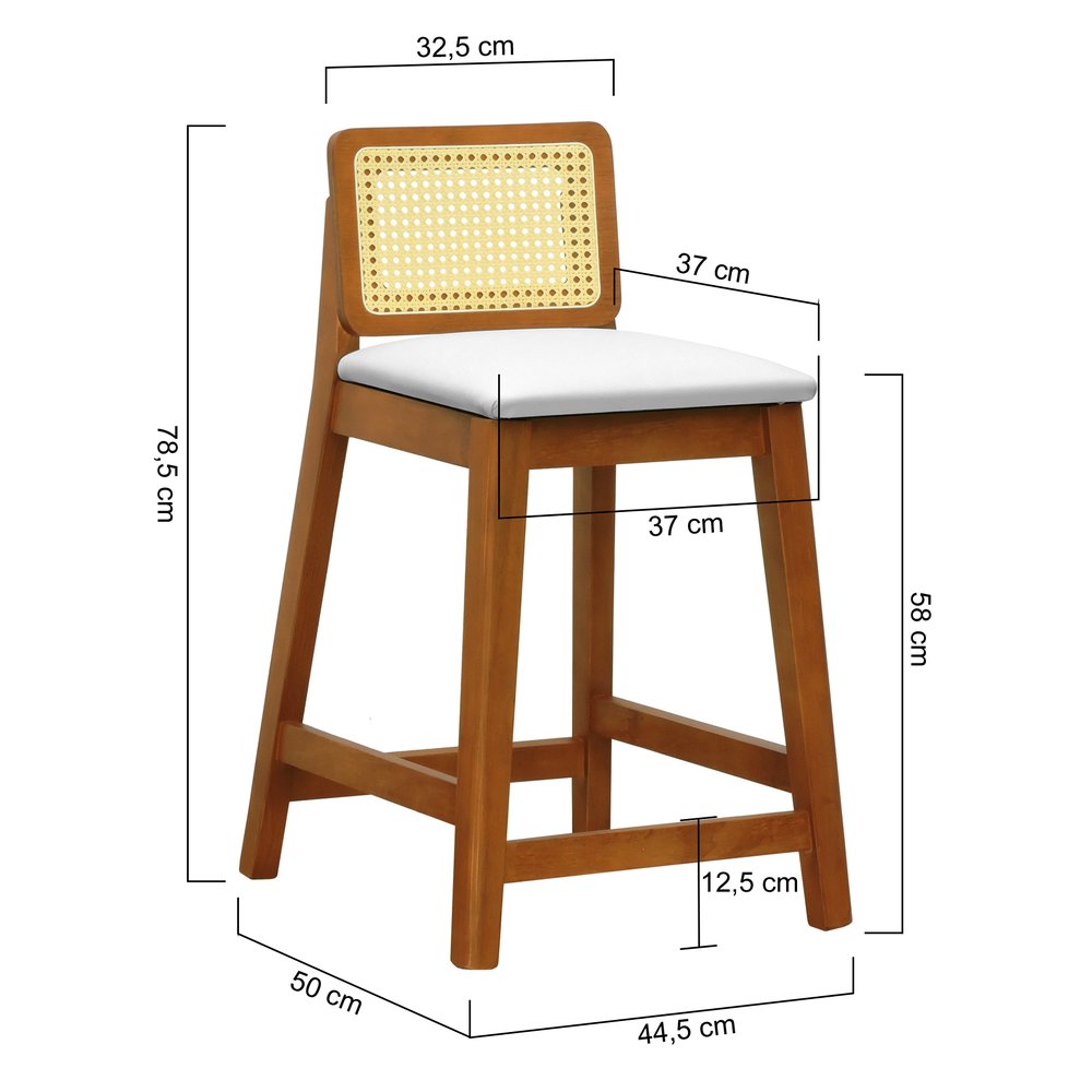 Banqueta Média Gabi Madeira Maciça Telinha Natural - Amêndoa Assento Estofado Corano Bege