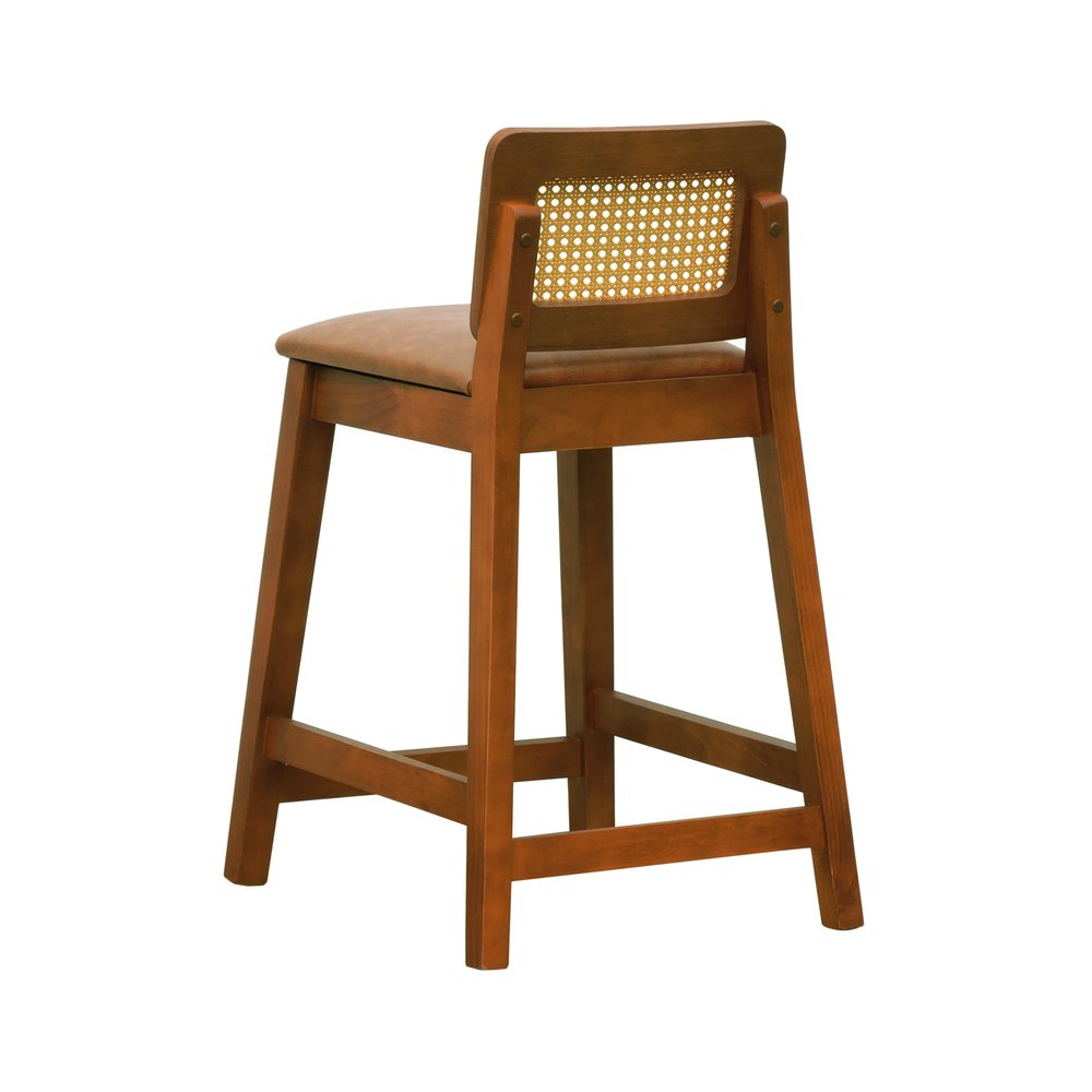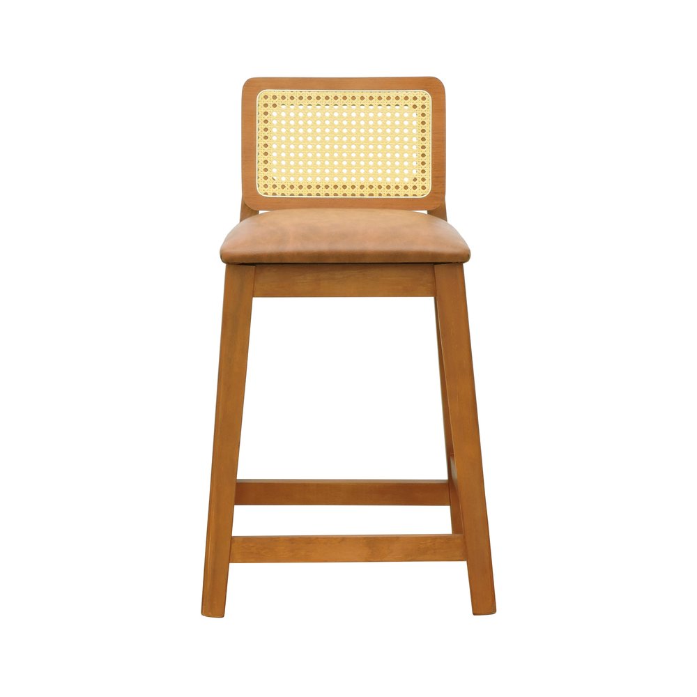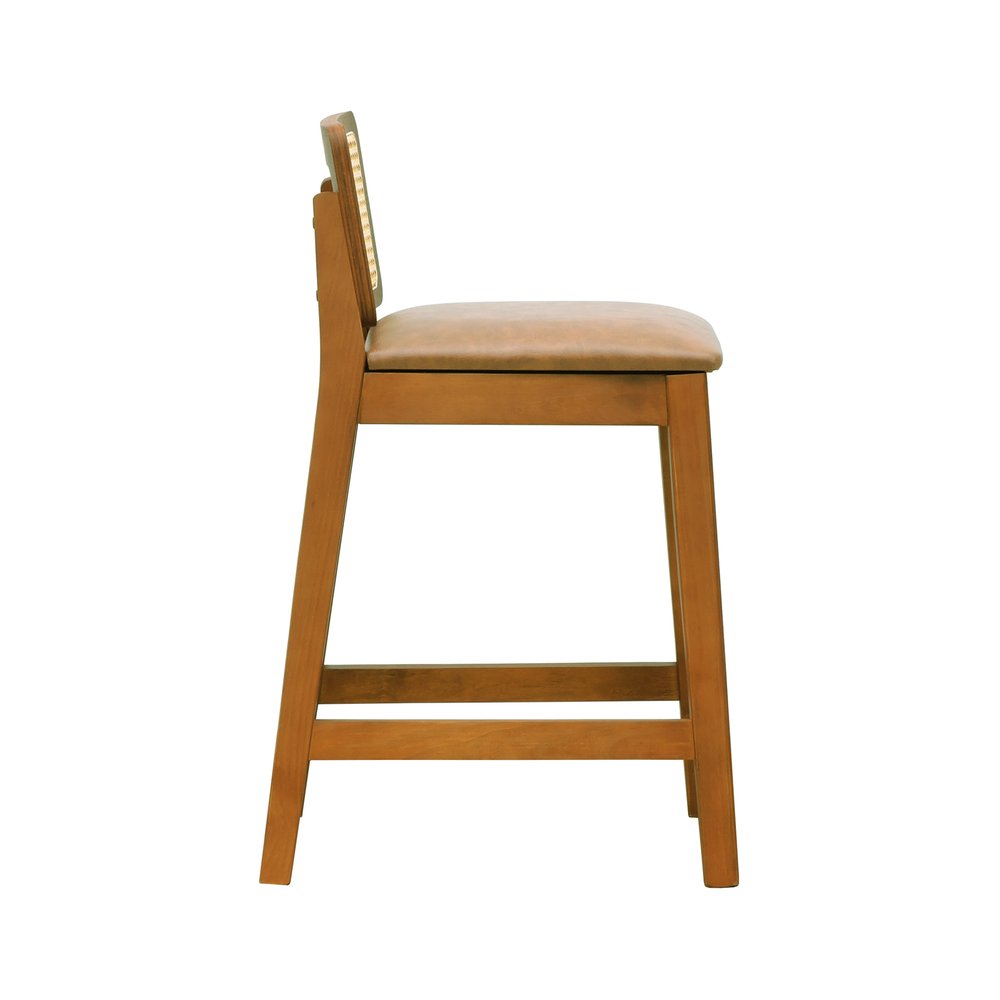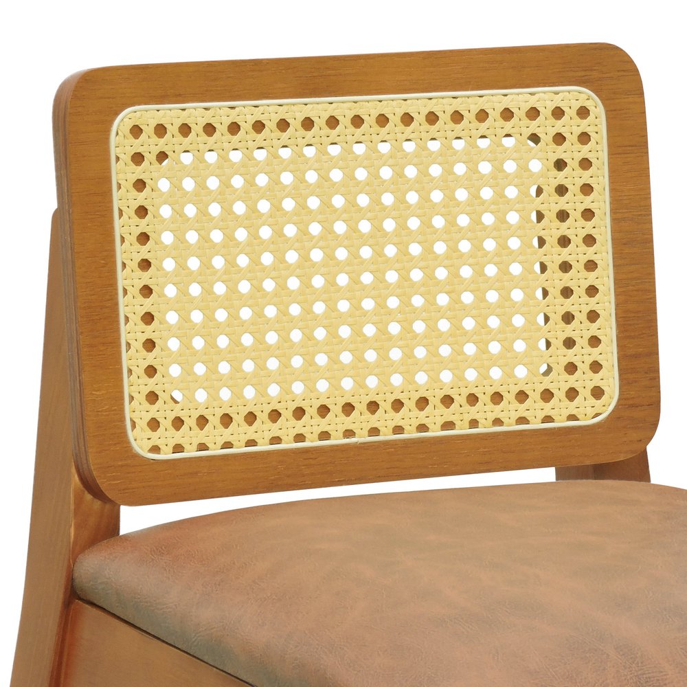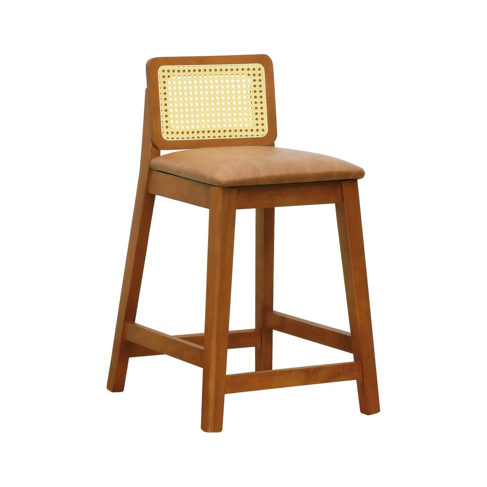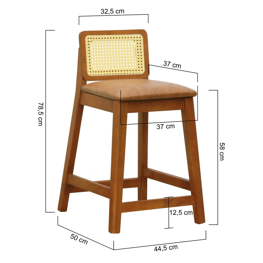 Banqueta Média Gabi Madeira Maciça Telinha Natural - Amêndoa Assento Estofado Corano Marrom Mescla