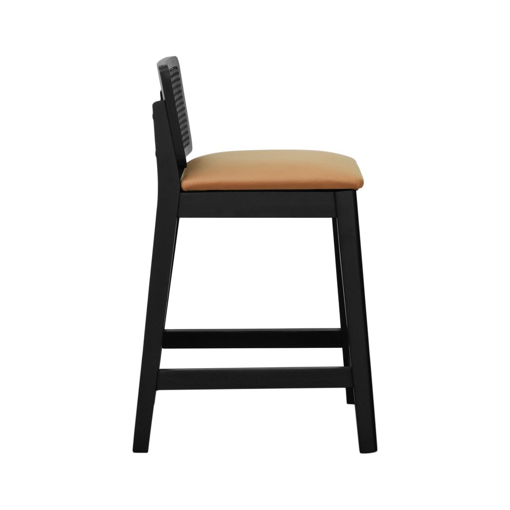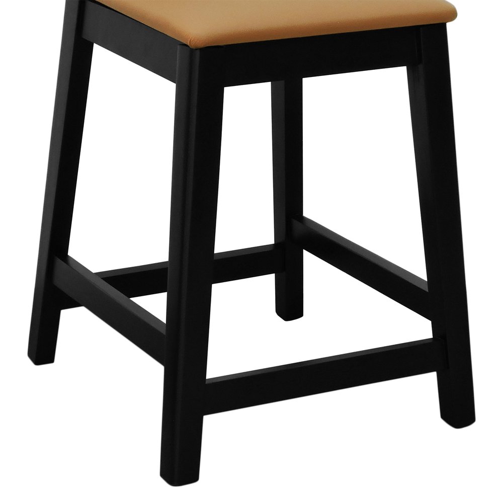 Banqueta Média Gabi Madeira Maciça Telinha - Preto Assento Estofado Corano Caramelo