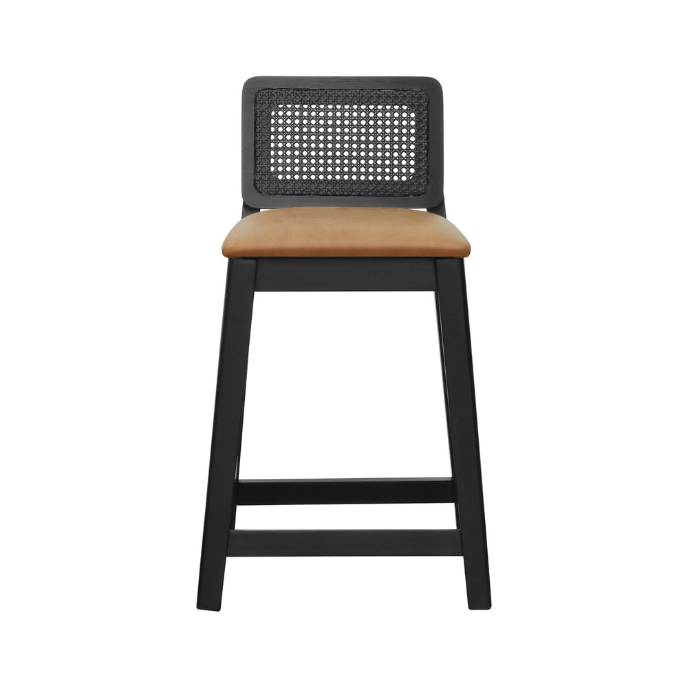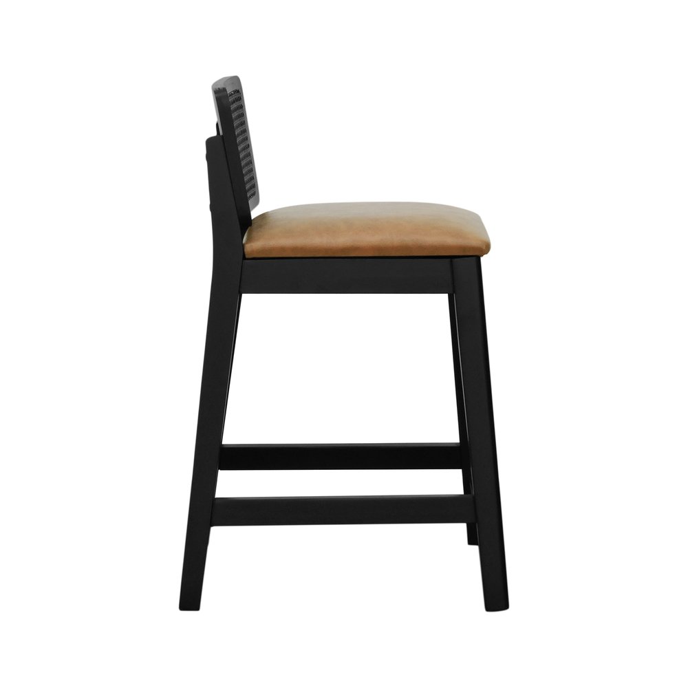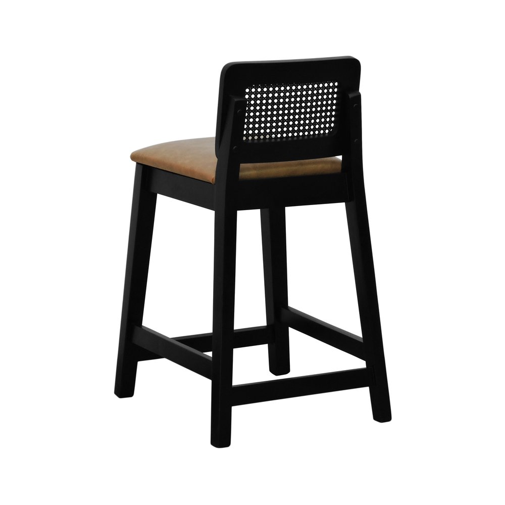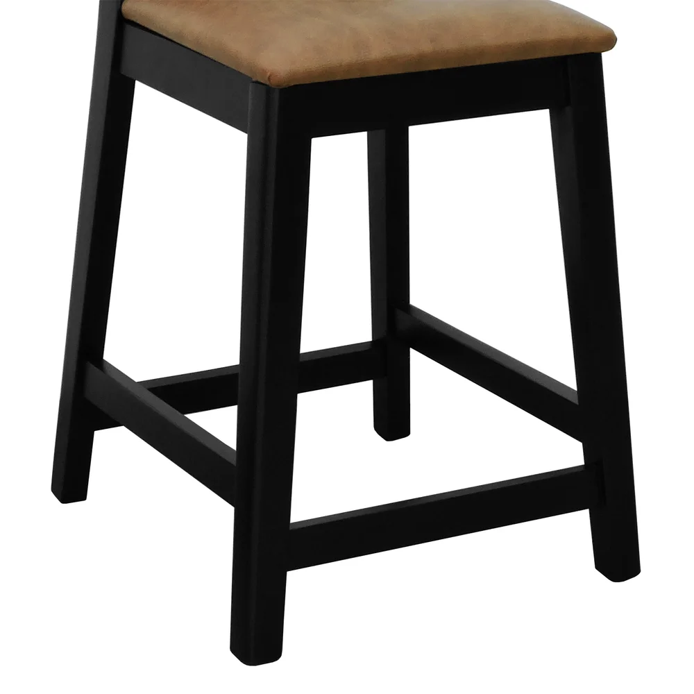 Banqueta Média Gabi Madeira Maciça Telinha Preto Assento Estofado Corano Marrom Mescla
