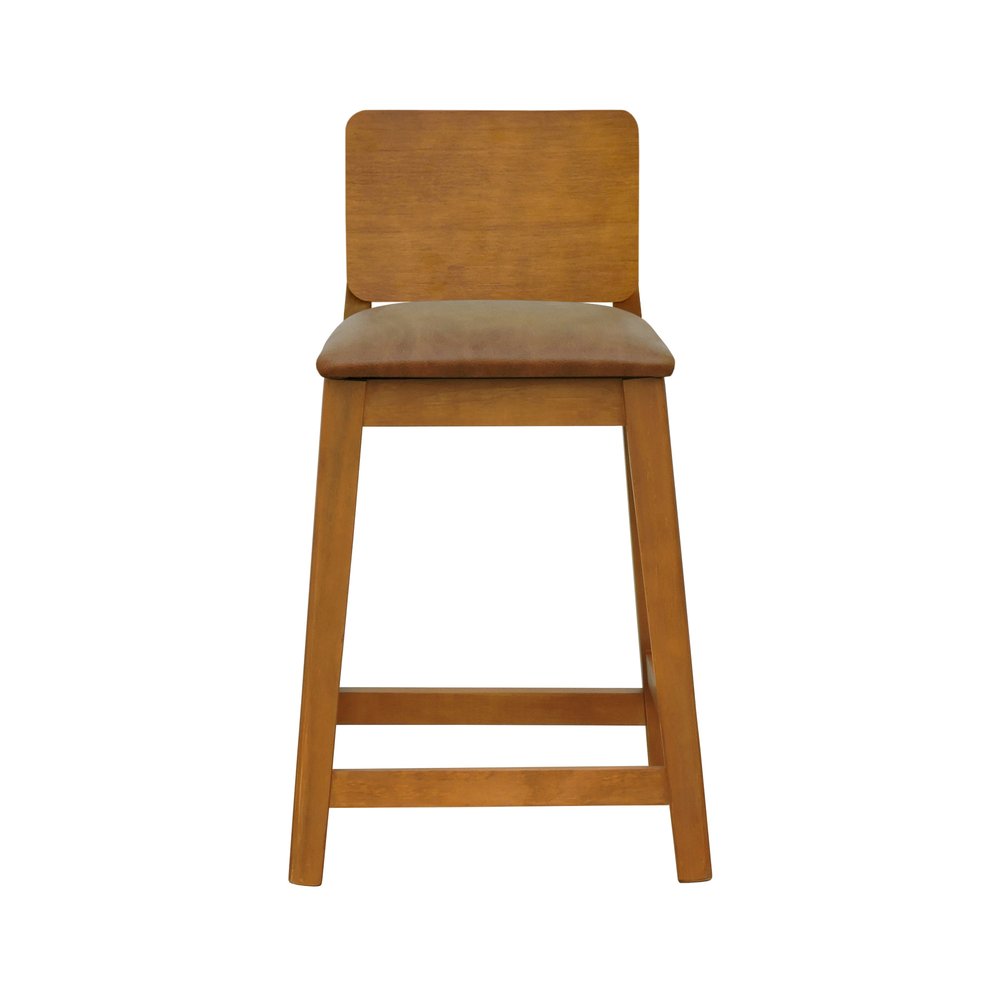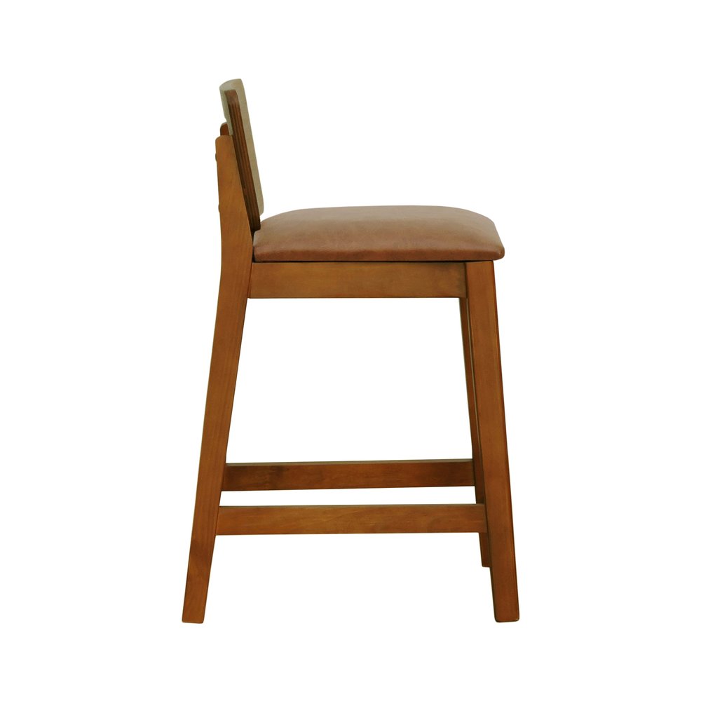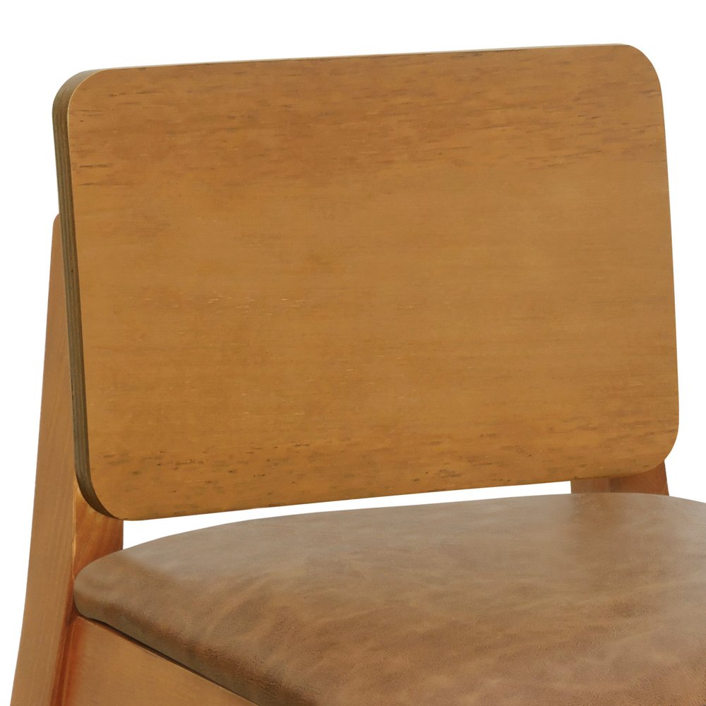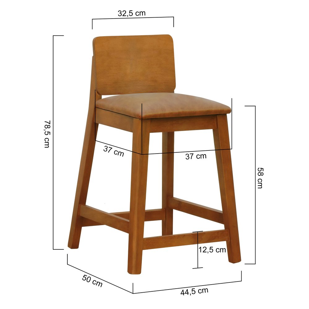 Banqueta Média Lyon Madeira Encosto Anatômico - Amêndoa Assento Estofado Corano Marrom Mescla