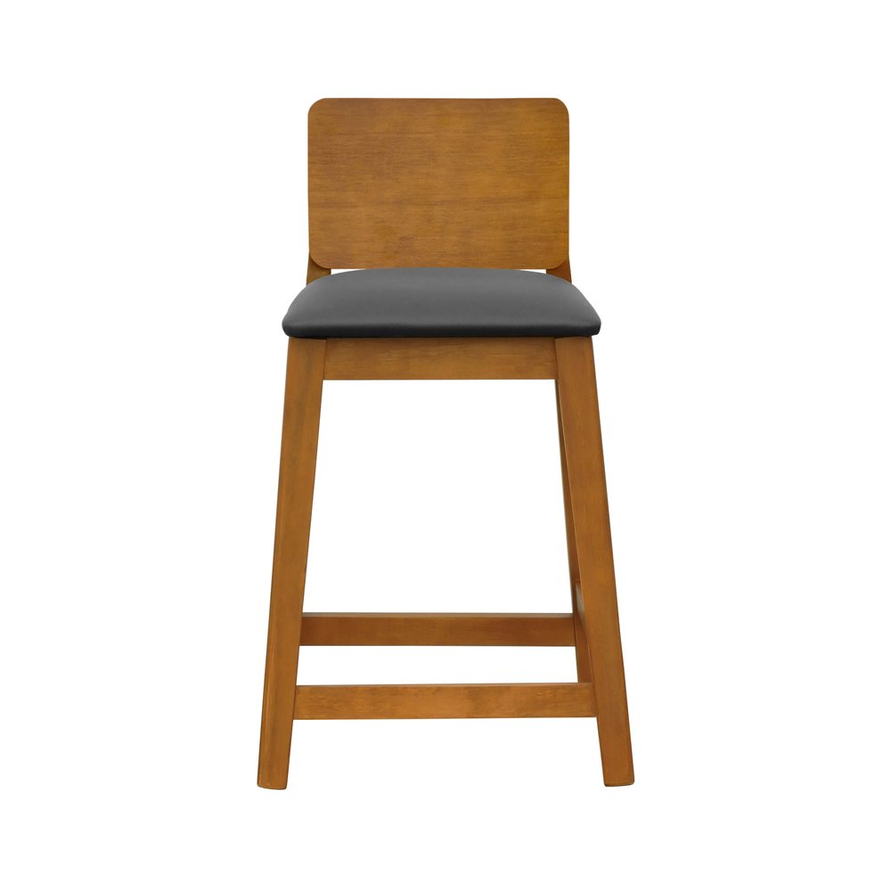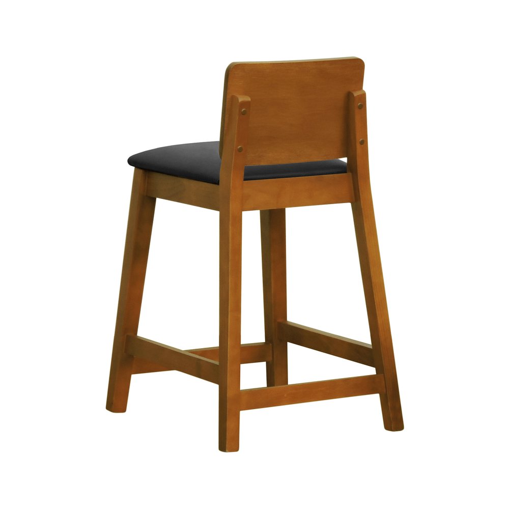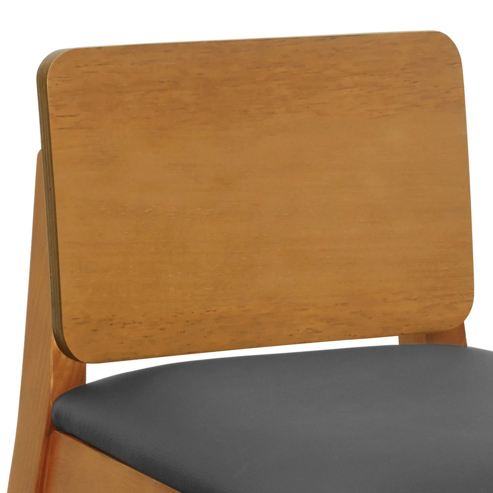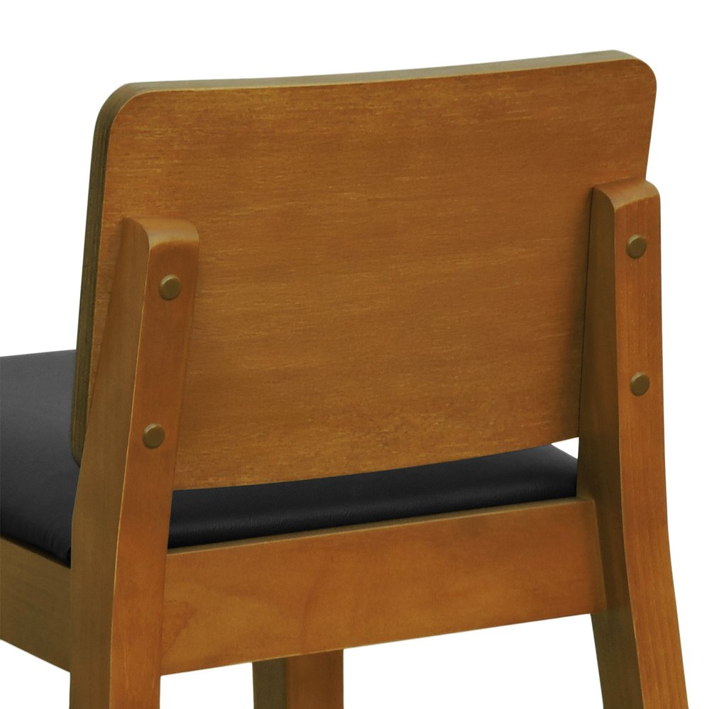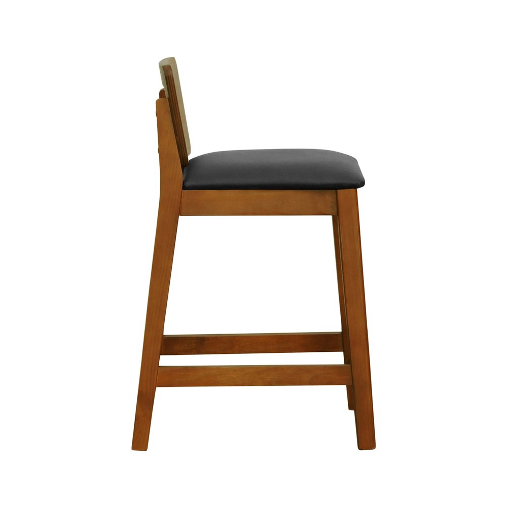 Banqueta Média Lyon Madeira Encosto Anatômico - Amêndoa Assento Estofado Corano Preto