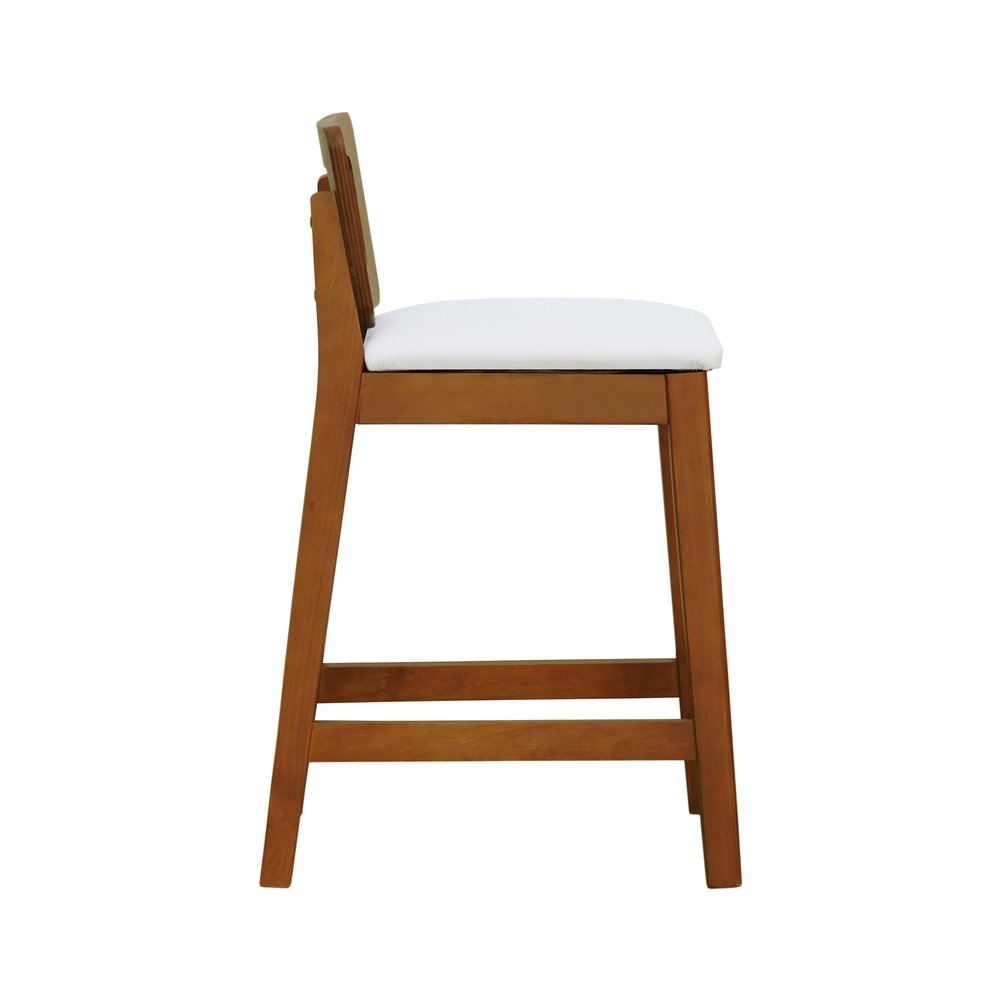 Banqueta Média River Madeira Maciça - Amêndoa Assento Estofado Corano Bege