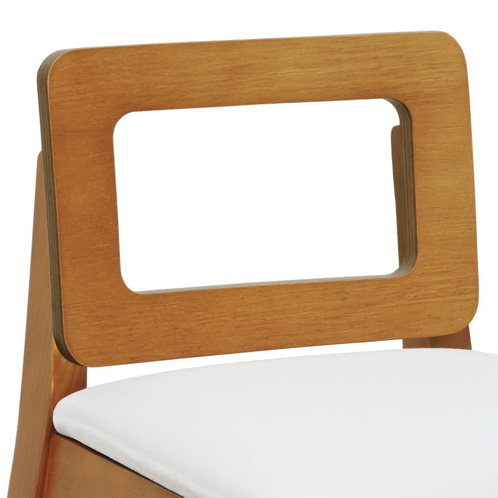 Estrutura em madeira de pinus maciço, assento estofado espuma D26 e encosto anatômico vazado.
