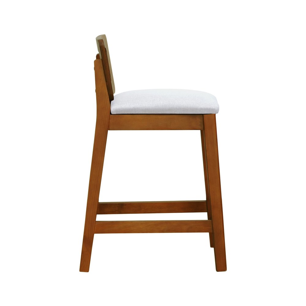 Banqueta Média River Madeira Maciça - Amêndoa Assento Estofado Linho Bege Mescla Impermeável