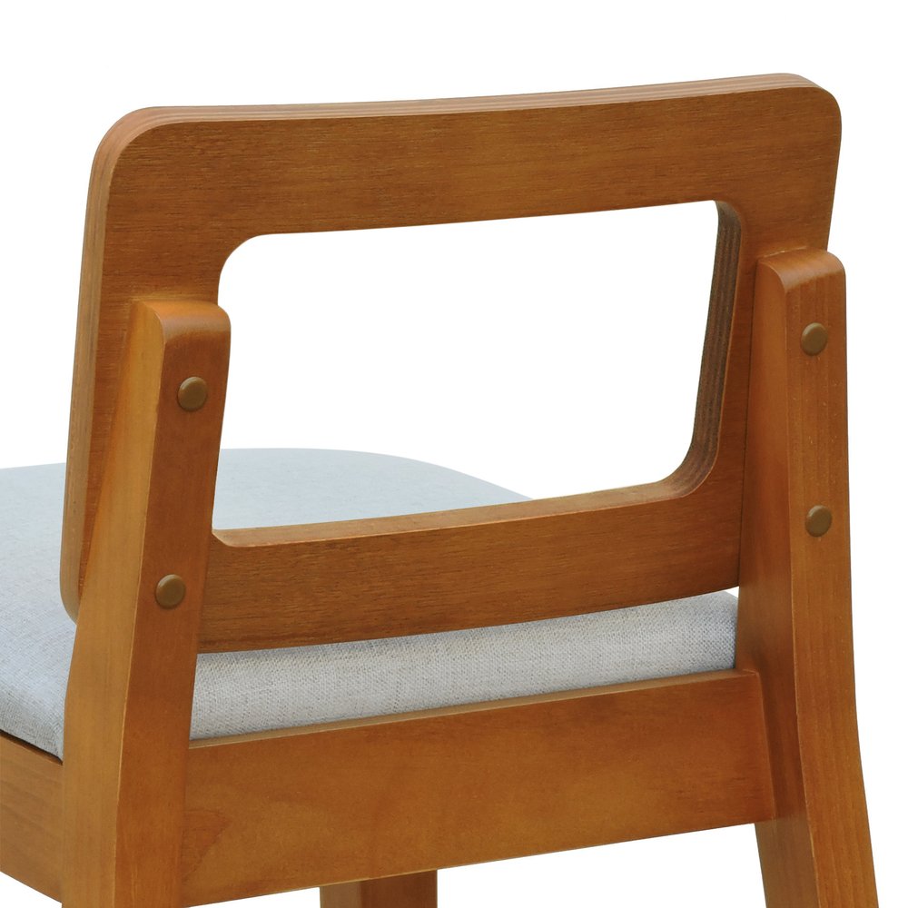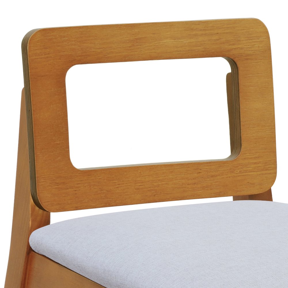 Estrutura em madeira de pinus maciço, assento estofado espuma D26 e encosto anatômico vazado.