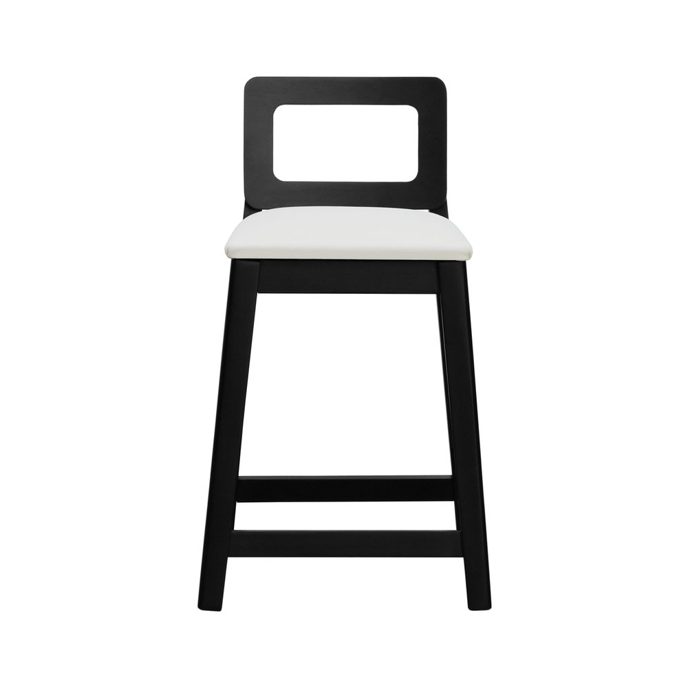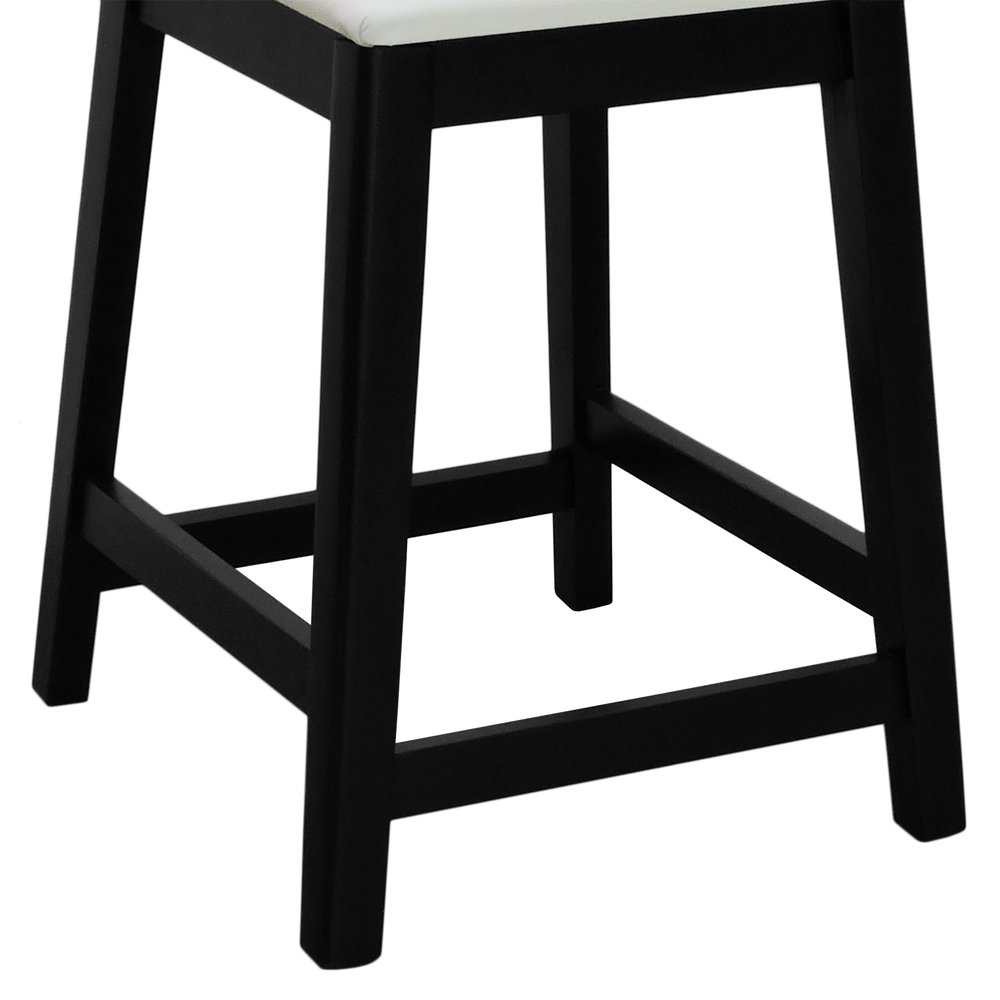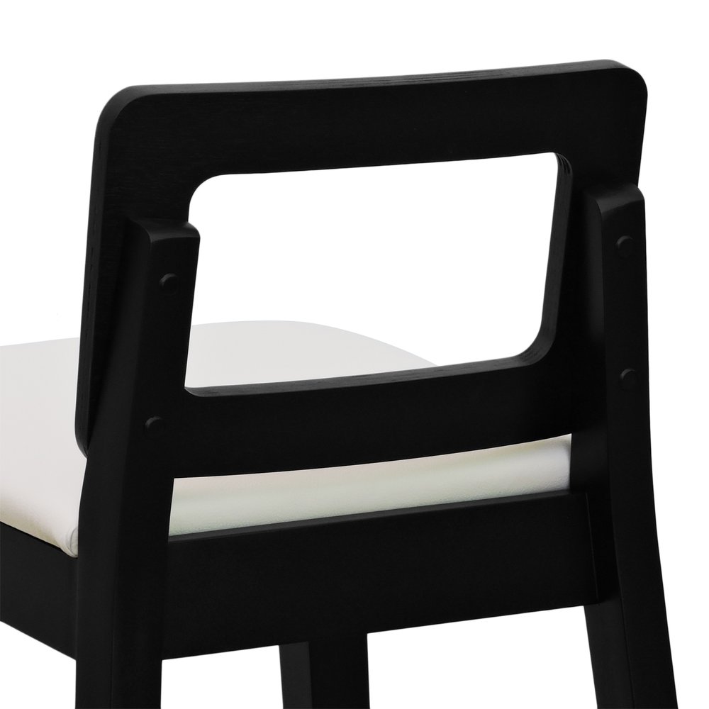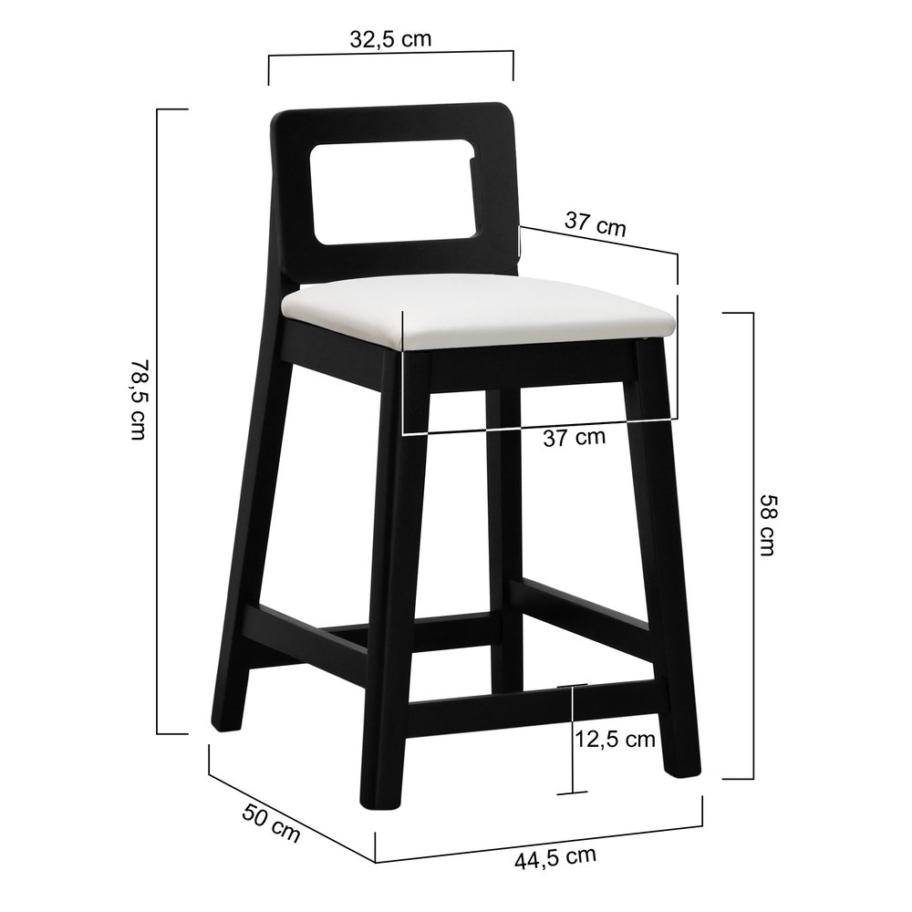 Banqueta Média River Madeira Maciça - Preto Assento Estofado Corano Bege