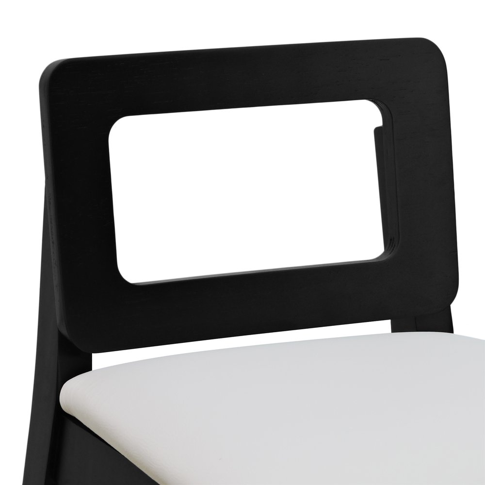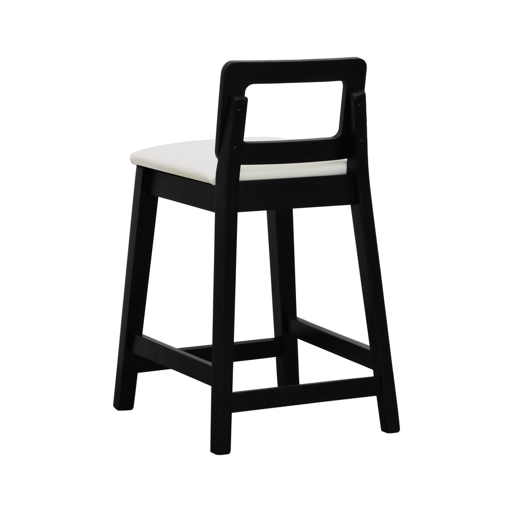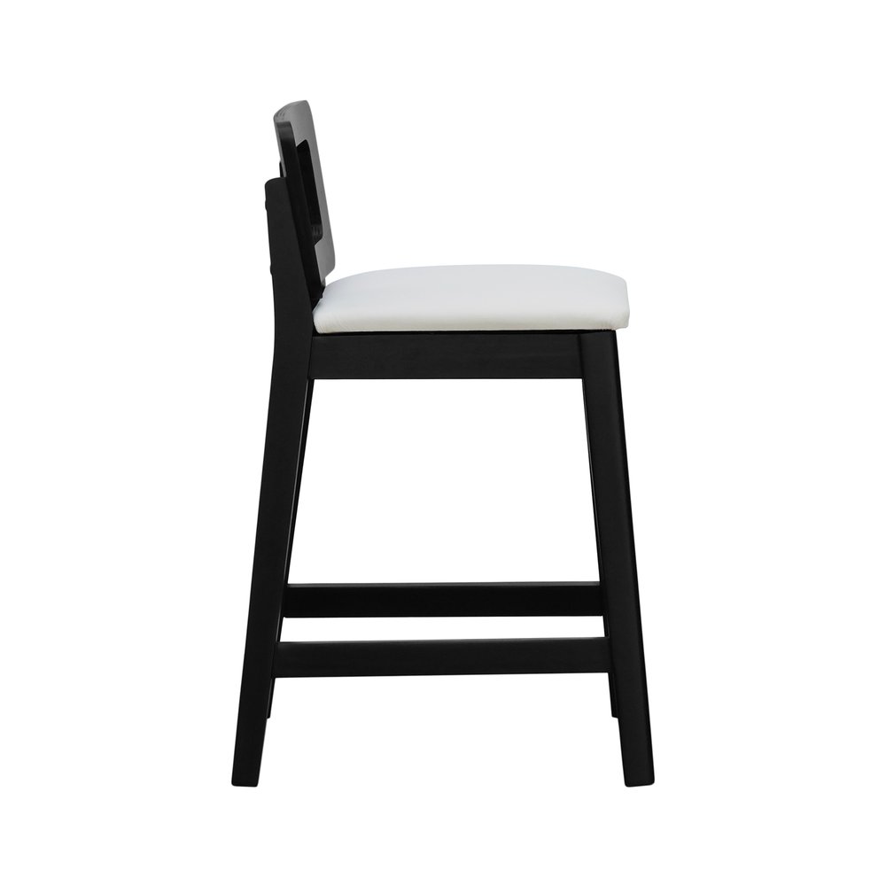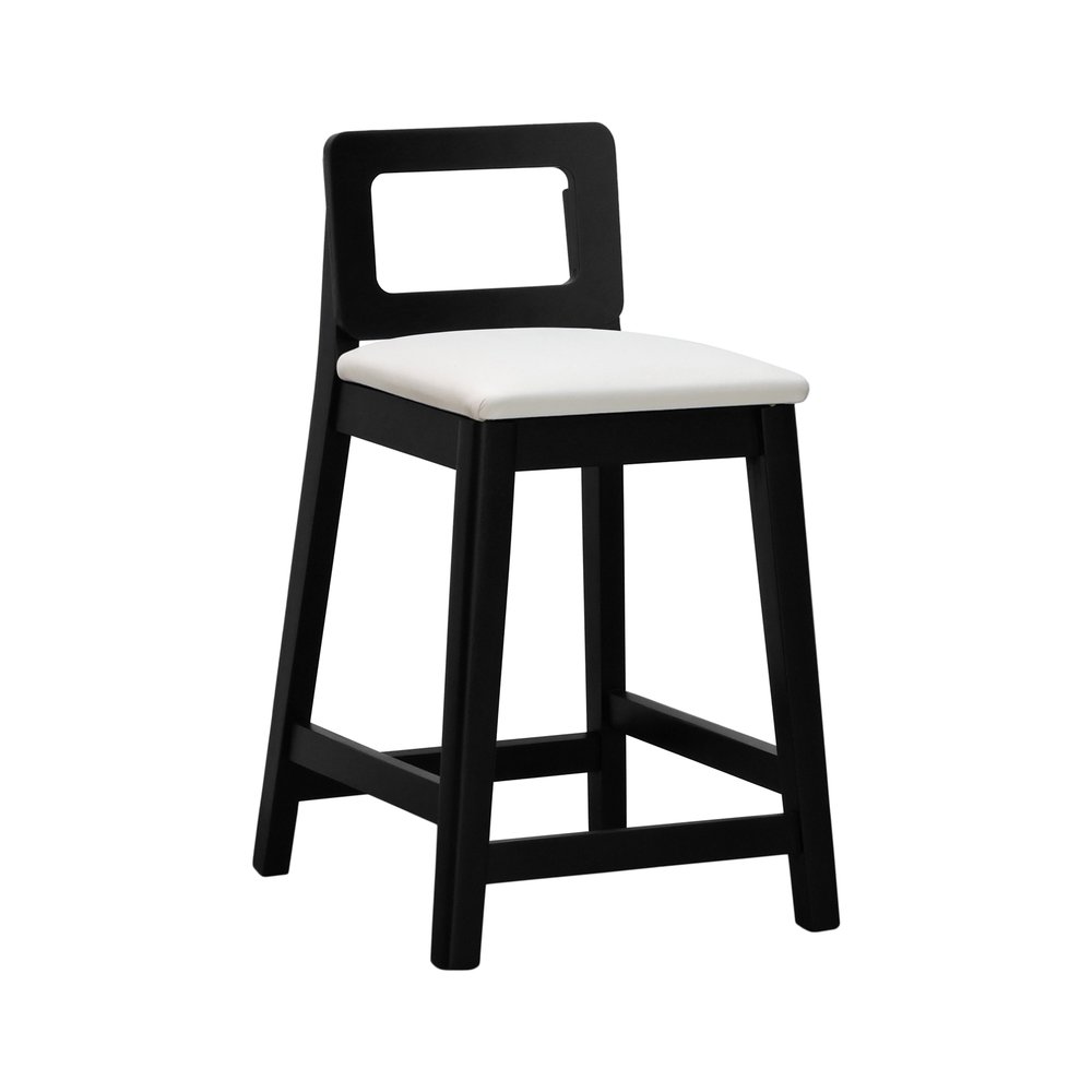 Banqueta Média River Madeira Maciça - Preto Assento Estofado Corano Bege