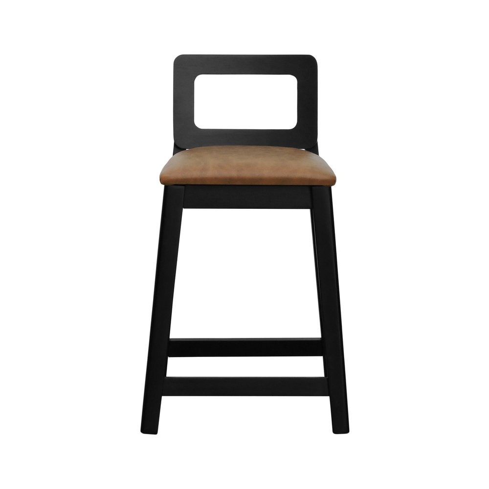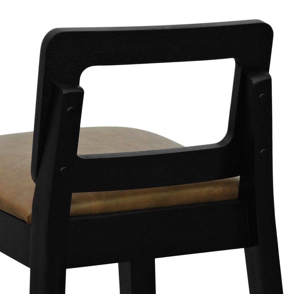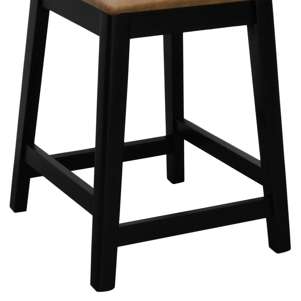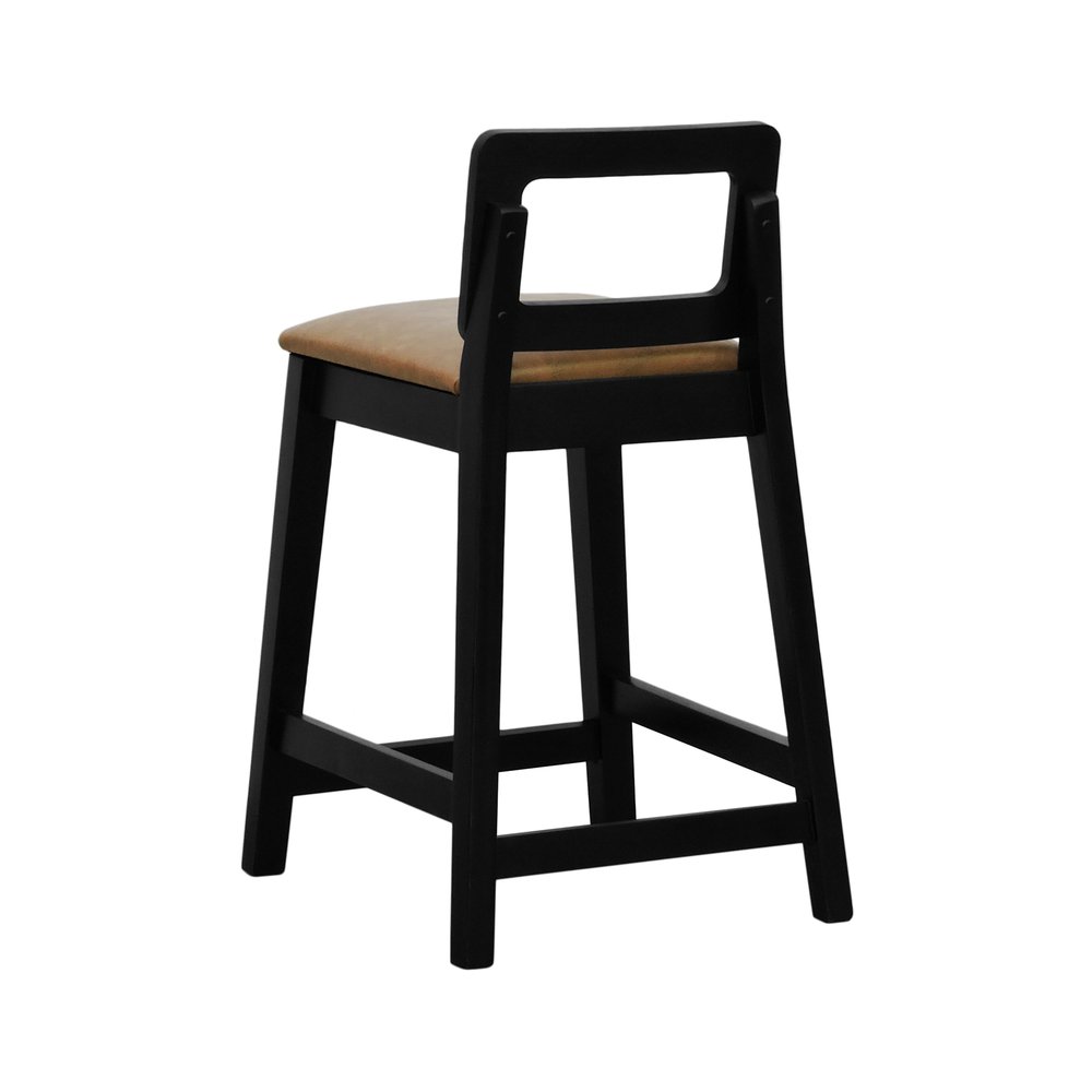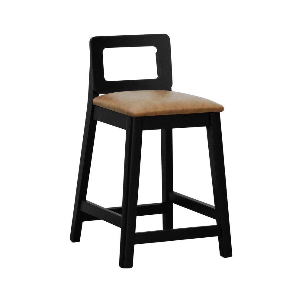 Banqueta Média River Madeira Maciça - Preto Assento Estofado Corano Marrom Mescla