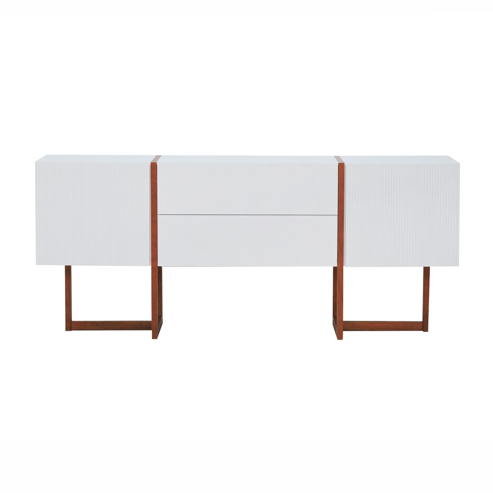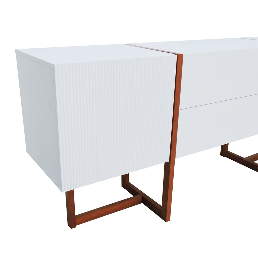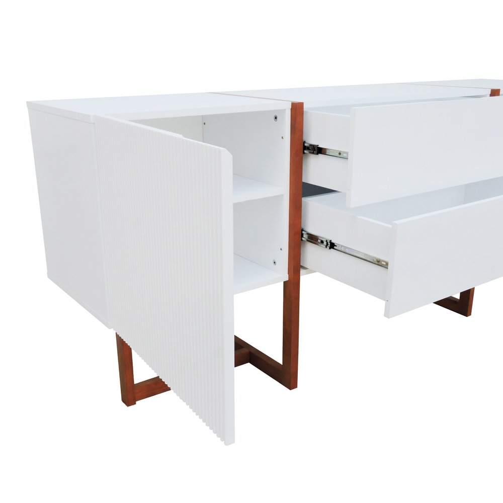 O Buffet Ondas é produzido em MDF laqueado e os pés em madeira maciça envernizada, produto resistentes e duradouros. O buffet Ondas possuí duas gavetas e duas portas para garantir muito espaço de armazenamento interno. Podendo ser usado em salas de estar, salas de jantar e/ou naquele seu cantinho favorito de sua casa.
