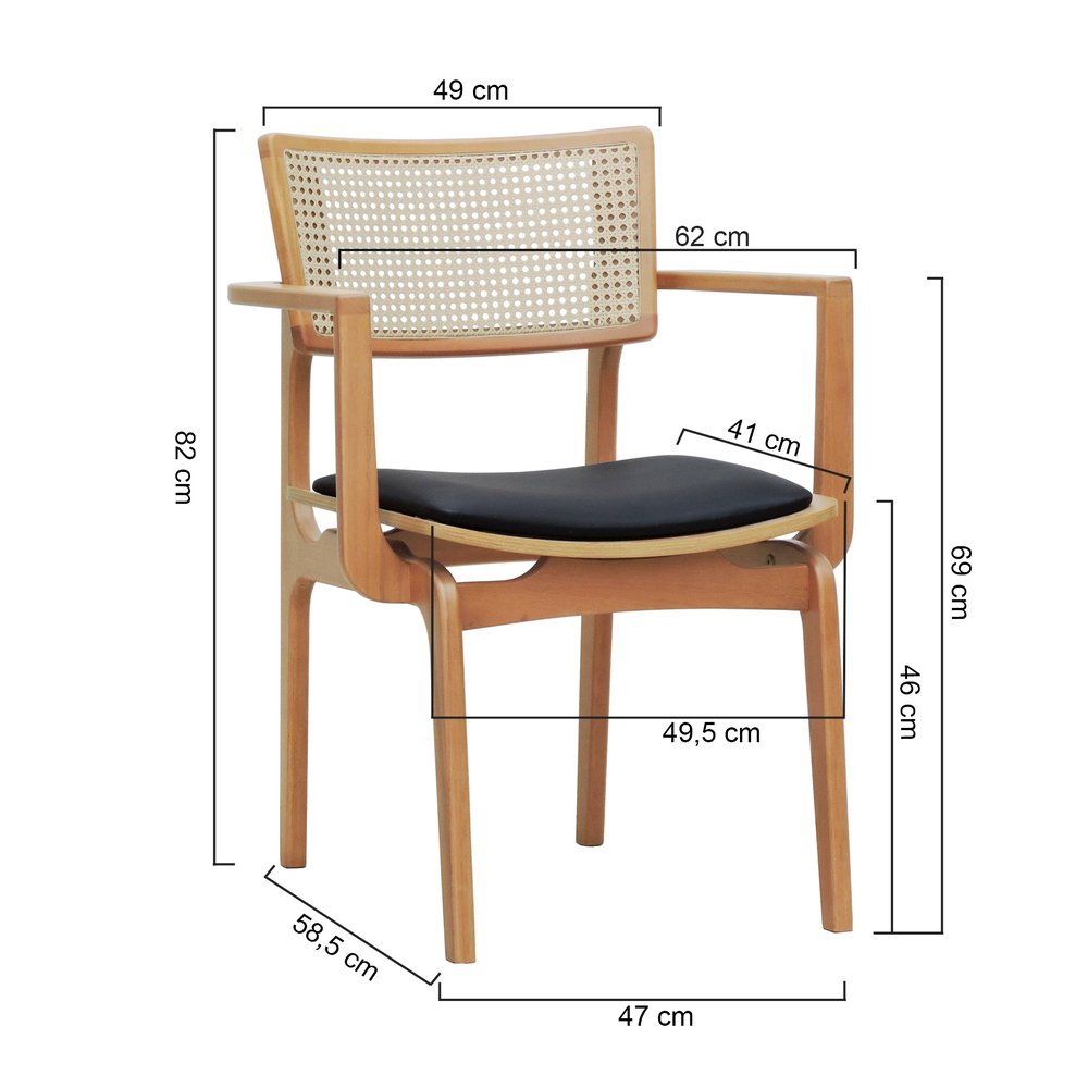 Cadeira Apollo Madeira Maciça Com Braço Encosto Telinha Assento Anatômico