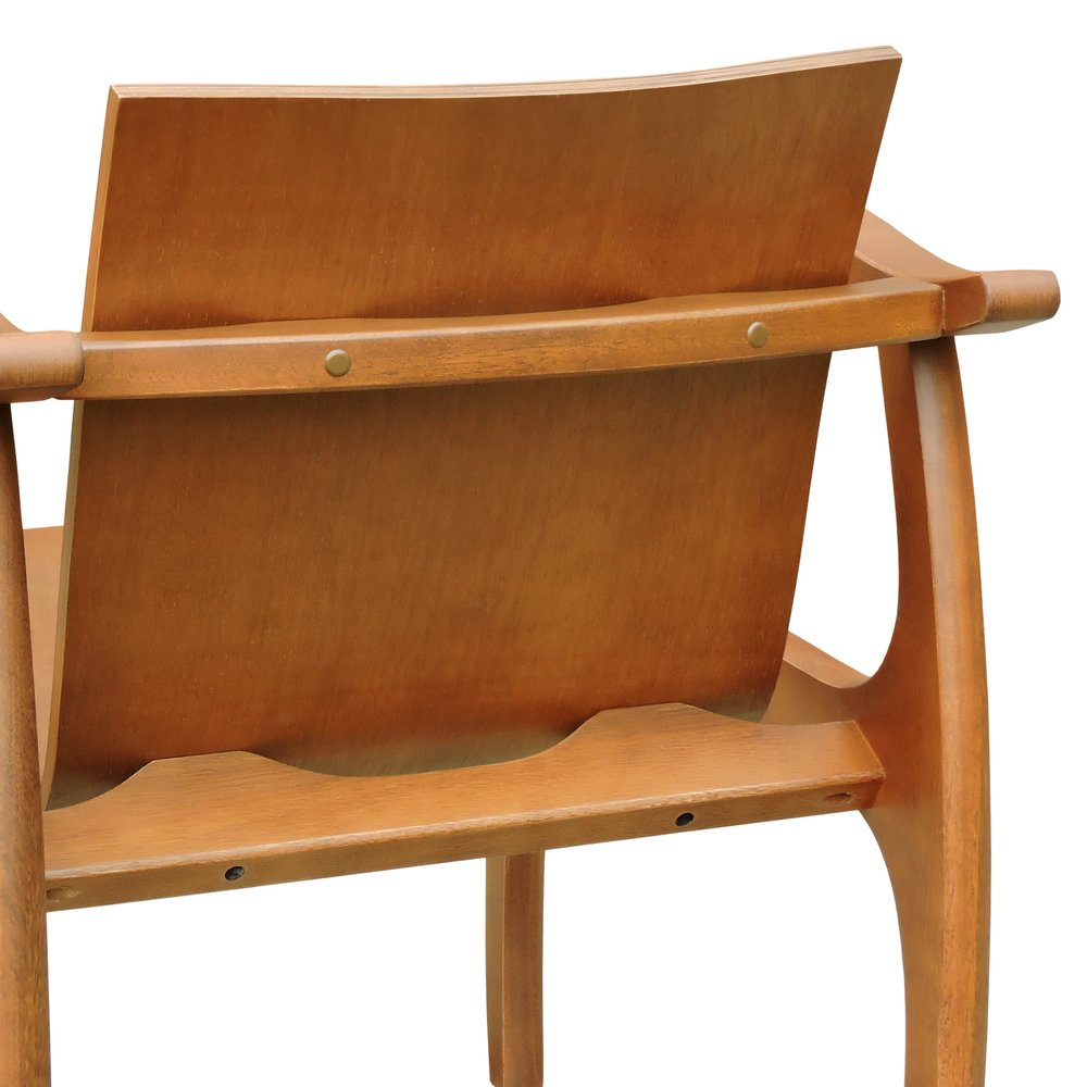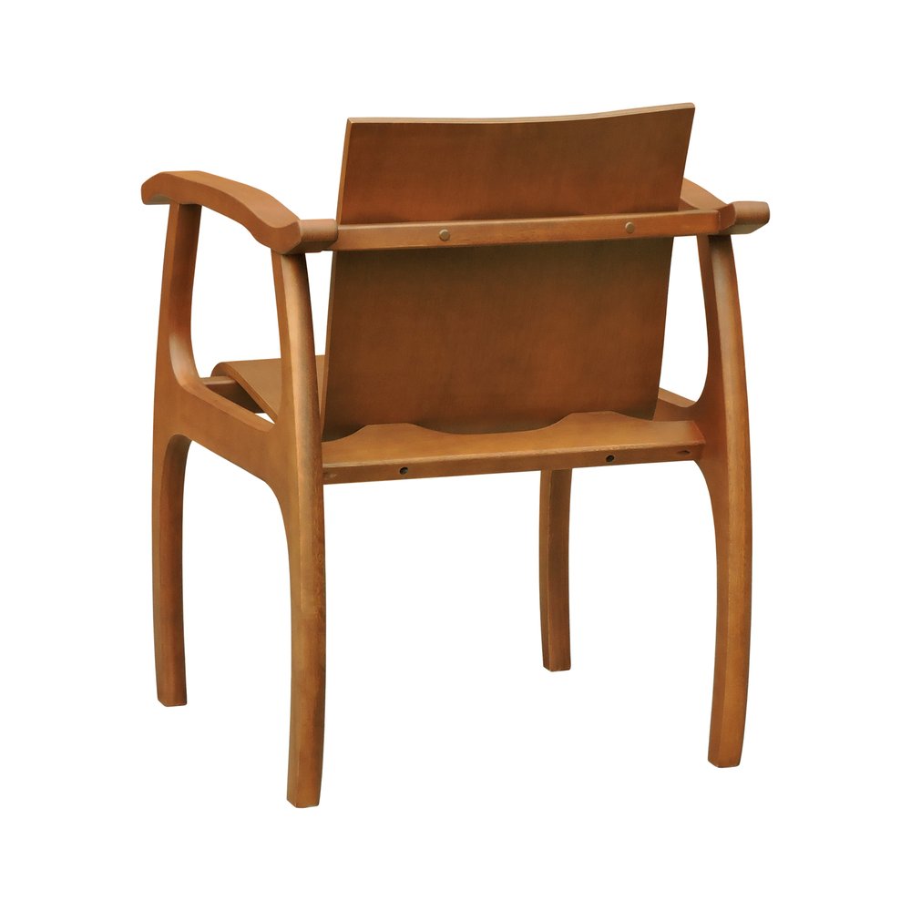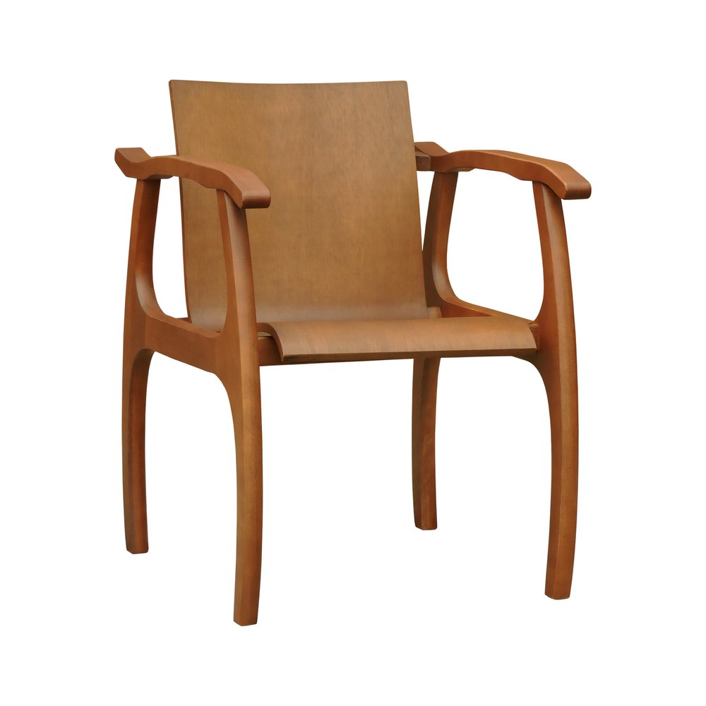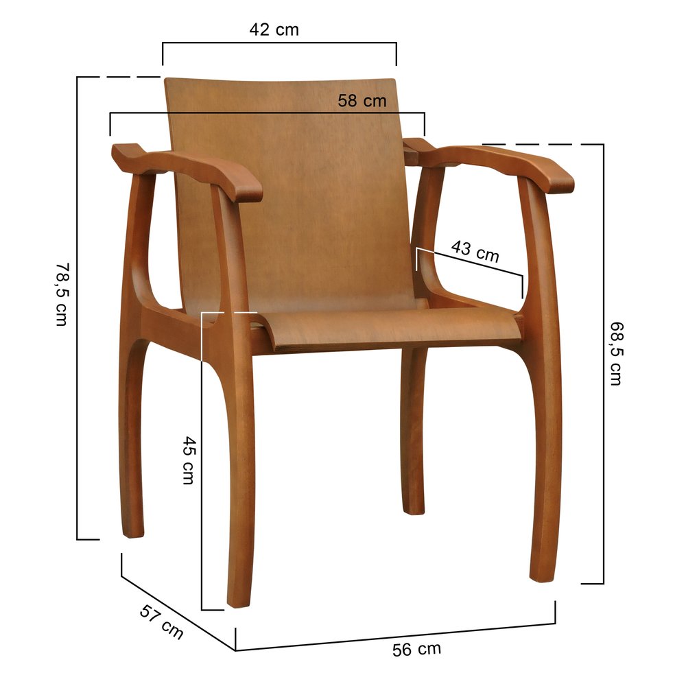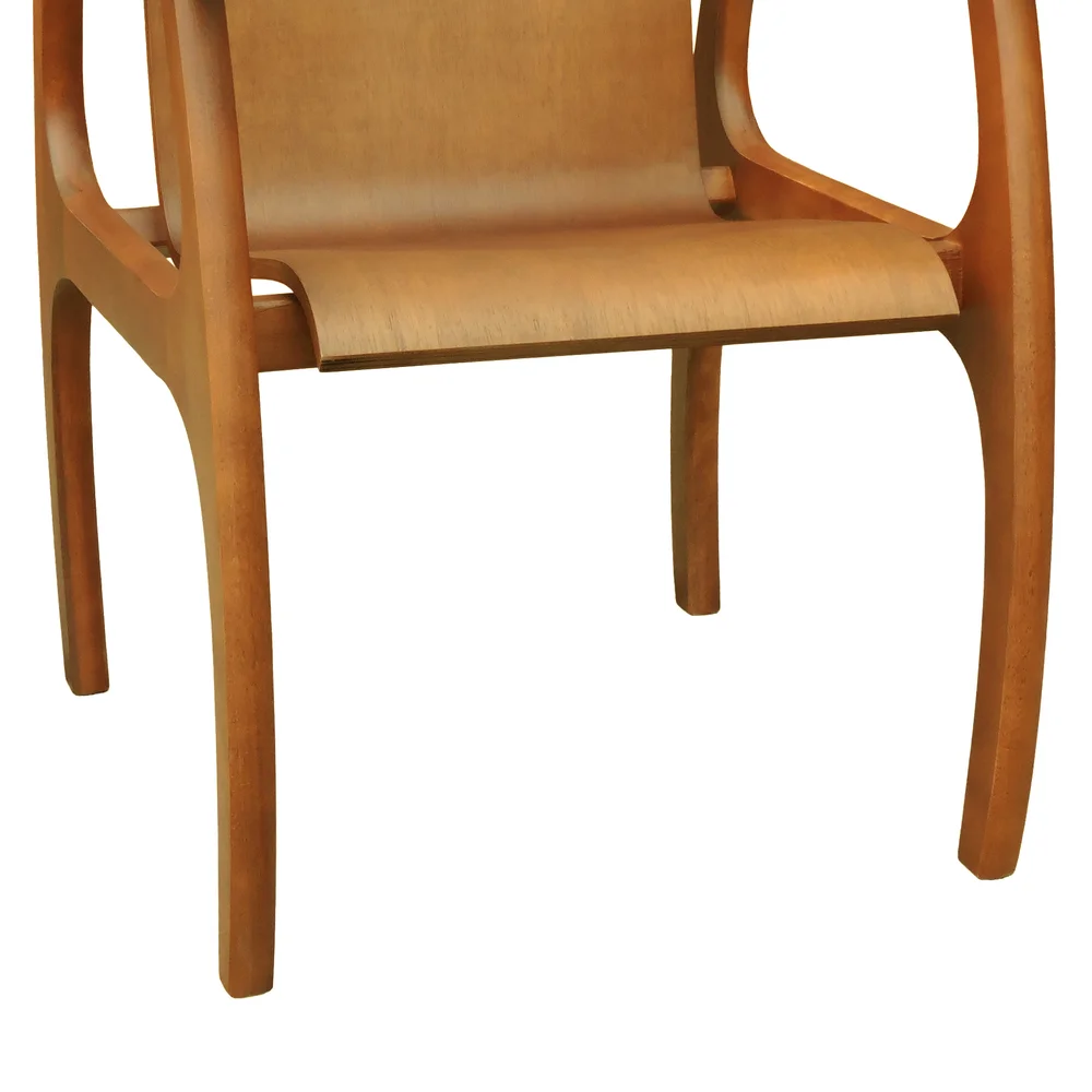 A tonalidade amêndoa da madeira confere à cadeira um aspecto sofisticado e atemporal, permitindo que ela se integre harmoniosamente a diversos estilos de decoração. O acabamento em verniz acetinado realça os veios naturais da madeira e facilita a manutenção.