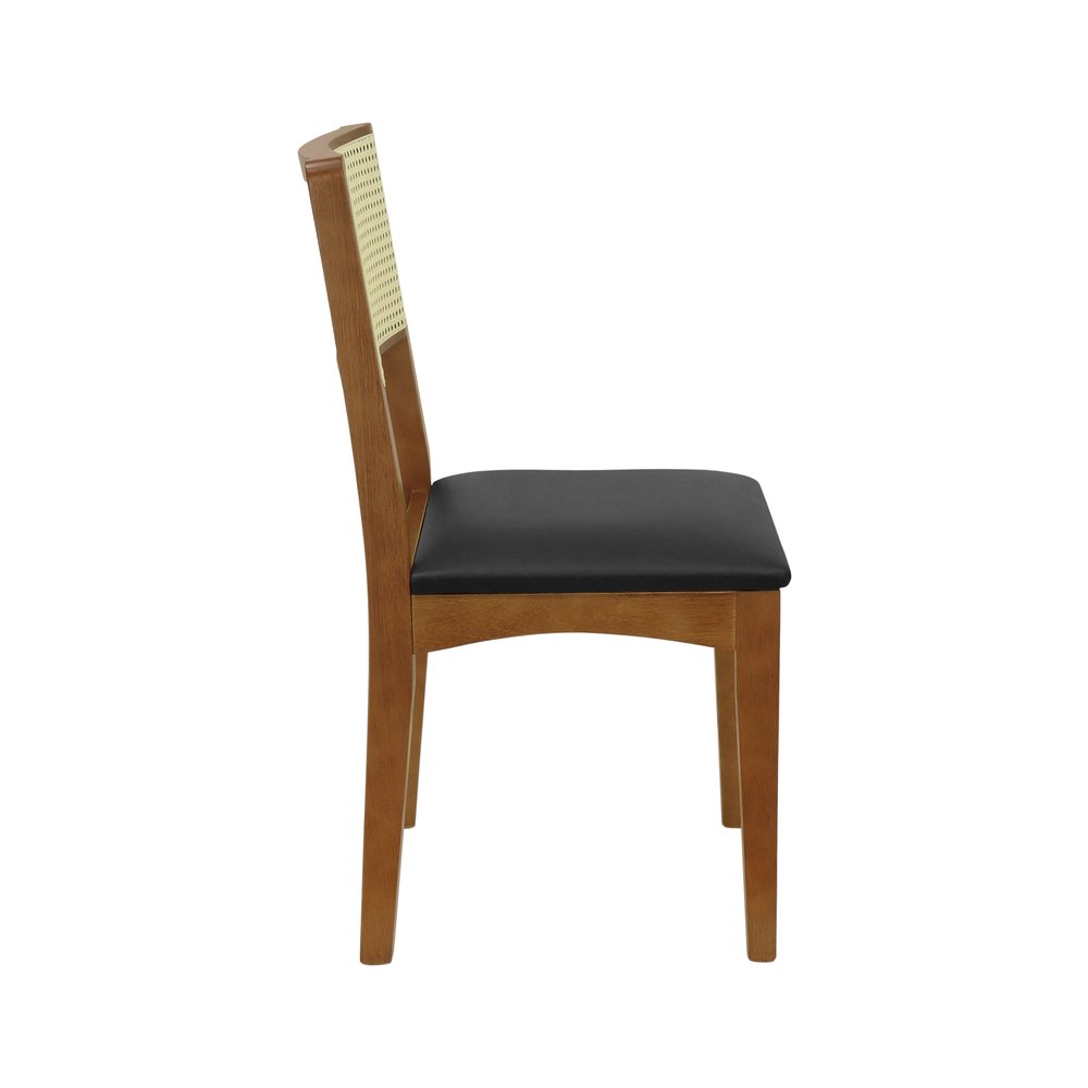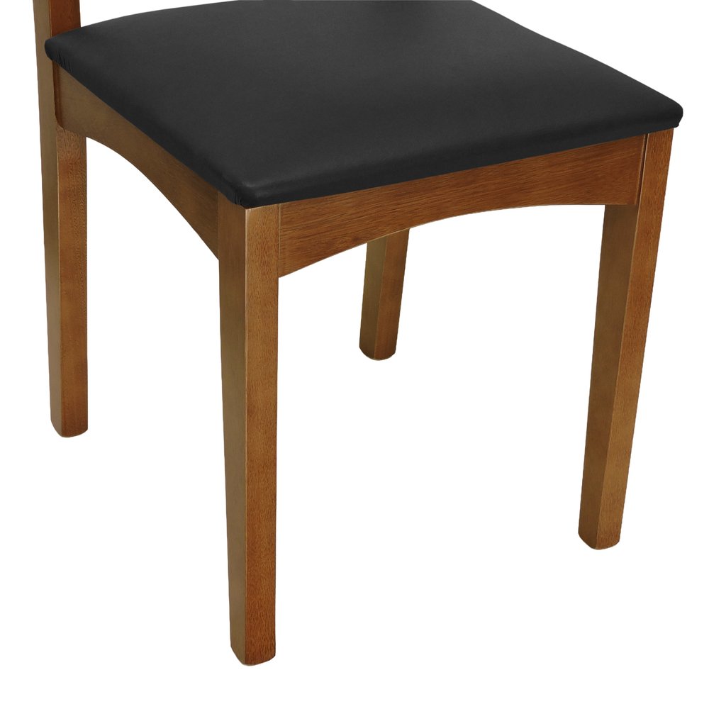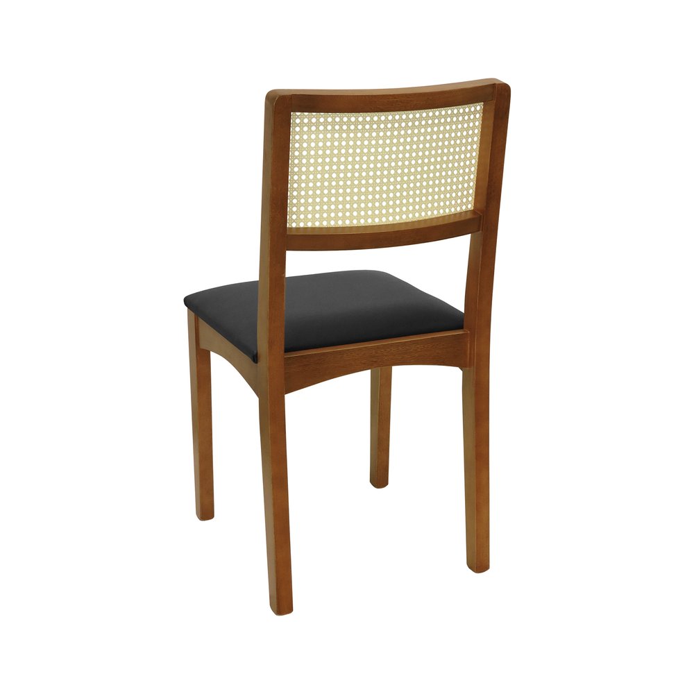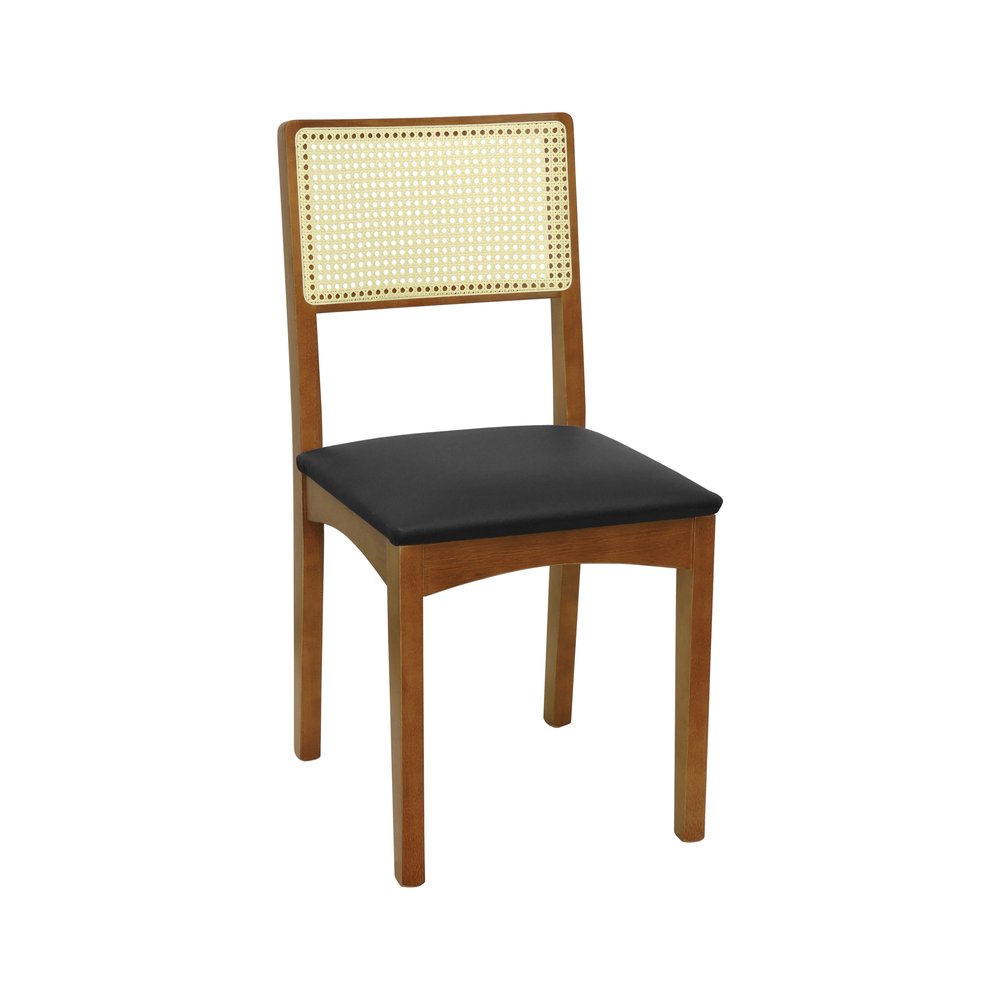 Cadeira Pérola Madeira Maciça Encosto Telinha - Amêndoa Assento Estofado Corano Preto