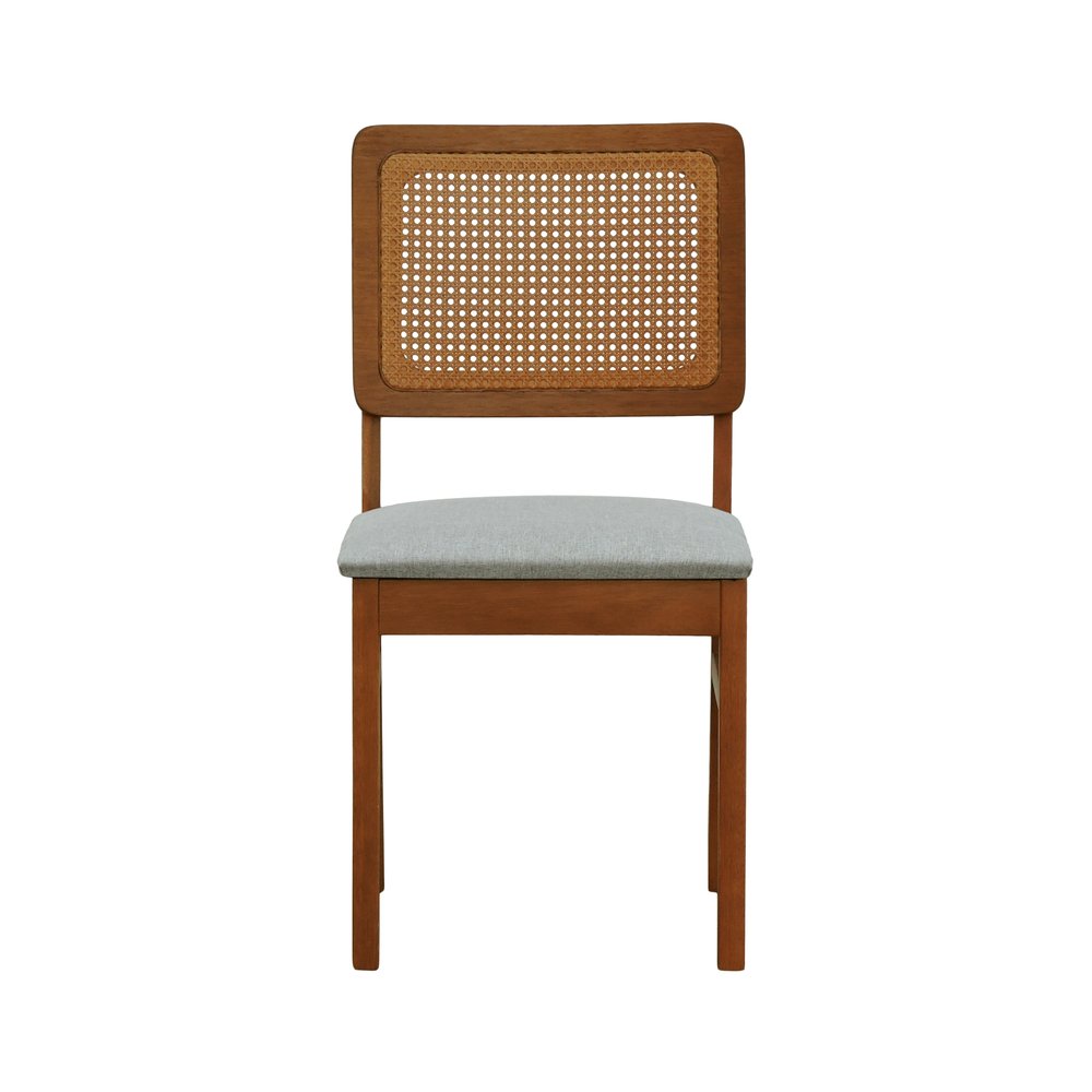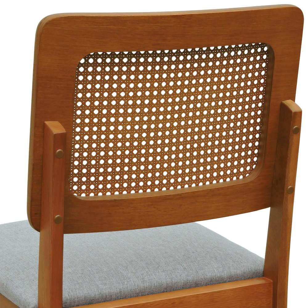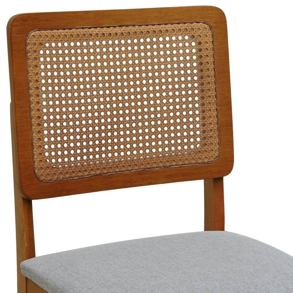 A Cadeira Lyon da Decorise é confeccionada em madeira de eucalipto maciça na cor amêndoa, oferecendo robustez e elegância. Seu encosto em telinha sextavada proporciona ventilação e leveza visual, enquanto o assento estofado em linho cinza mescla impermeável alia conforto e praticidade. Ideal para salas de jantar e cozinhas, esta cadeira traz um toque contemporâneo ao ambiente.