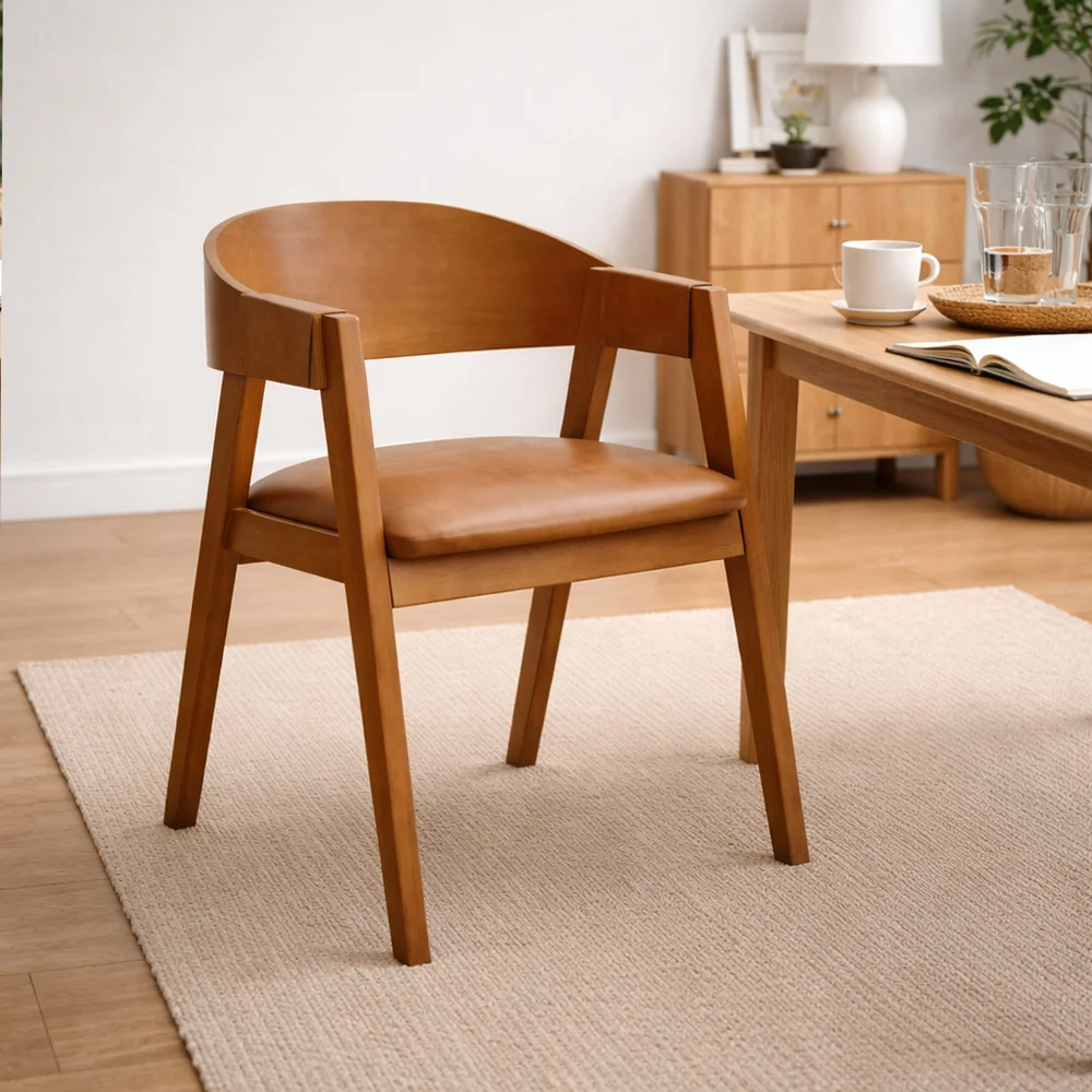 Confeccionada em madeira maciça de alta qualidade, esta cadeira de madeira é robusta e resistente, garantindo anos de uso sem perder o charme natural da madeira. Seu encosto curvado proporciona um apoio extra para as costas, promovendo uma postura confortável durante os mais diversos momentos ao redor da mesa.
