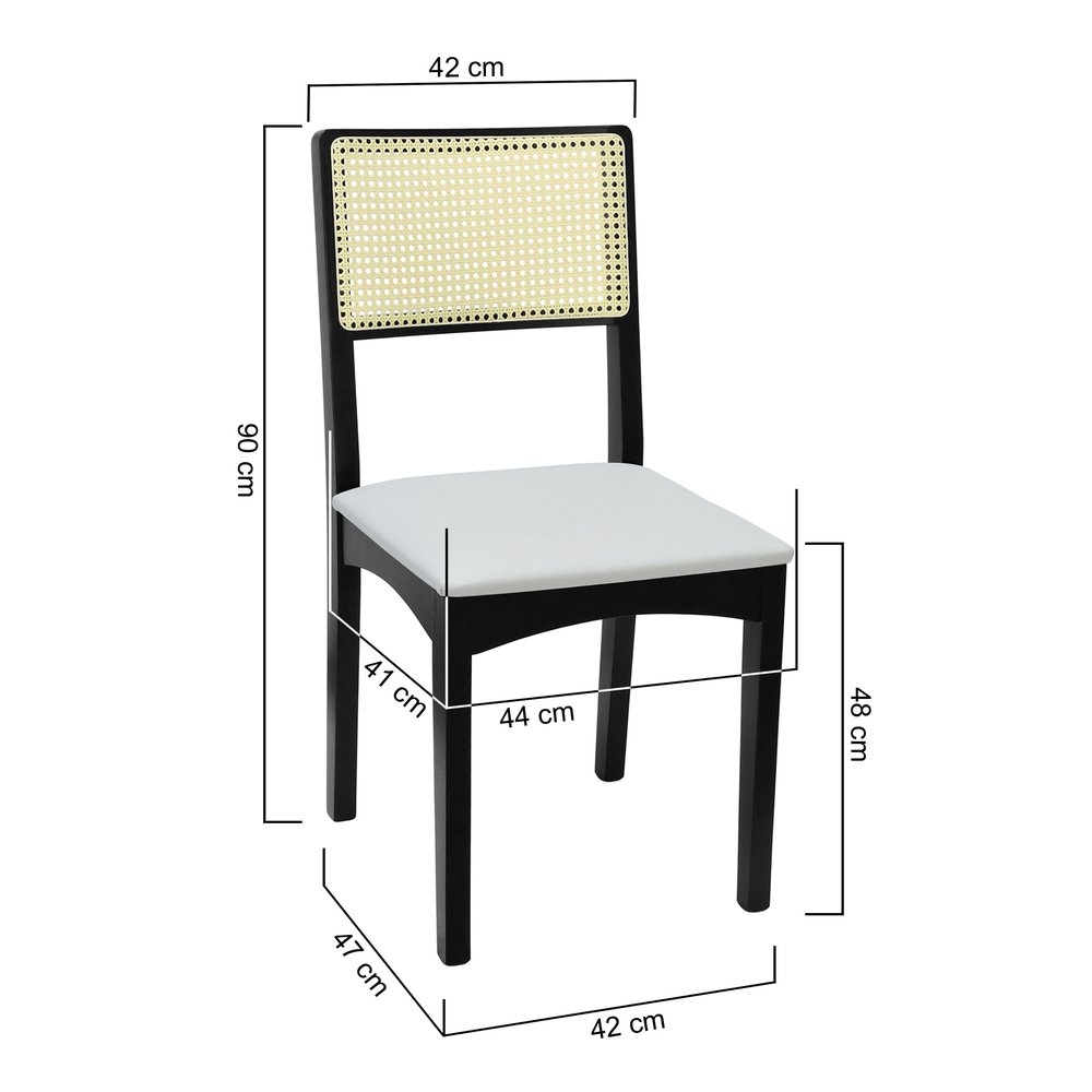 Cadeira Pérola Madeira Maciça com Encosto em Telinha e Assento Estofado - Preto