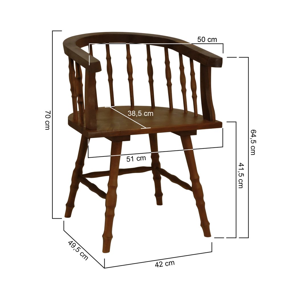 Os detalhes torneados não apenas embelezam a cadeira, mas também reforçam sua estrutura, tornando-a mais robusta e resistente. Ideal para a sala de jantar, sala de estar ou até para ambientes com decoração mais clássica, a Cadeira Torneada Sol traz conforto e sofisticação, adaptando-se perfeitamente a diversos estilos de decoração. A tonalidade quente da madeira imbuia, junto ao acabamento refinado, garante que a cadeira seja uma peça versátil e cheia de charme.