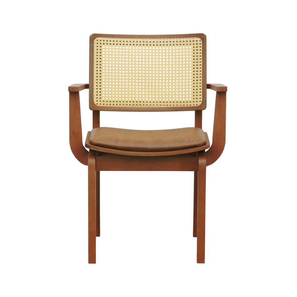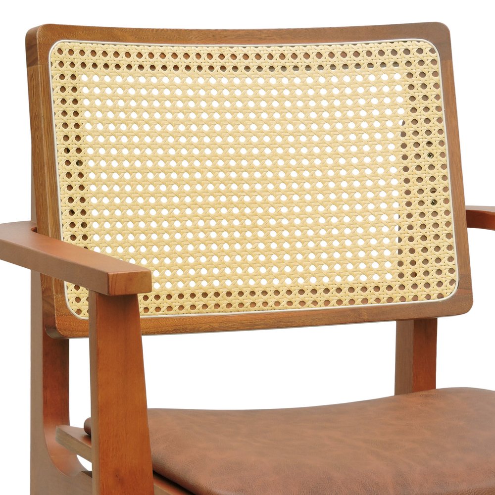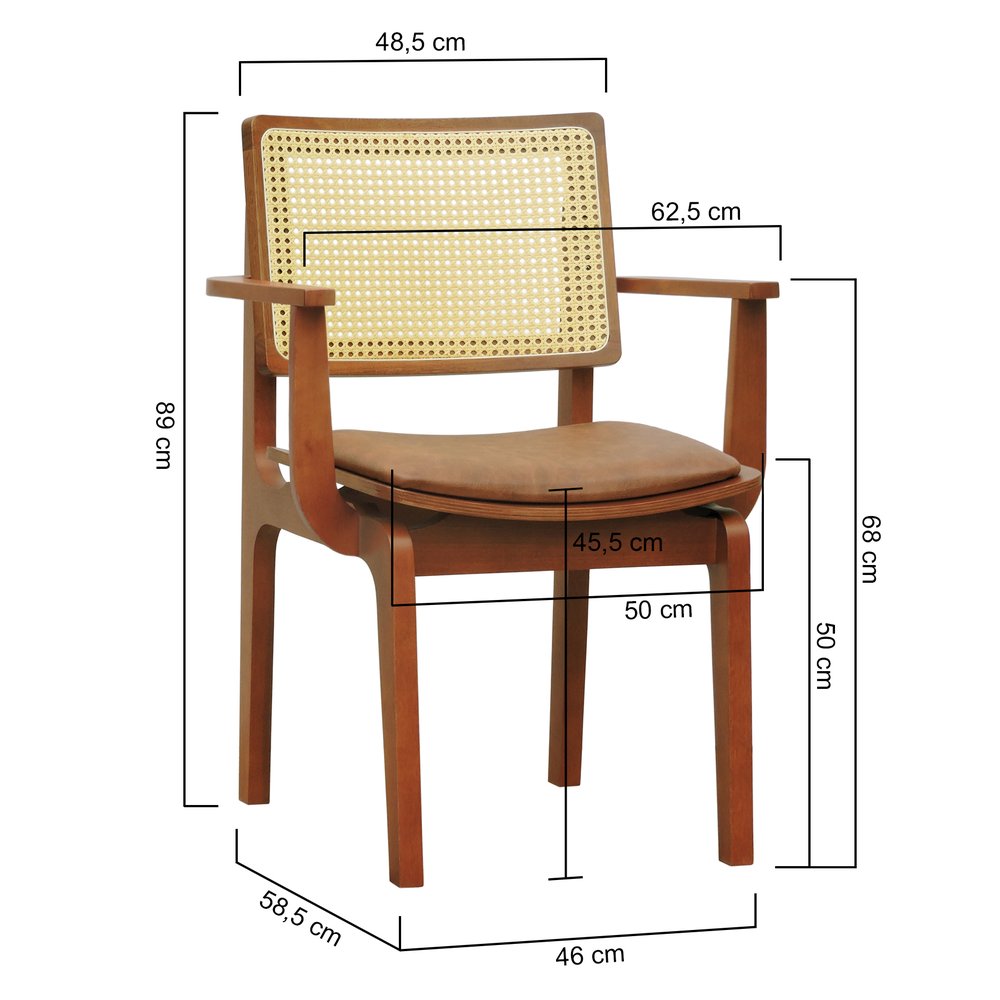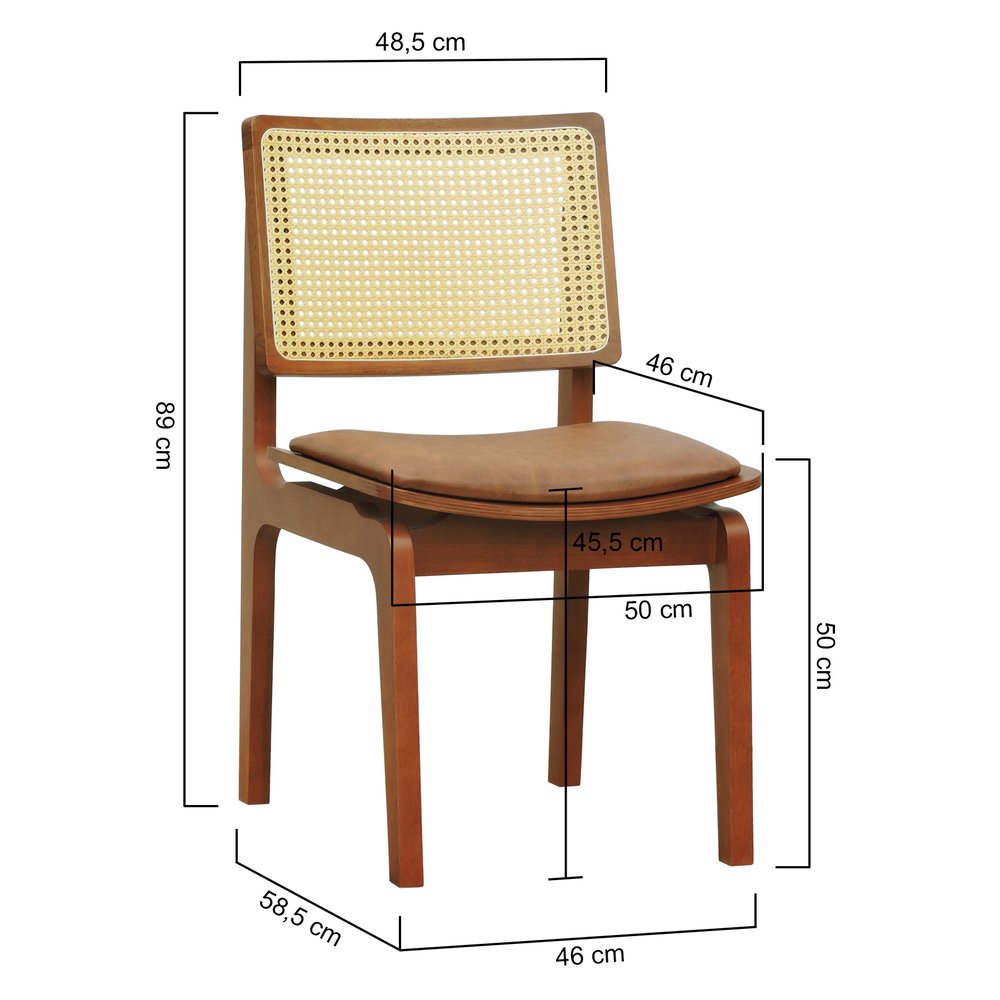 Acompanhando a mesa, estão 6 cadeiras de alta qualidade, todas fabricadas em madeira maciça tingida na cor amêndoa, oferecendo um toque sofisticado. O encosto anatômico com telinha de rattan aplicada garante um conforto extra, permitindo que você e seus convidados desfrutem de refeições por horas com total comodidade. Além disso, o assento anatômico estofado em corano marrom mescla agrega um toque de suavidade e resistência, perfeito para o uso diário.