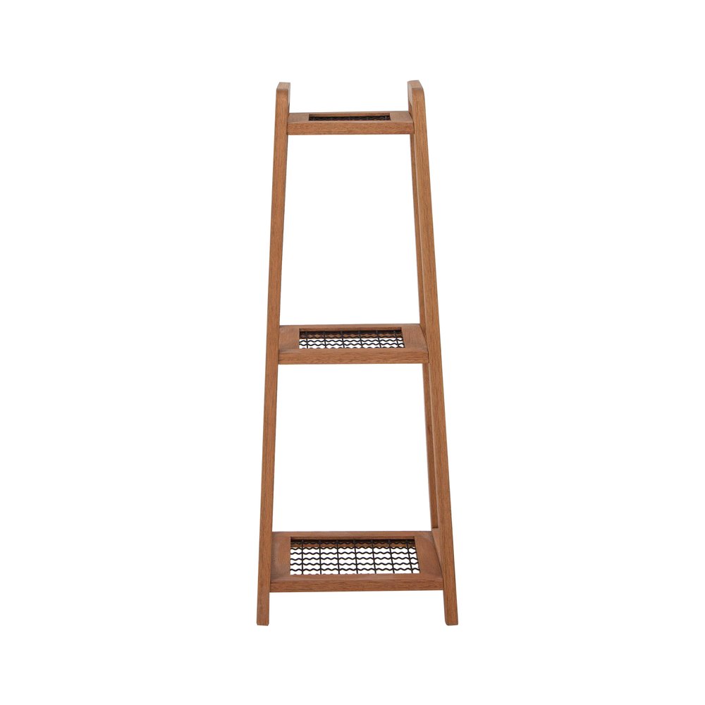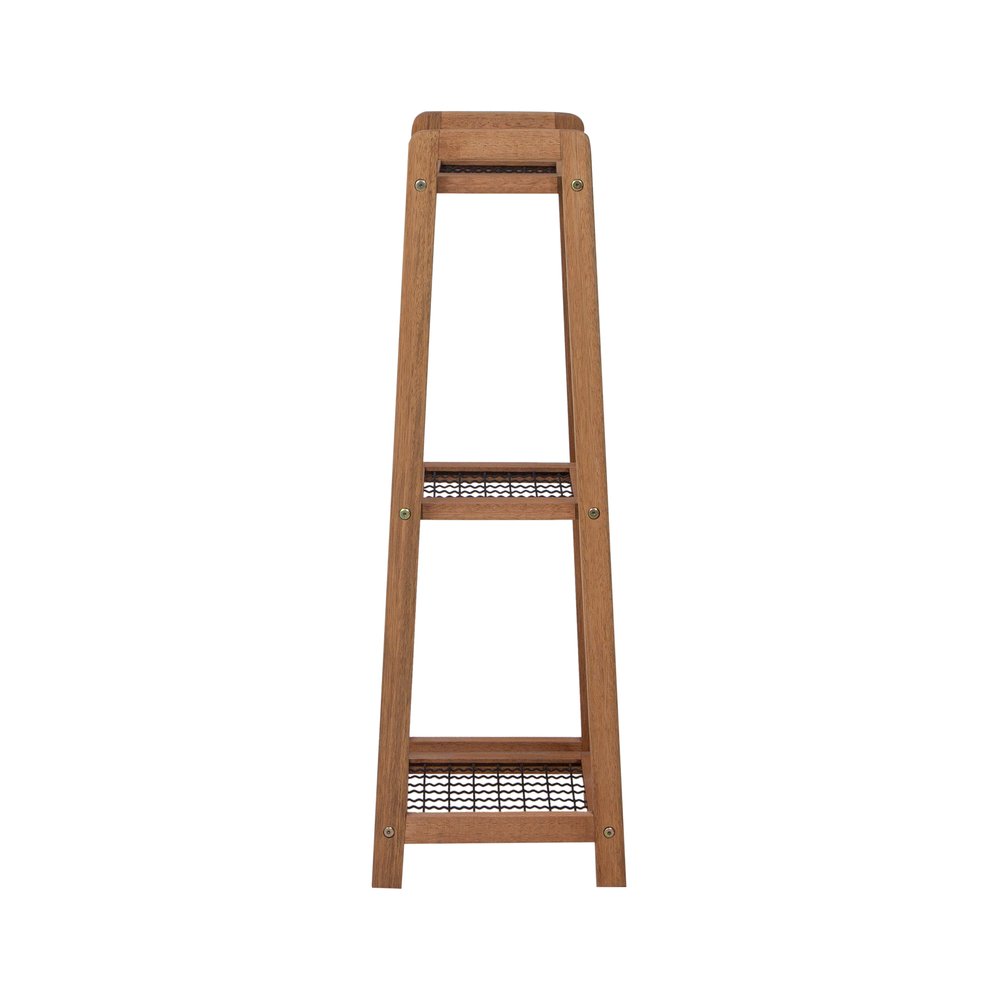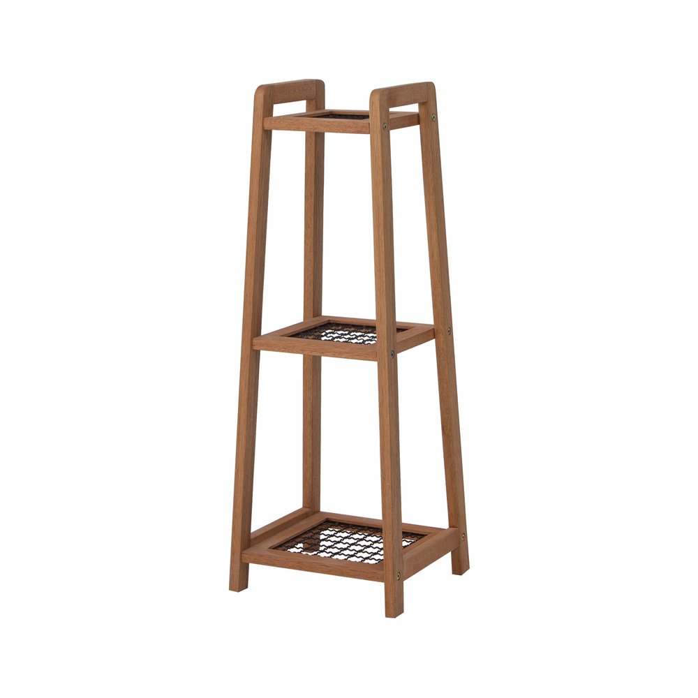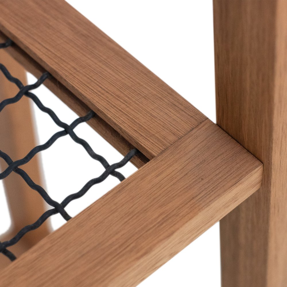 O design minimalista da Floreira Alta Garden se destaca pela combinação da madeira maciça de eucalipto, que confere estrutura robusta, e pelo painel metálico, que circunda o vaso com segurança e charme. A madeira recebe tratamento que preserva a tonalidade natural, enquanto a tela metálica pintada de preto cria contraste elegante. Esses materiais não apenas garantem durabilidade e suporte para até 20 kg, como também facilitam a manutenção, já que a superfície lisa pode ser limpa com pano úmido sem o uso de produtos químicos ou abrasivos.