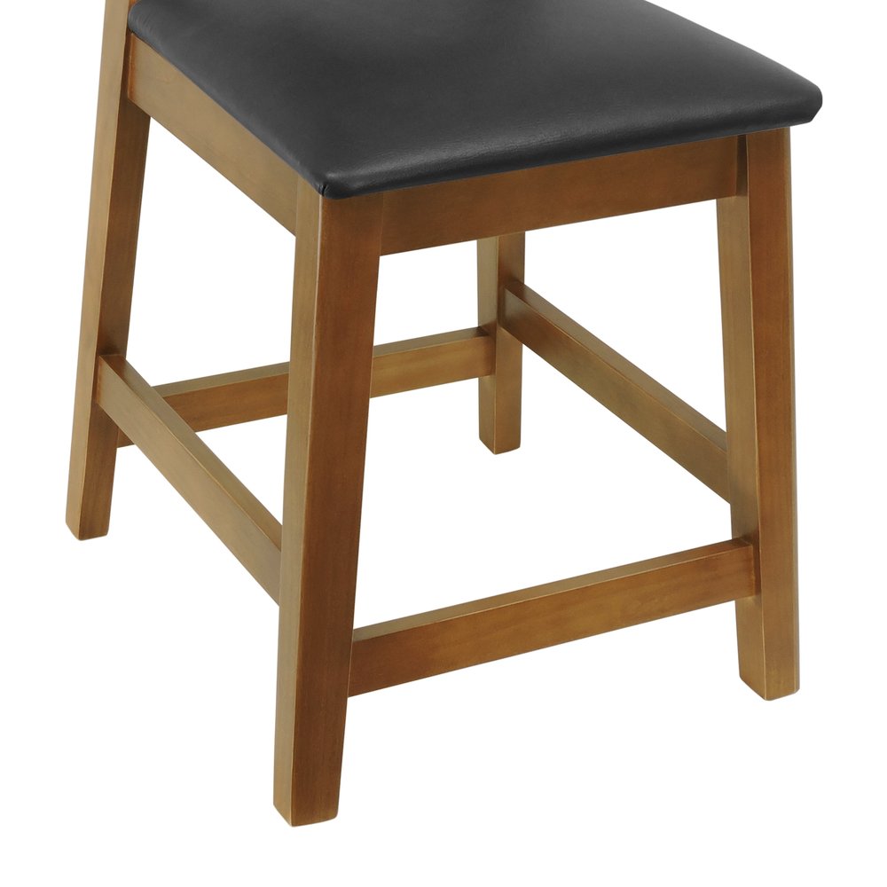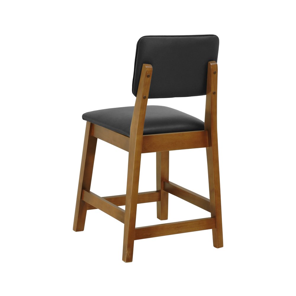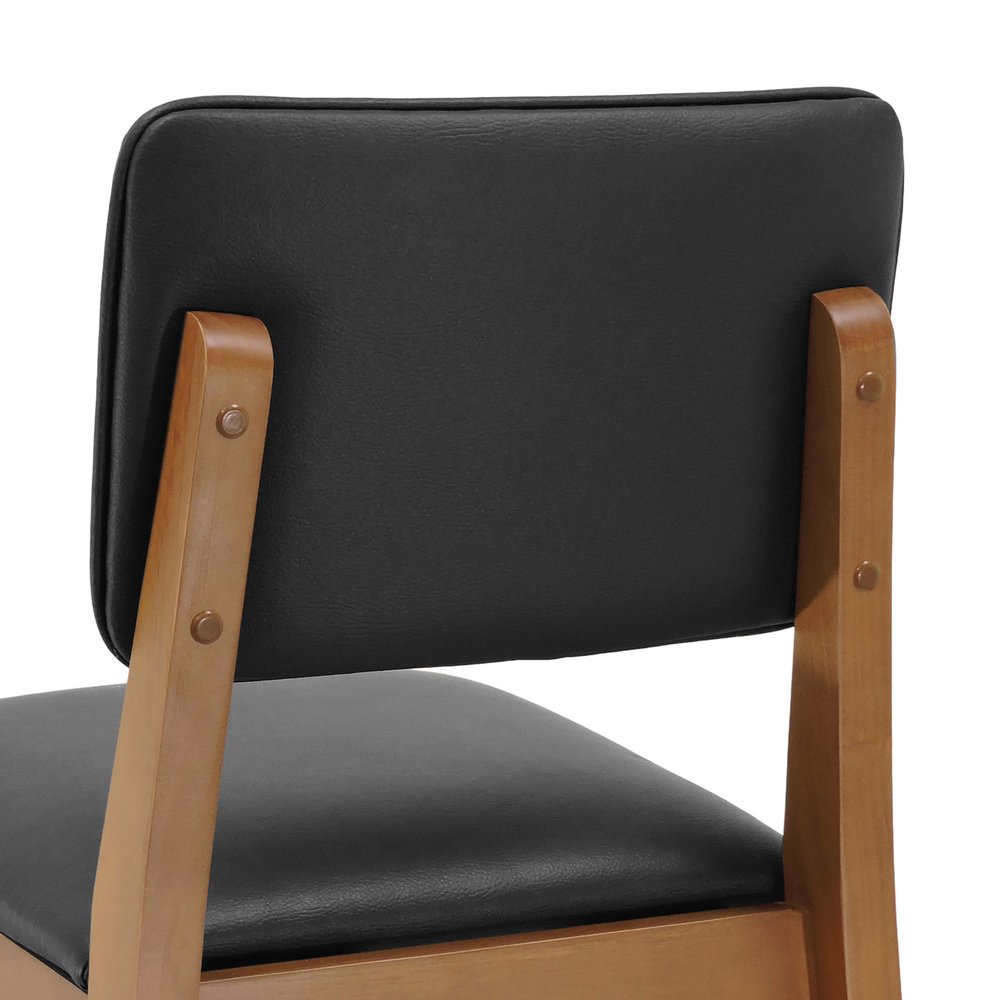 Sua estrutura é fabricada em madeira maciça com acabamento tingido na sofisticada cor amêndoa, garantindo resistência e durabilidade. O assento e encosto estofados estão disponíveis nas opções de revestimento: corano ou linho impermeável, ambos fáceis de limpar e ideais para ambientes residenciais ou comerciais.