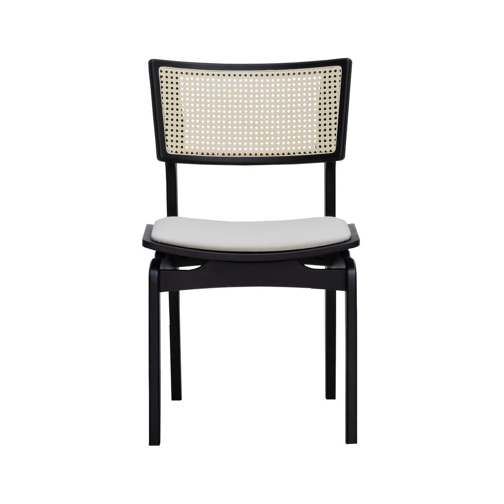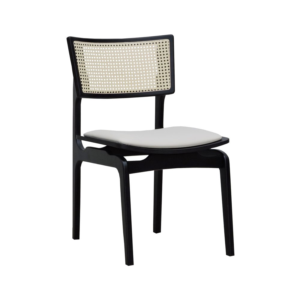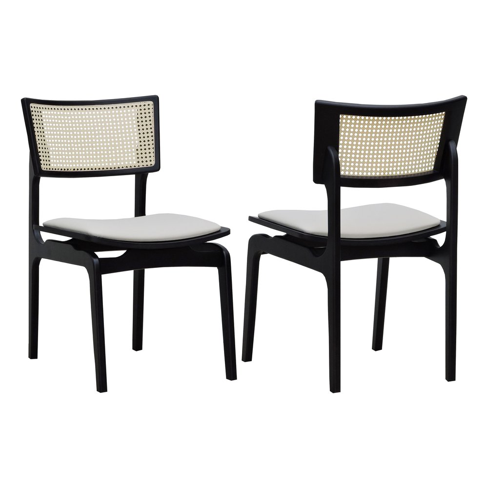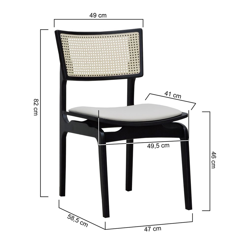 Kit 2 Cadeiras Apollo Madeira Maciça Encosto Telinha Assento Anatômico Estofado - Preto Estofado Corano Bege