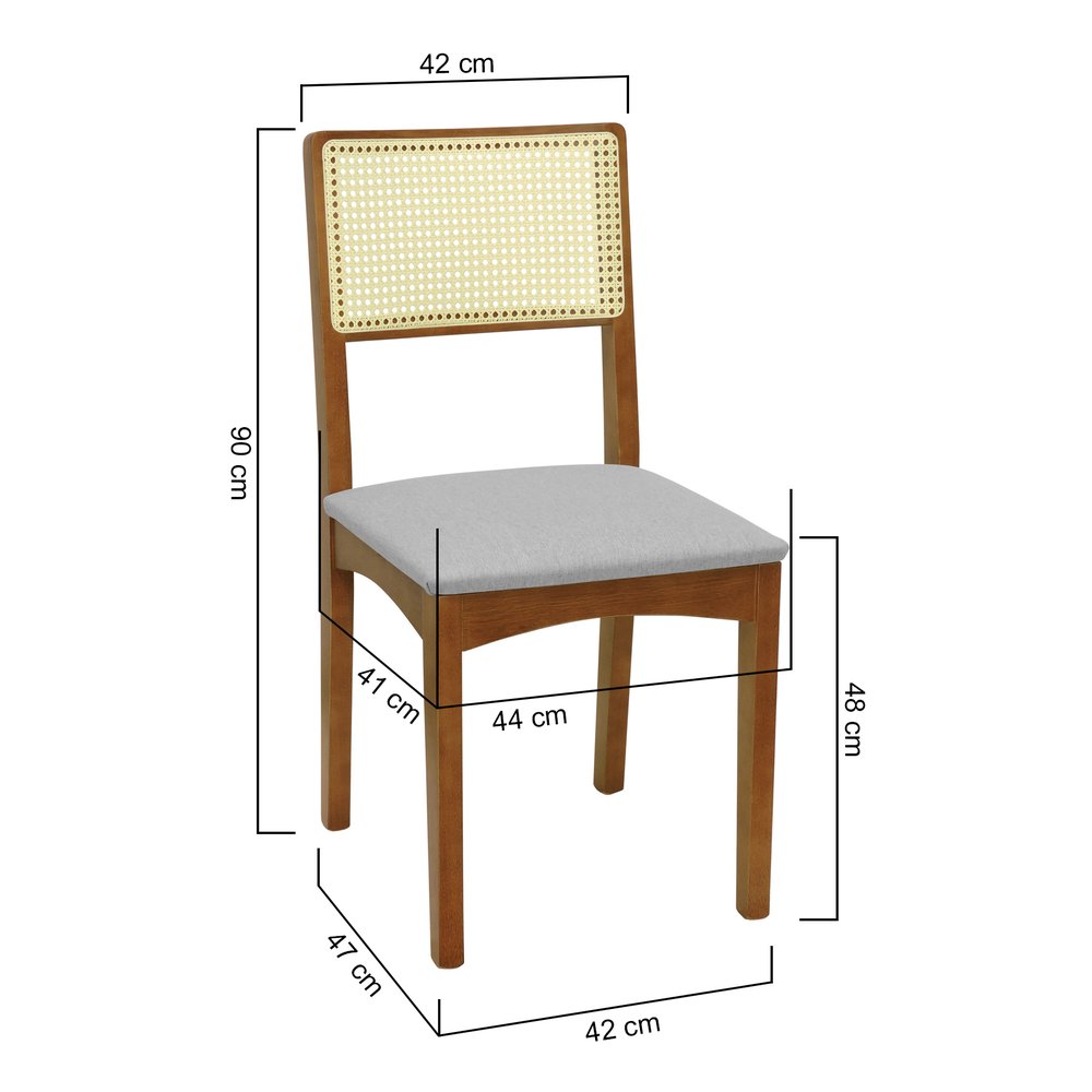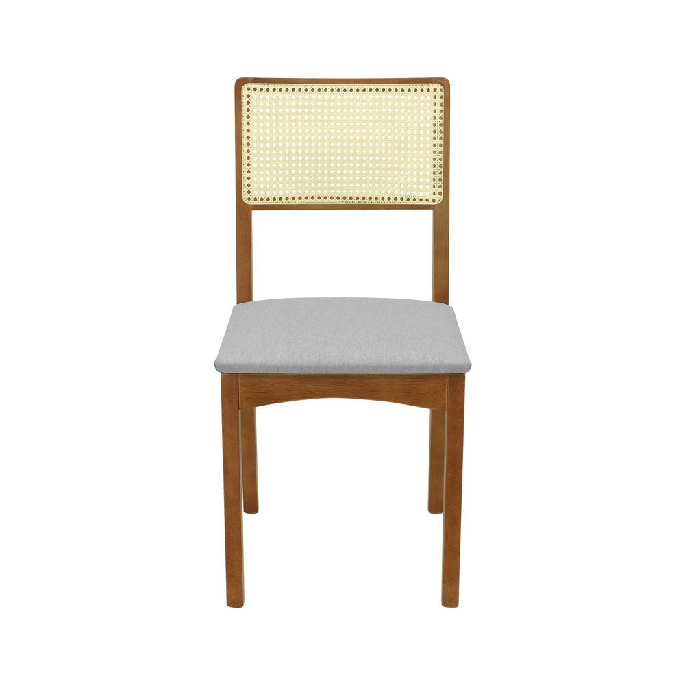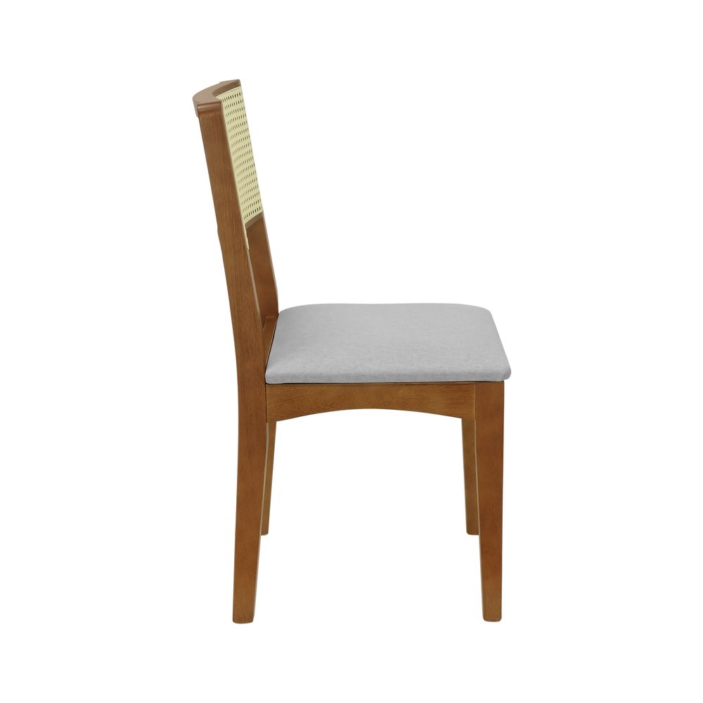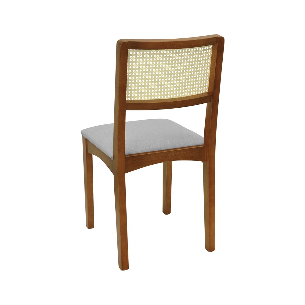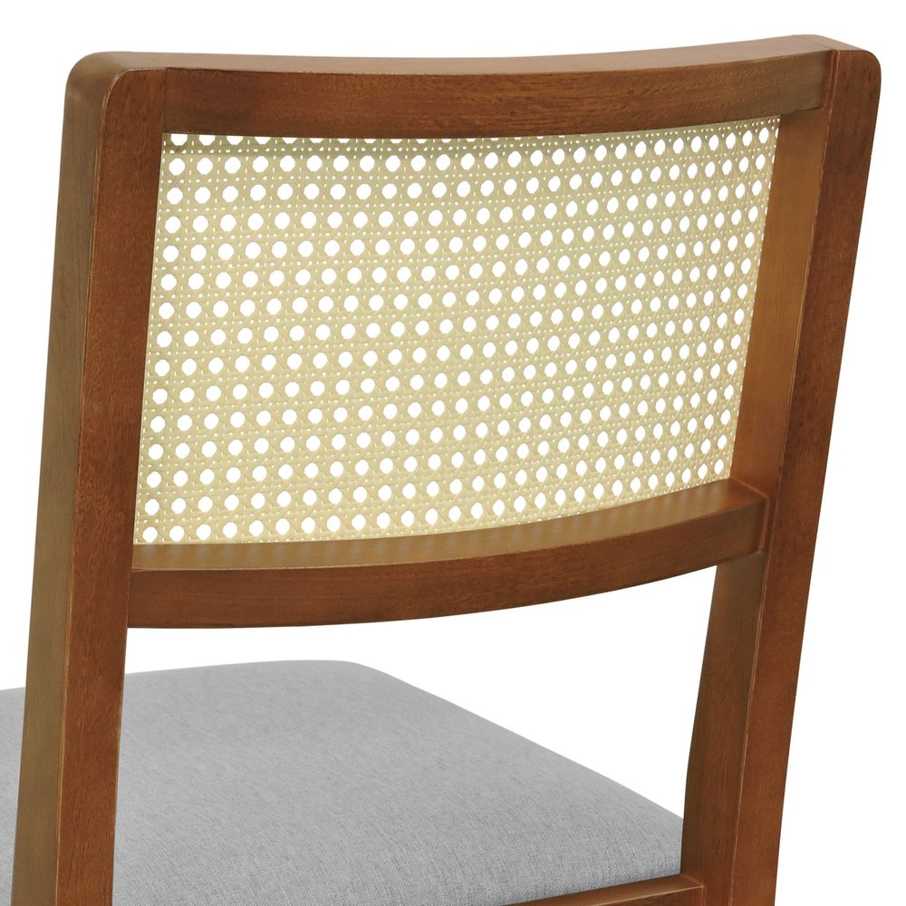 Kit 2 Cadeiras Pérola Madeira Maciça com Encosto em Telinha e Assento Estofado - Amêndoa