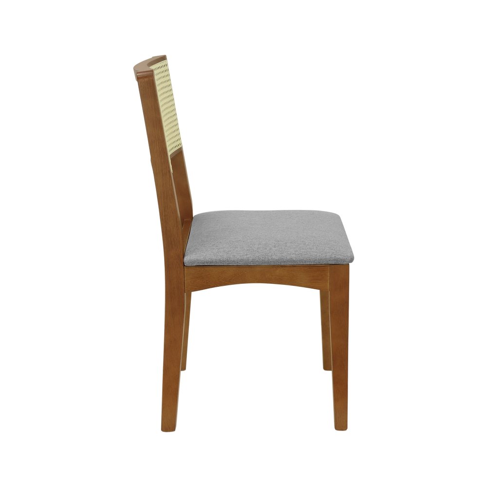 Kit 2 Cadeiras Pérola Madeira Maciça com Encosto em Telinha e Assento Estofado - Amêndoa