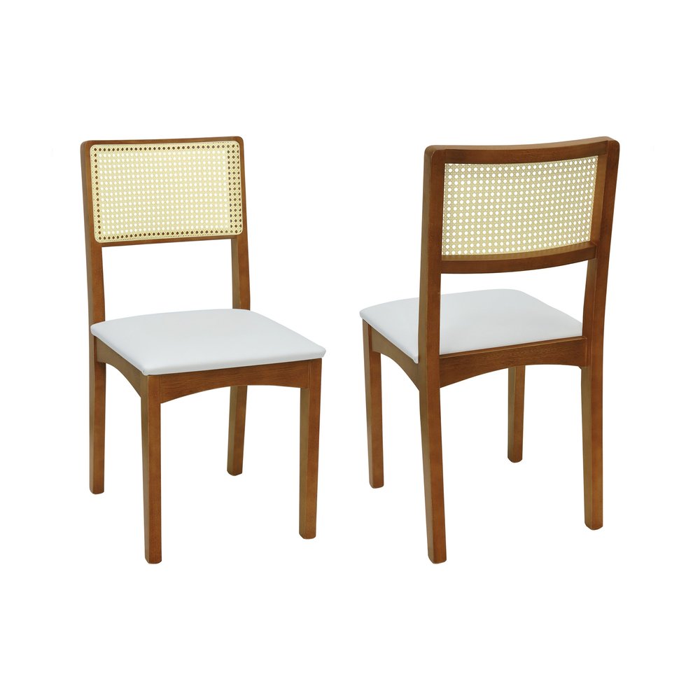 Kit 2 Cadeiras Pérola Madeira Maciça com Encosto em Telinha e Assento Estofado - Amêndoa