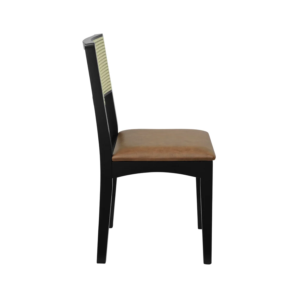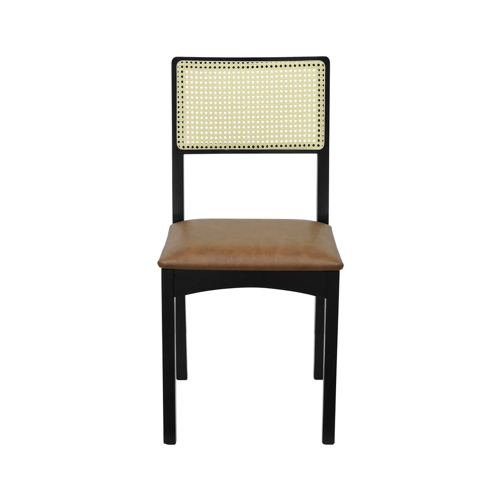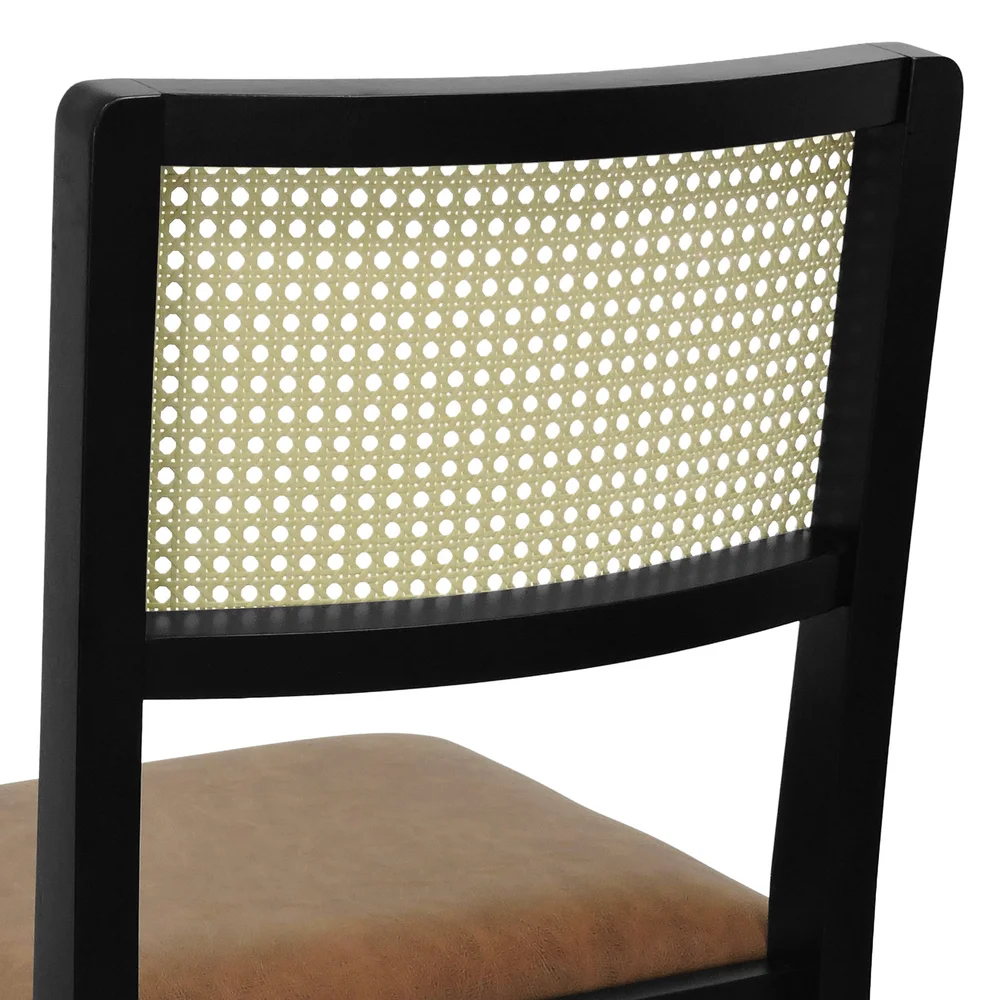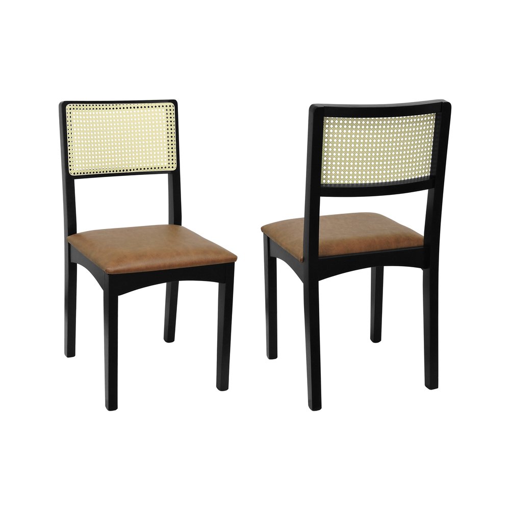 Kit 2 Cadeiras Pérola Madeira Maciça com Encosto em Telinha e Assento Estofado - Preto